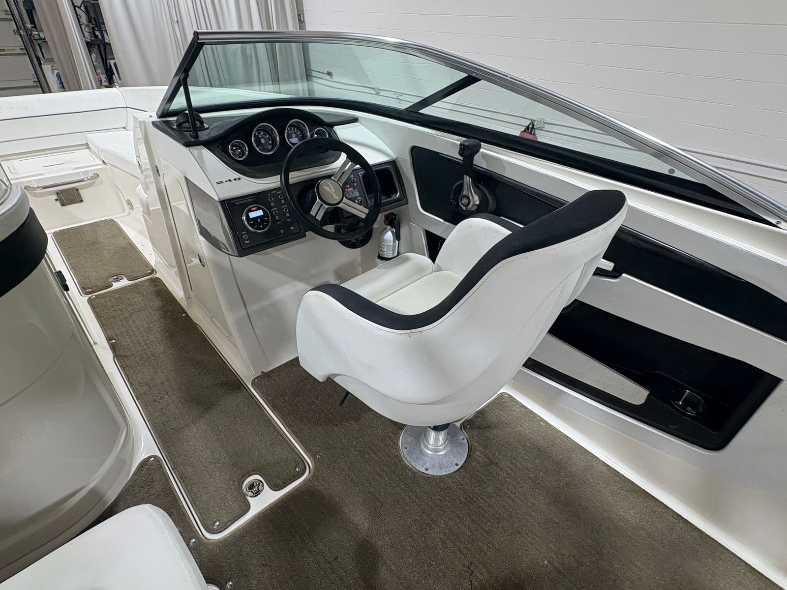 The 2014 Sea Ray Sundeck 240 stands out as a premium used bowrider, measuring just over 24 feet in length. Its sleek profile and contemporary design make it a head-turner at any marina or on any lake. With a single engine and only 199 hours of use, this boat has been well cared for and is poised to deliver many more seasons of enjoyment. The Sundeck 240’s spacious layout ensures there’s plenty of room for family and friends, making it an ideal choice for those who love to entertain or spend quality time on the water.