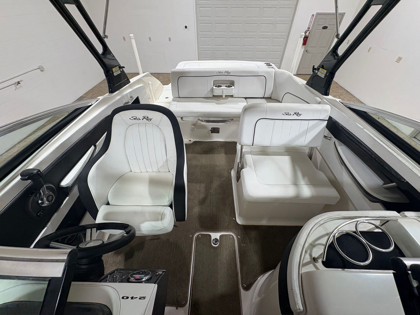Powered by a robust 260-horsepower engine, the Sea Ray Sundeck 240 offers an exhilarating ride that’s both smooth and responsive. The single engine configuration ensures efficient power delivery, making it easy to get up on plane quickly and maintain impressive cruising speeds. With only 199 engine hours, this bowrider boat for sale promises reliable performance and longevity, giving you peace of mind every time you head out. Whether you’re towing water toys, exploring new coves, or simply enjoying a leisurely cruise, the Sundeck 240’s performance capabilities are sure to impress.