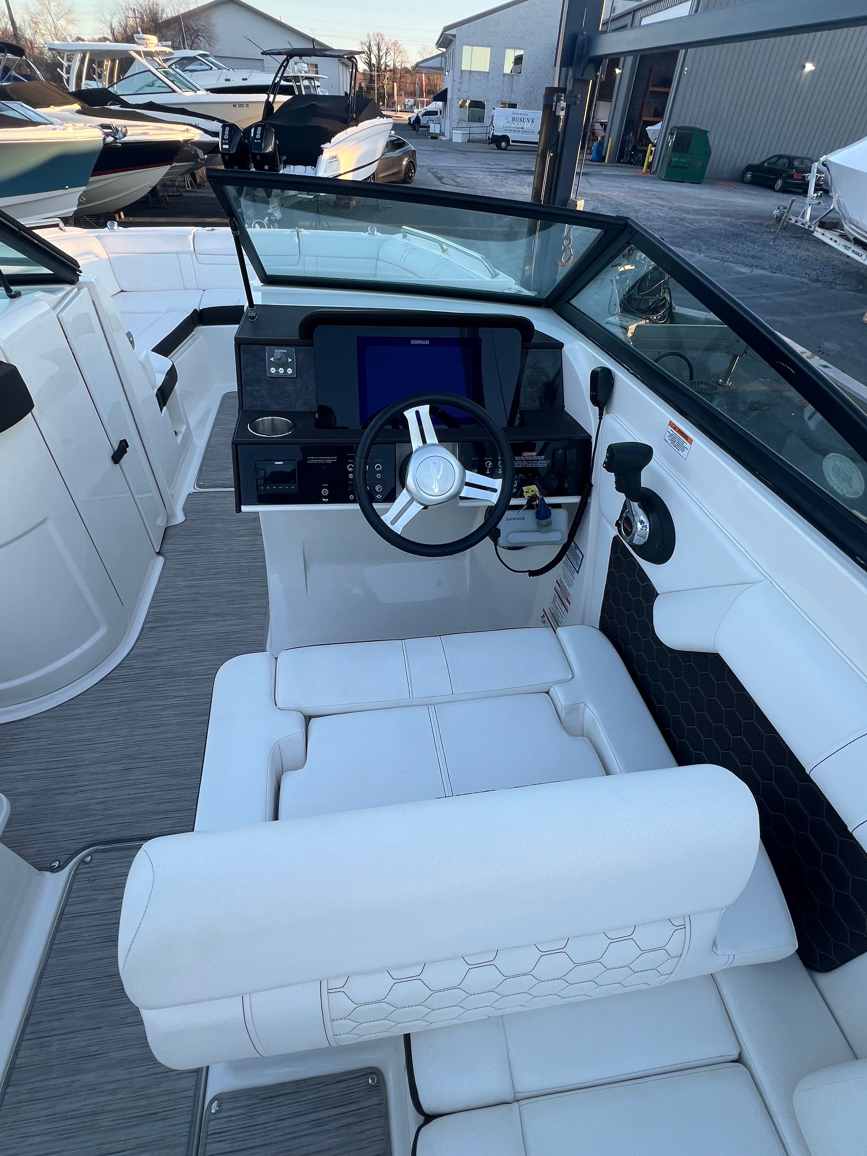 The Sea Ray 270 SDX Bowrider is designed with both comfort and convenience in mind. Its spacious layout includes plush seating for multiple passengers, allowing everyone to stretch out and enjoy the ride. The open bow area is perfect for sunbathing, socializing, or simply taking in the views. The cockpit is intelligently arranged for easy movement and access to all controls, ensuring the captain can navigate with confidence. Storage compartments are strategically placed throughout the boat, providing plenty of room for personal items, water sports gear, and refreshments.As a Bowrider, the 270 SDX excels at creating a welcoming environment for relaxation and fun. The boat’s design encourages social interaction, with seating areas that foster conversation and togetherness. The high-quality materials used throughout the interior and exterior guarantee durability and a premium feel, while the stylish finishes add a touch of elegance to every outing.