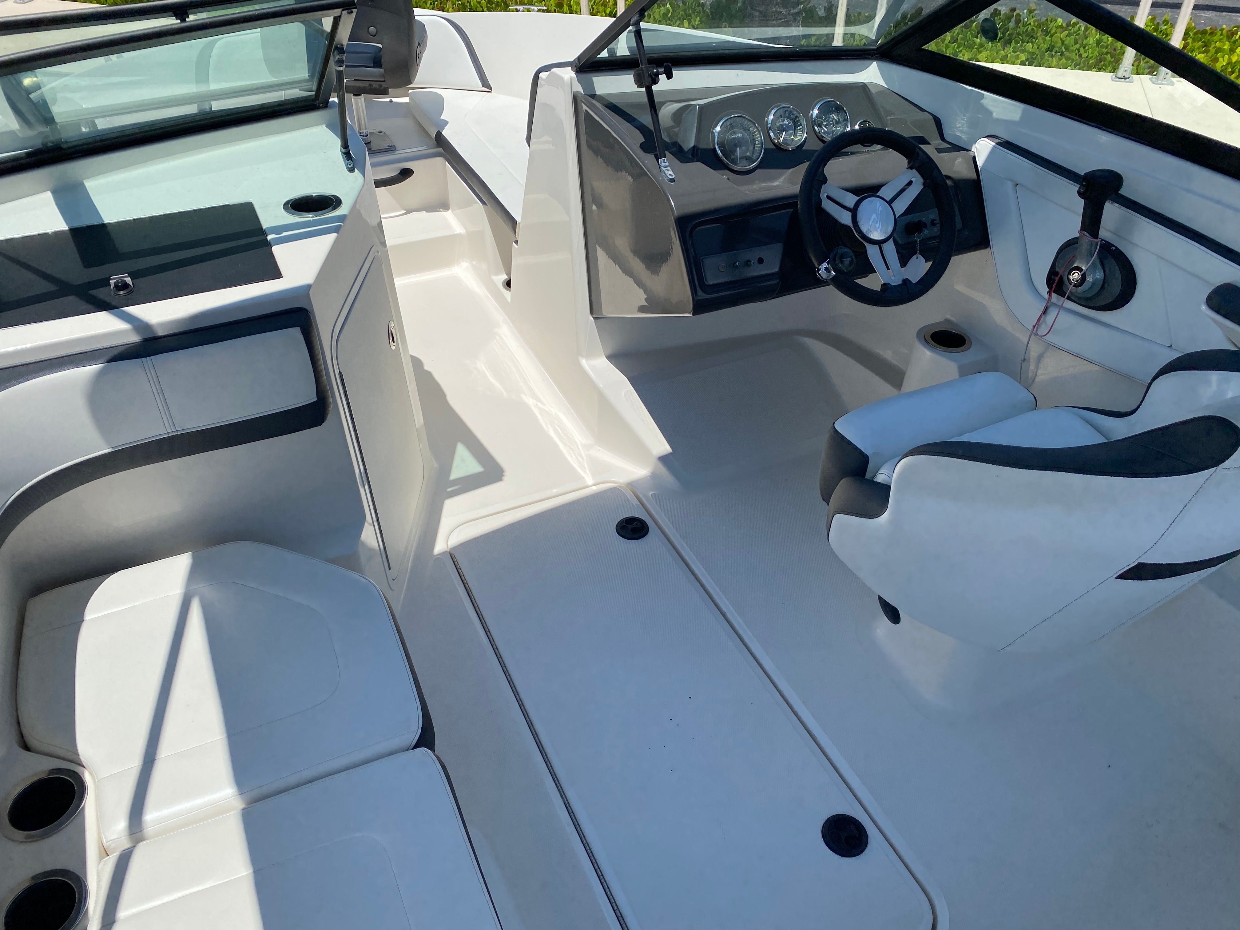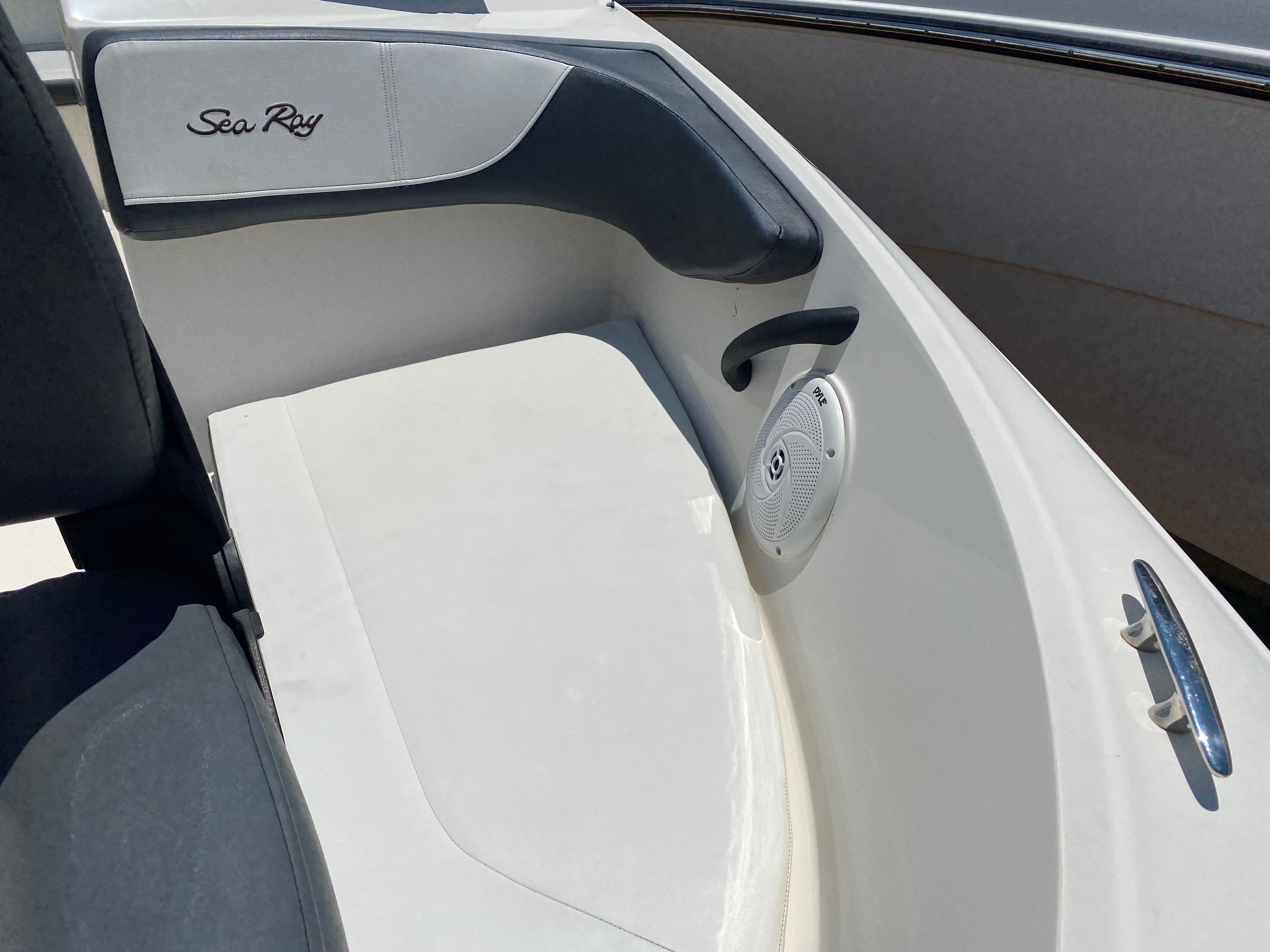 The Sea Ray SVX 19 comes equipped with features designed to enhance your boating experience. As a Bowrider, it offers an open and inviting layout, perfect for socializing and soaking up the sun. The spacious bow seating area provides plenty of room for guests to relax, while the ergonomic helm ensures comfortable control for the captain. The 19-foot length allows for ample deck space without sacrificing agility, making it easy to navigate tight marinas and busy waterways.This used Sea Ray boat for sale is built with quality materials and craftsmanship, ensuring durability and longevity. The thoughtful design includes convenient storage compartments for your gear, life jackets, and water toys, helping you keep the deck clutter-free and organized. The SVX 19’s sleek exterior and modern finishes make it a standout on the water, while its practical layout ensures everyone on board enjoys maximum comfort.