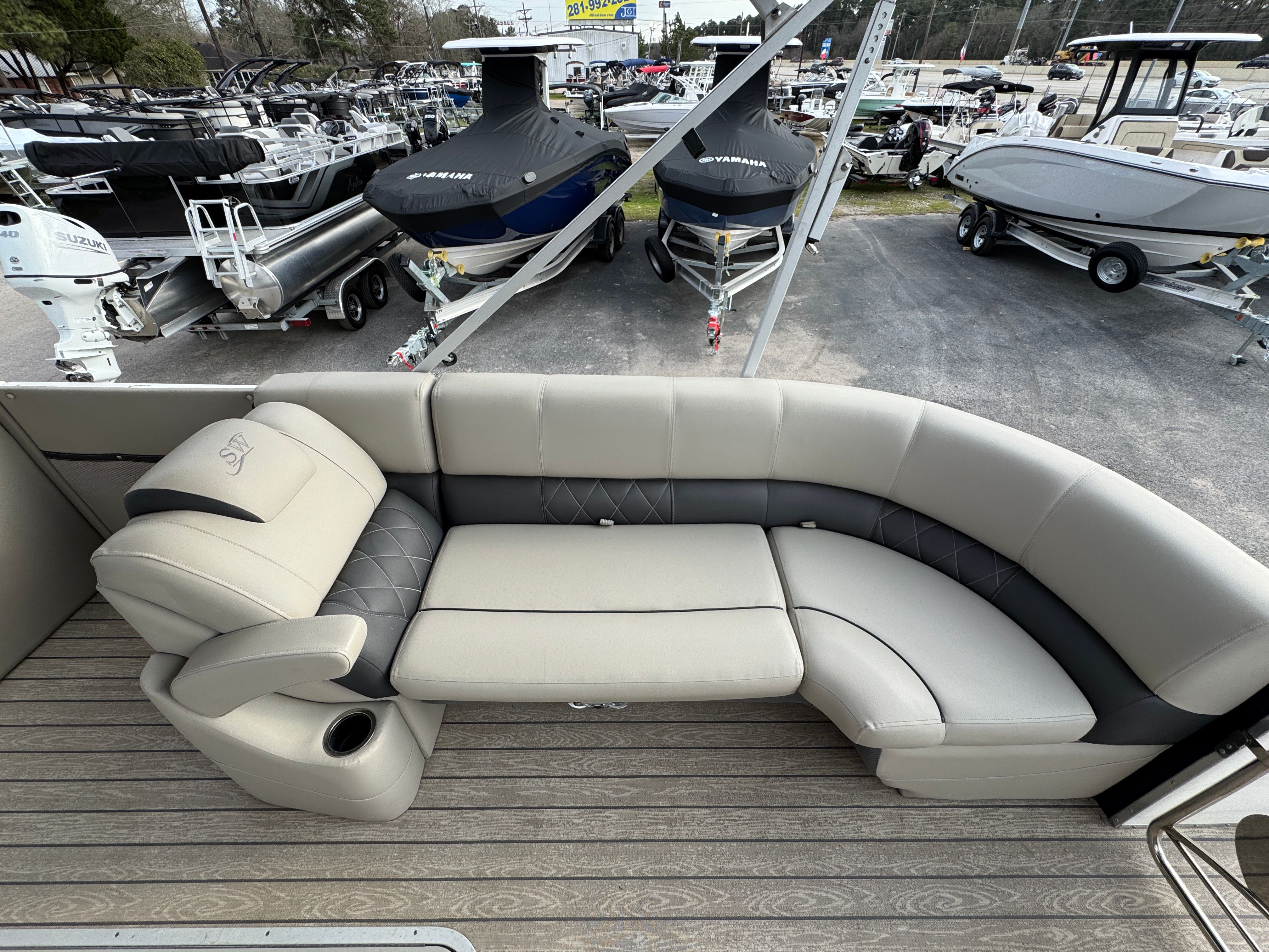 Owning the Silverwave 2410 SW5 means embracing a lifestyle of fun, relaxation, and adventure. The spacious deck layout encourages socializing, making it perfect for hosting gatherings, family outings, or sunset cruises with friends. The plush seating and open floor plan create a welcoming environment where everyone can unwind and enjoy the scenery. The advanced sound system and Bluetooth connectivity set the stage for lively parties or peaceful moments with your favorite playlists.The double Bimini system ensures you can tailor the amount of shade to your needs, keeping everyone comfortable throughout the day. The ski tow bar adds an extra layer of excitement, allowing you to introduce water skiing or tubing into your boating repertoire. With the Garmin electronics package, you can confidently explore new waters, find the best fishing spots, and navigate with ease.
