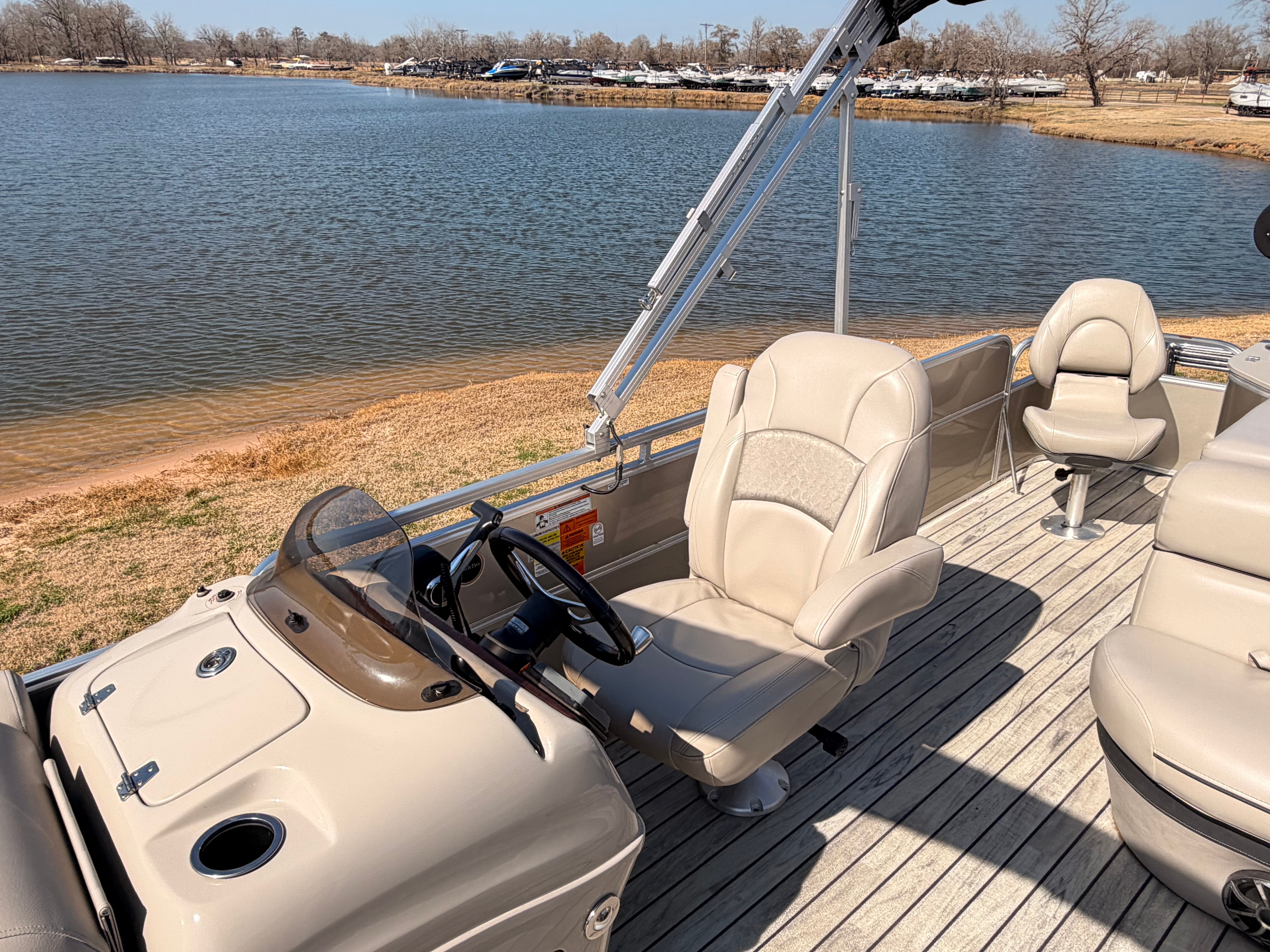 This South Bay boat for sale is as practical as it is enjoyable. The generous storage options allow you to bring along all the gear you need for a day of fishing, swimming, or relaxing. The pontoon’s design makes docking and launching straightforward, so you can spend less time preparing and more time enjoying your day. The fuel-efficient engine helps keep operating costs down, making this pontoon boat an economical choice for families and boating enthusiasts alike.The 23-foot length strikes the perfect balance between spaciousness and maneuverability, making it easy to handle in a variety of settings, from busy marinas to quiet coves. The sturdy construction and reliable engine ensure that you can count on this boat for years to come, whether you are exploring new waterways or returning to your favorite spots.