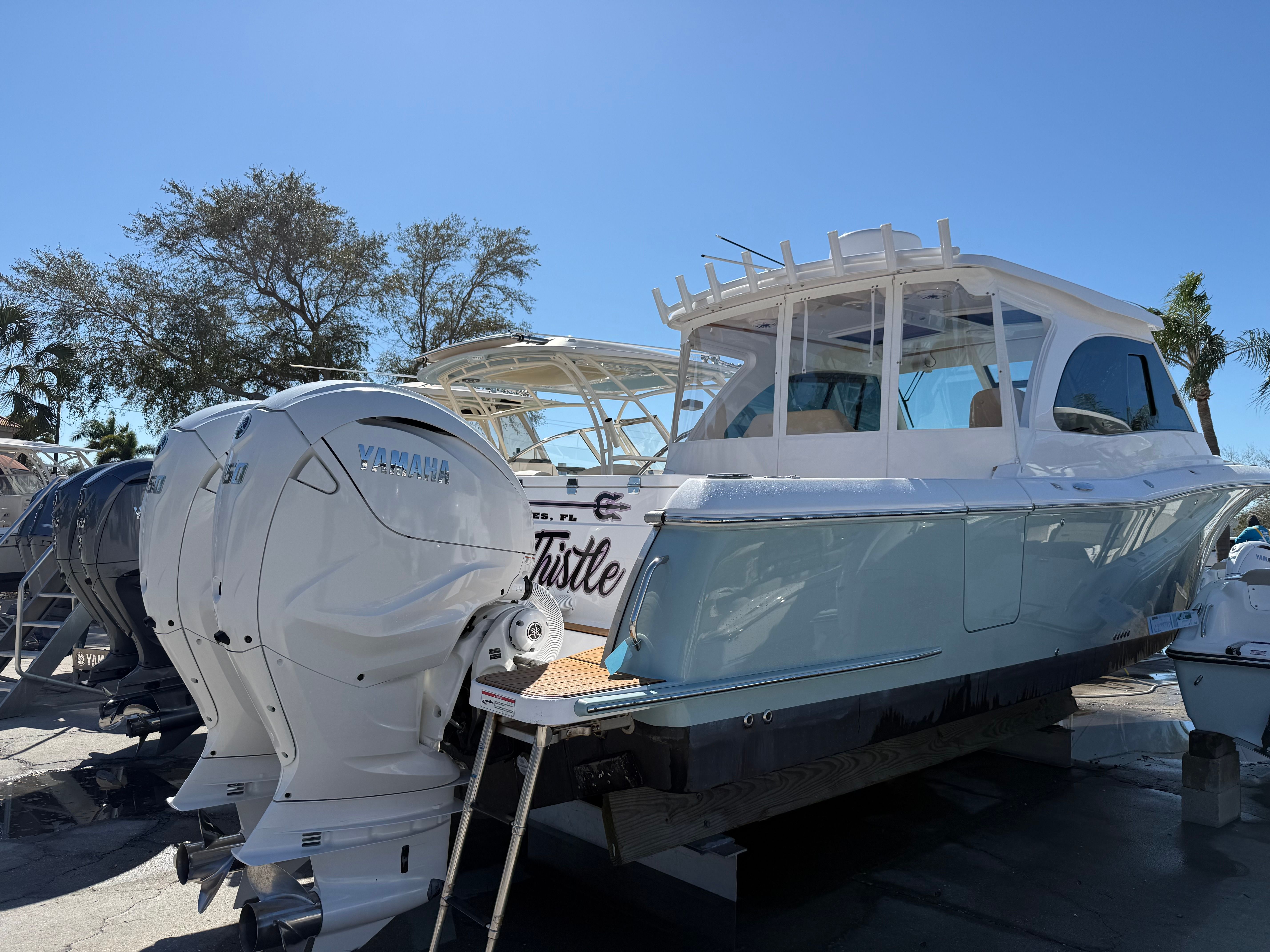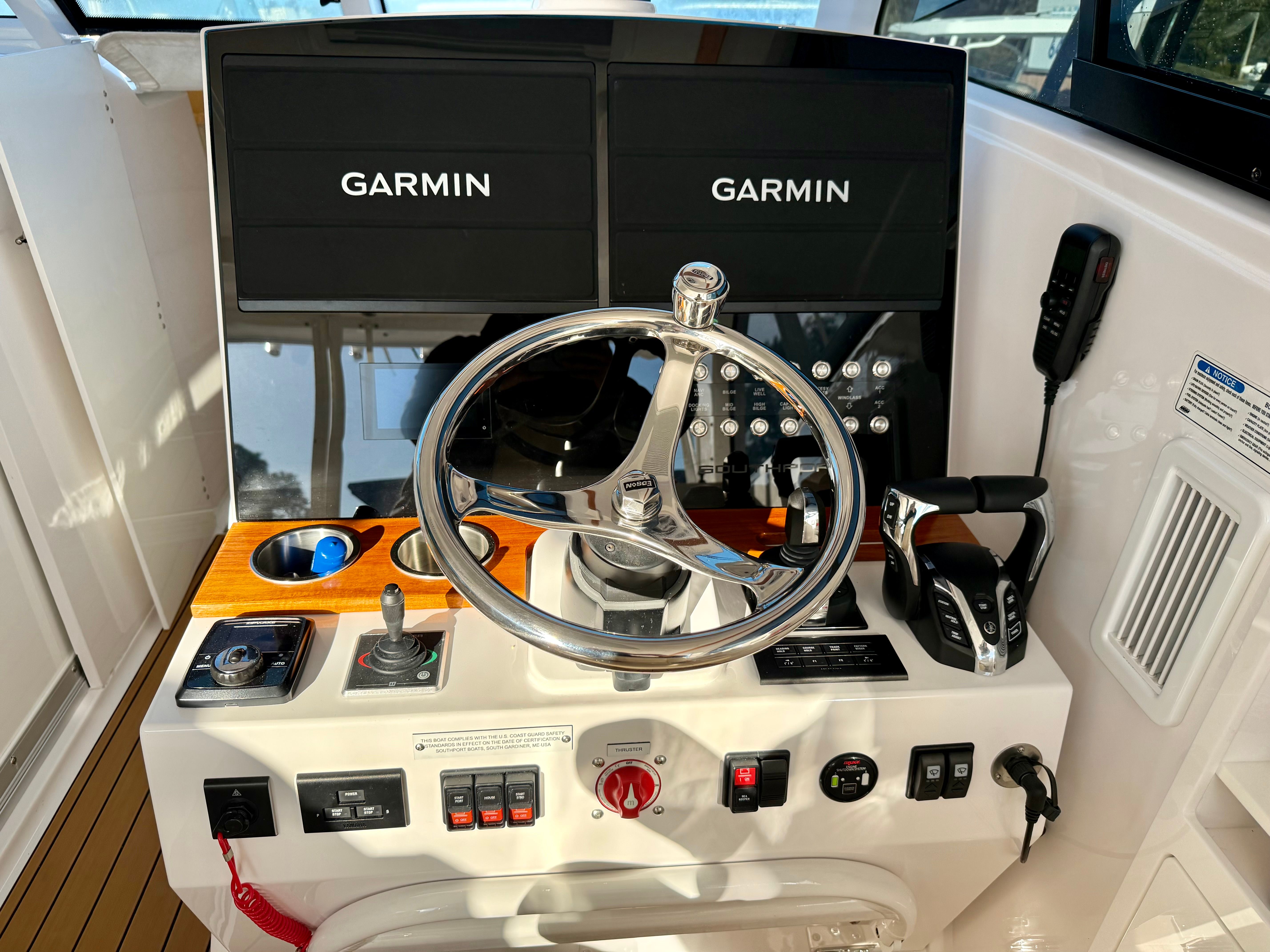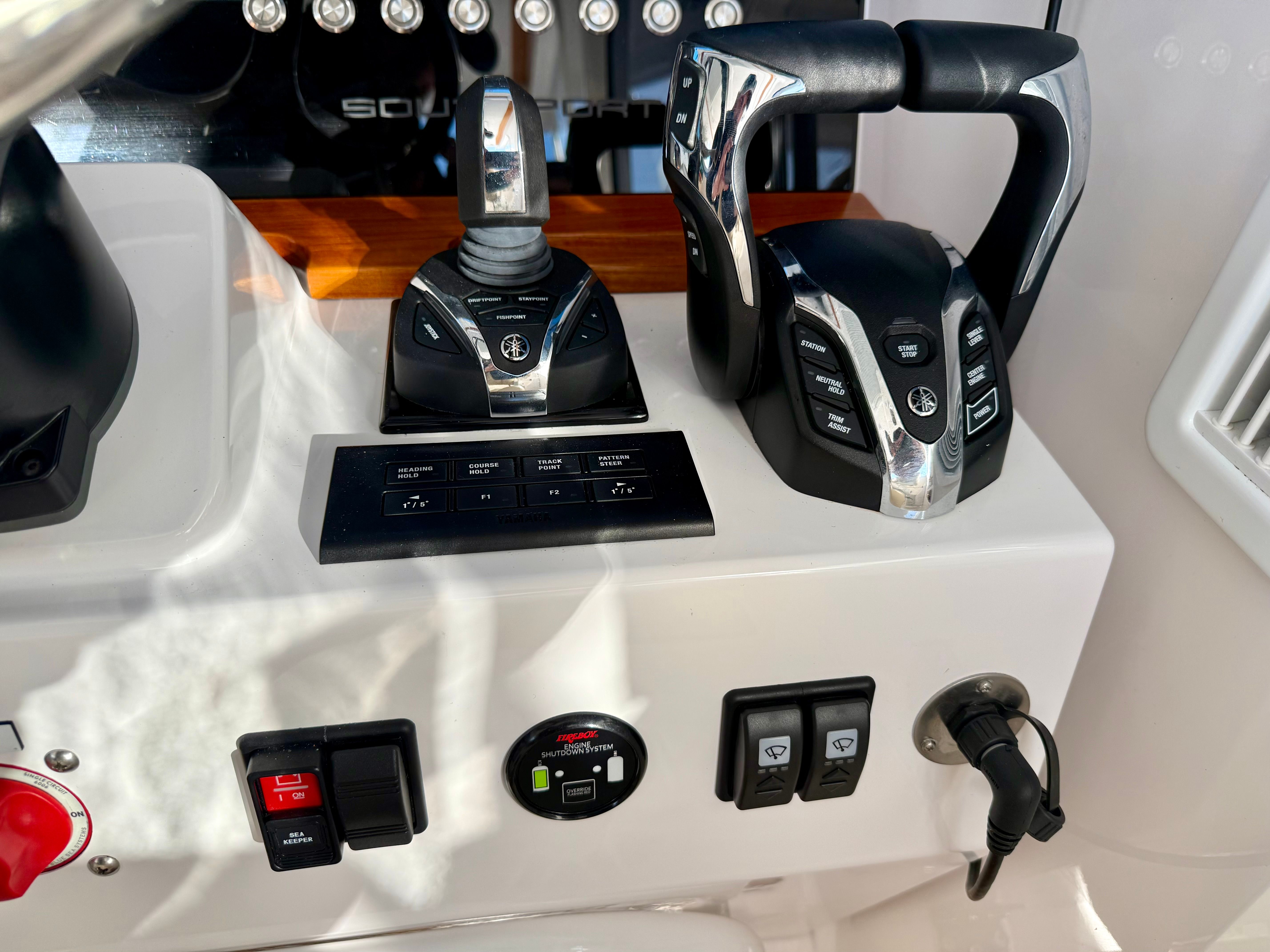 Consigned from a local customer, this exceptionally clean 2024 Southport 33DC is turnkey and ready to hit the water immediately. Designed with the perfect balance of offshore capability and family comfort, the 33DC delivers legendary Southport ride quality, fit and finish, and thoughtful layout throughout. Powered by twin Yamaha 450HP outboards with 201 well-maintained hours, this boat offers impressive performance, smooth acceleration, and the reliability serious boaters demand. The Yamaha Helm Master system provides effortless joystick control for precision docking and maneuvering, while the integrated bow thruster adds even more confidence around tight marinas and crowded fuel docks.