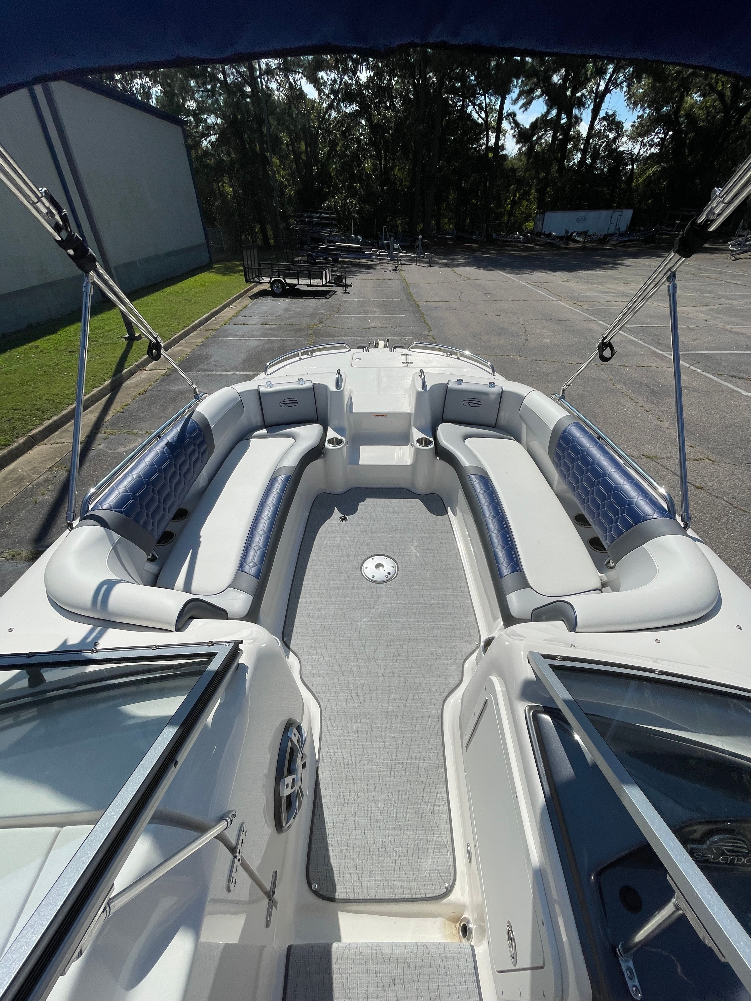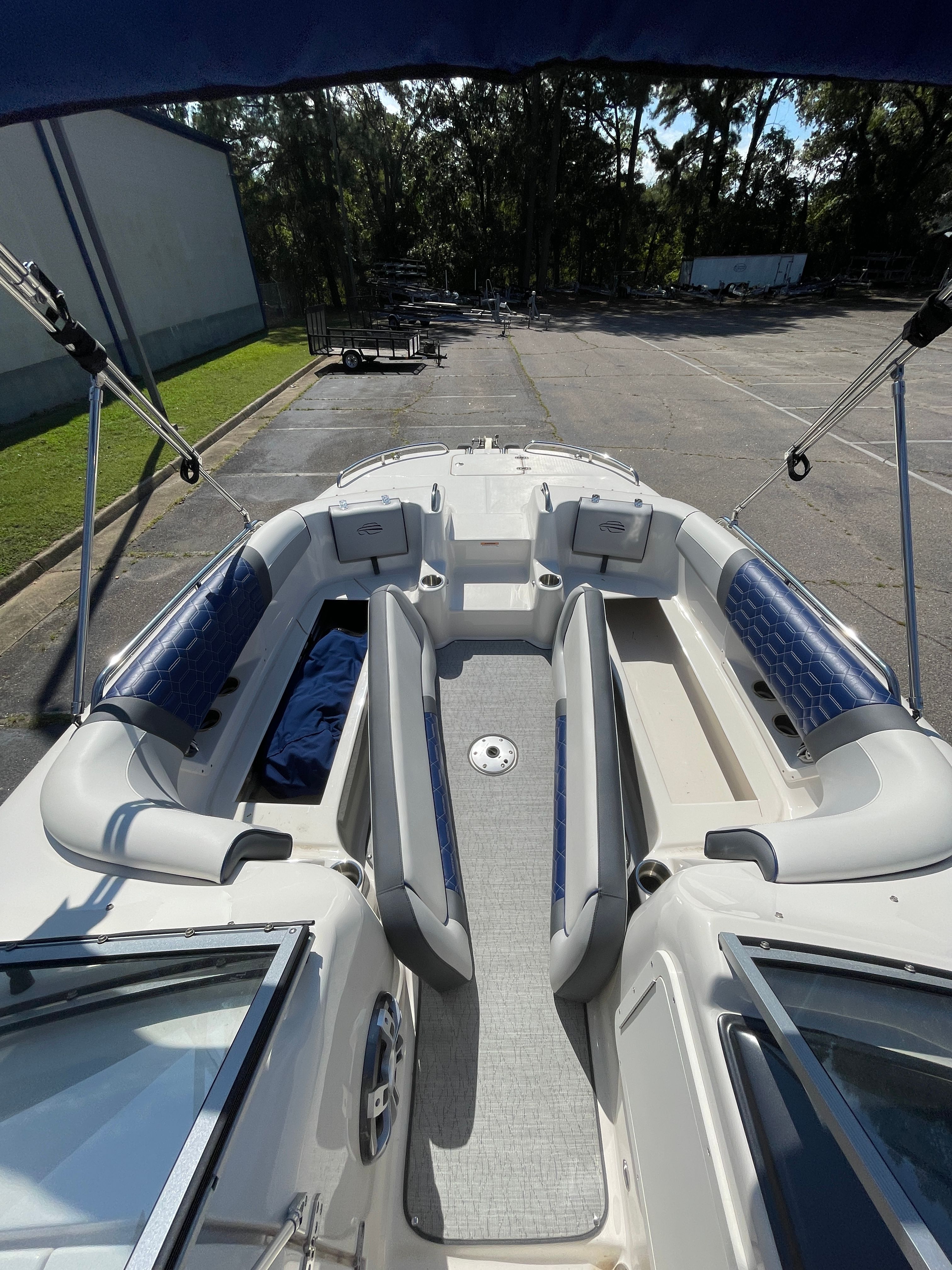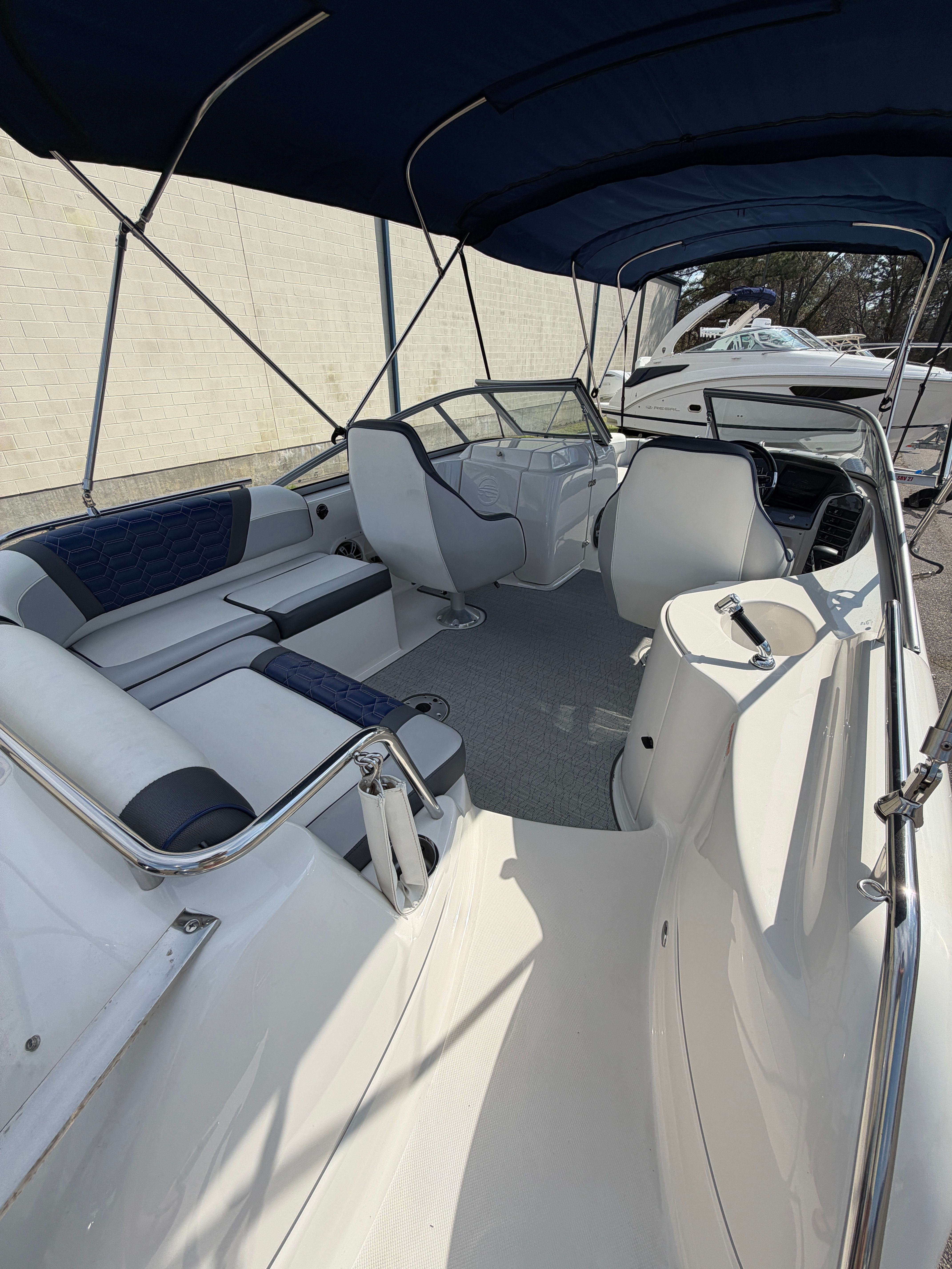 Powering the Splendor 259 Sunstar is a single engine boasting an impressive 300 horsepower. With only 30 engine hours, this deckboat offers reliable and efficient performance, ensuring you can cruise, explore, and play with confidence. The robust engine delivers smooth acceleration and responsive handling, making it easy to navigate both open waters and tight marina spaces. Whether you’re towing water toys, heading out for a day of fishing, or simply enjoying a leisurely cruise, the Splendor 259 Sunstar’s performance capabilities will exceed your expectations.