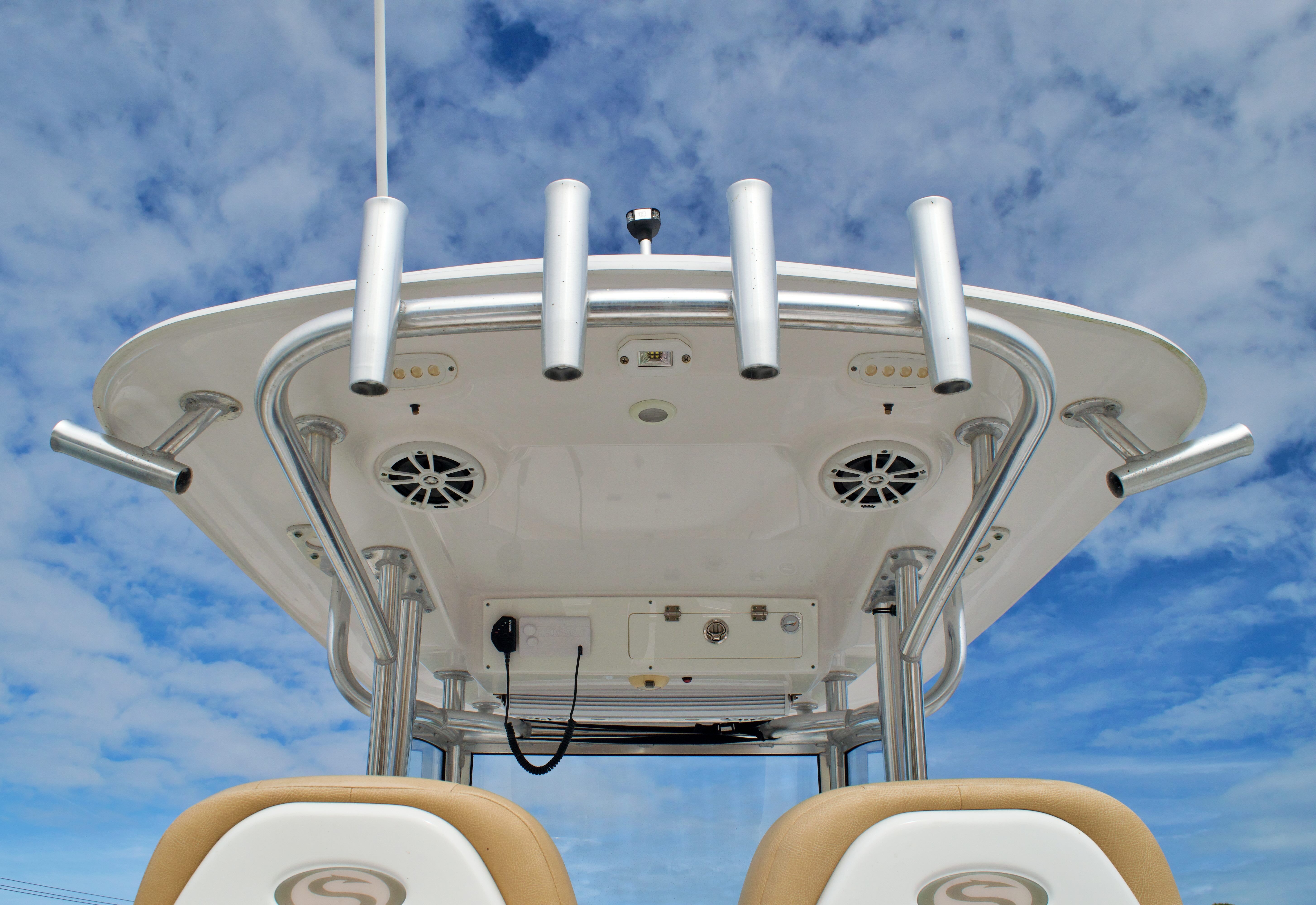 Powering the Sportsman Open 282 are twin engines, delivering a combined 400 horsepower for exhilarating speed and responsive handling. With only 285 engine hours, these motors have plenty of life left, ensuring reliable performance for countless adventures ahead. The dual-engine setup not only provides impressive acceleration and top-end speed but also enhances maneuverability and control, making docking and navigating tight spaces a breeze. Whether you’re cruising along the coastline or heading offshore for a day of fishing, the Open 282’s power and agility set it apart from other center console boats for sale.