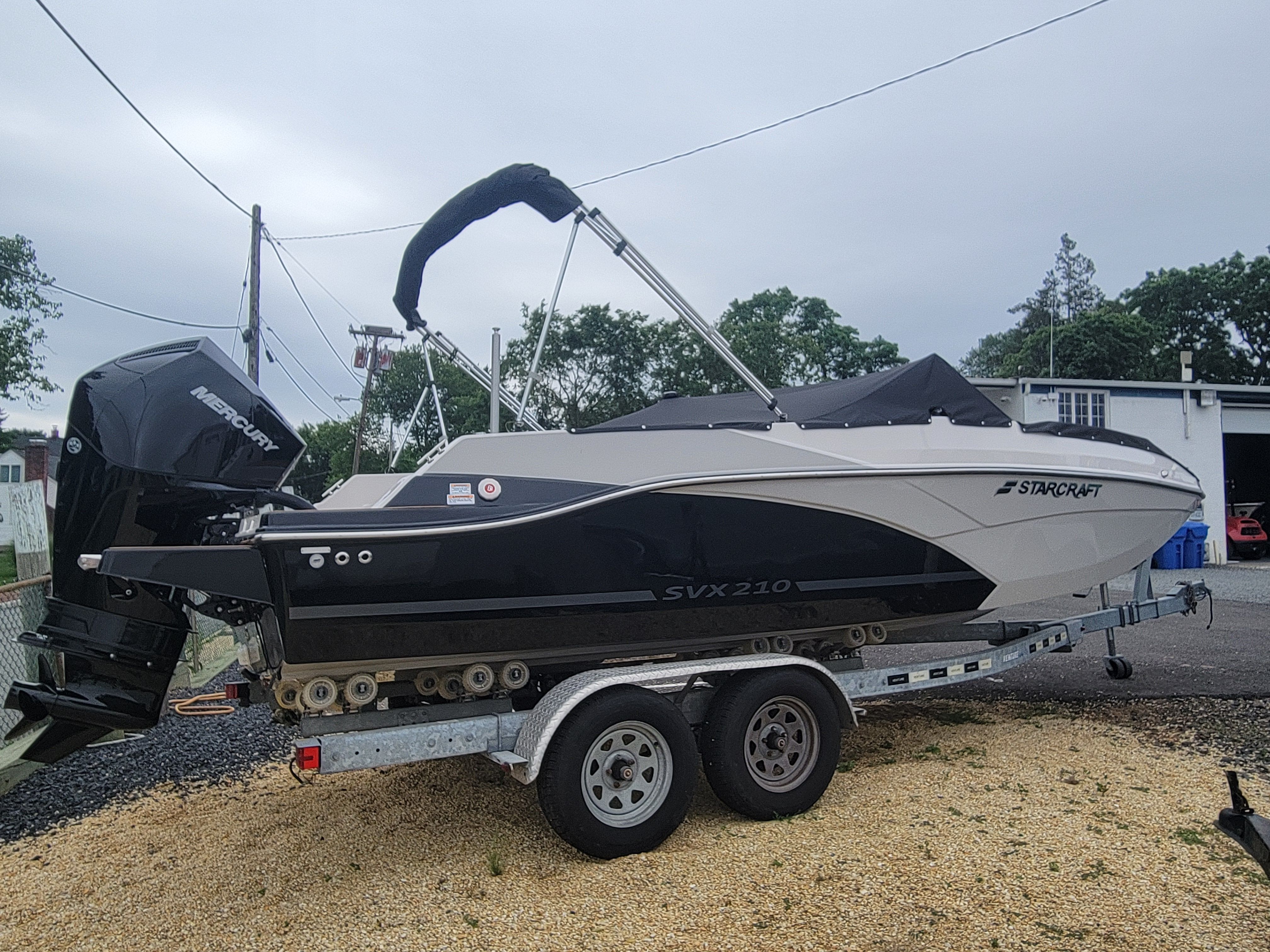 In summary, the 2024 Starcraft 210 SVX deckboat is an outstanding option for anyone seeking a deckboat boat for sale that offers a perfect mix of performance, comfort, and versatility. With its powerful 200-horsepower engine, spacious 20.75-foot layout, and low engine hours, this used Starcraft boat for sale is ready to deliver unforgettable experiences on the water. Whether you are looking to entertain, explore, or simply relax, the 210 SVX is designed to meet your needs and exceed your expectations. Don’t miss the opportunity to make this exceptional deckboat your own—contact the dealer today for more information and take the first step toward your next adventure.