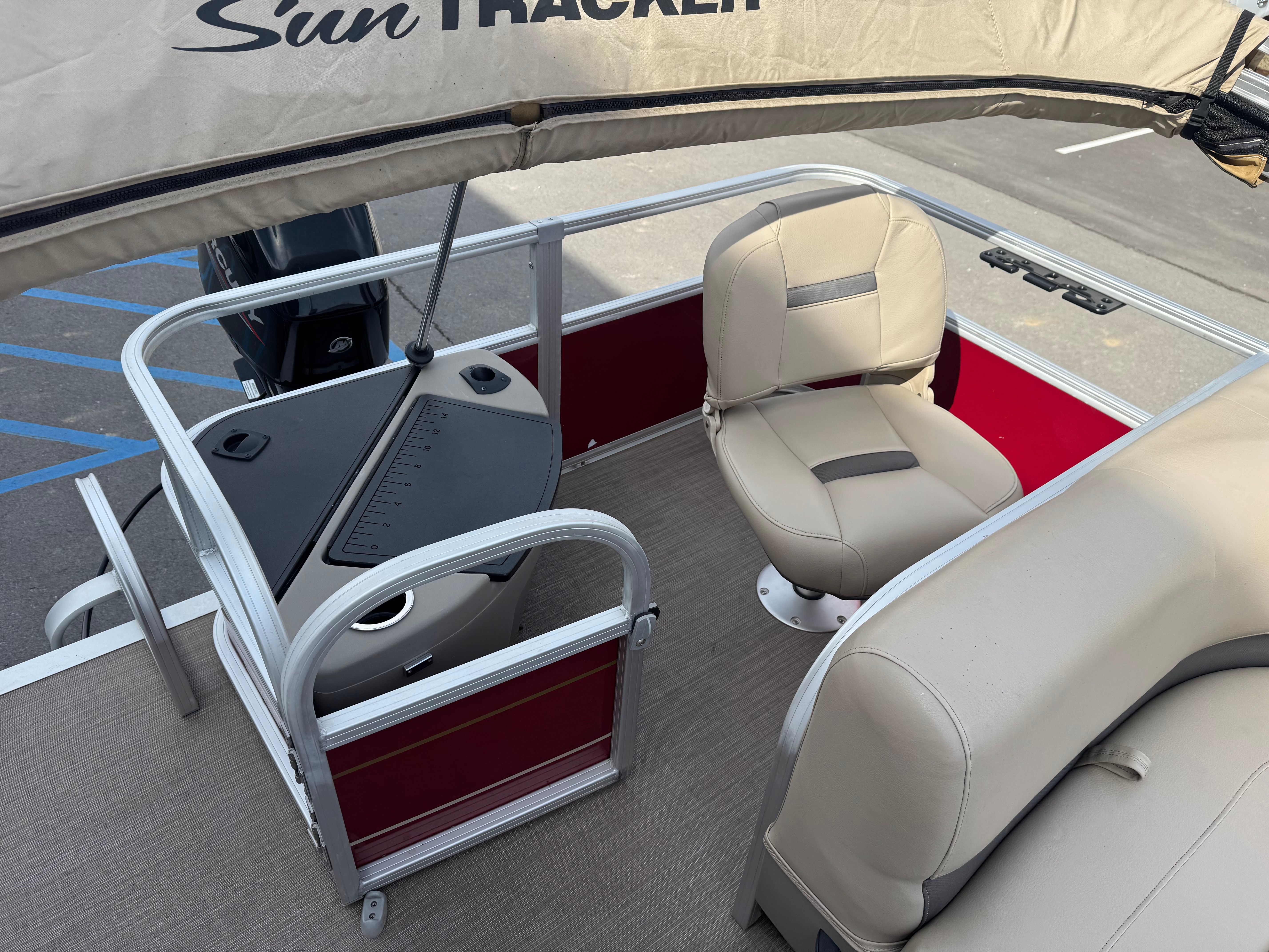 At the heart of this Sun Tracker boat for sale is a single, robust engine delivering 60 horsepower. This setup ensures smooth and efficient cruising, making it ideal for leisurely rides across lakes, rivers, and calm coastal waters. The 60 HP engine provides ample power for towing small inflatables, reaching your favorite fishing spots quickly, or simply enjoying a spirited ride with loved ones. The engine’s performance is matched by its reliability, offering peace of mind for both new and seasoned boaters. With this pontoon boat, you can expect a responsive throttle, steady handling, and an overall enjoyable ride every time you set out on the water.