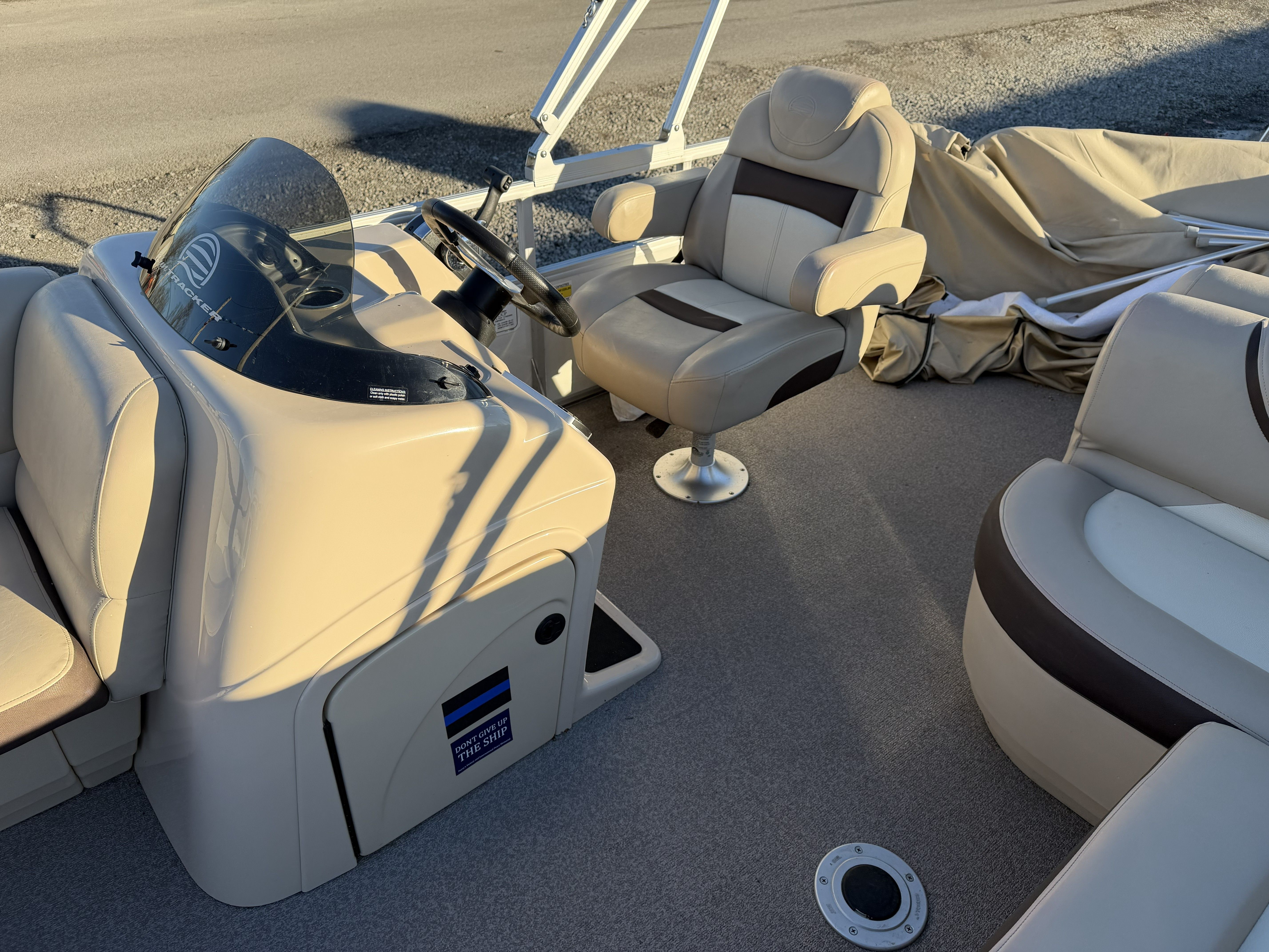 This Sun Tracker boat for sale is not just about leisure—it’s also incredibly practical. The generous storage options allow you to keep your gear organized and out of the way, while the easy-to-maneuver design makes docking and launching a breeze. The efficient 115 HP engine helps you make the most of your time on the water without worrying about excessive fuel costs. Whether you’re heading out for a quick afternoon cruise or planning a full day of exploration, this pontoon boat adapts to your needs with ease.The sturdy construction and reliable performance mean you can focus on enjoying your time on the water, knowing that your boat is up to the task. The Party Barge 22 DLX is also easy to maintain, making it a smart choice for both new and experienced boaters.