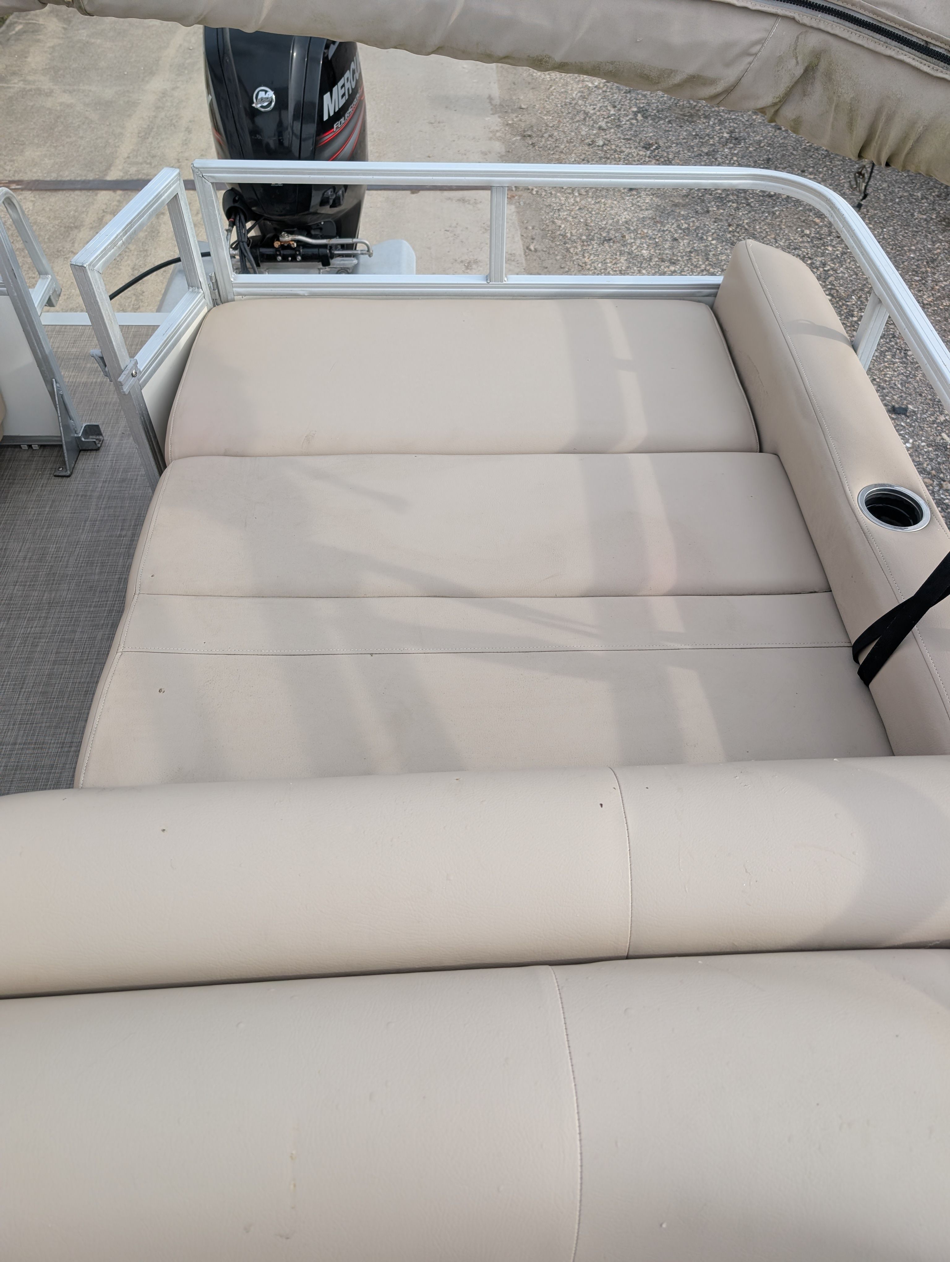 Powered by a robust 115-horsepower engine, the Sun Tracker Party Barge 22 DLX delivers a smooth and responsive ride. The engine’s power ensures that you can cruise across lakes and rivers with ease, whether you are towing water toys, heading out for a day of fishing, or simply enjoying a leisurely cruise. The 115 HP engine strikes the perfect balance between fuel efficiency and performance, making this pontoon boat for sale an excellent option for those who want both power and economy in their boating experience.