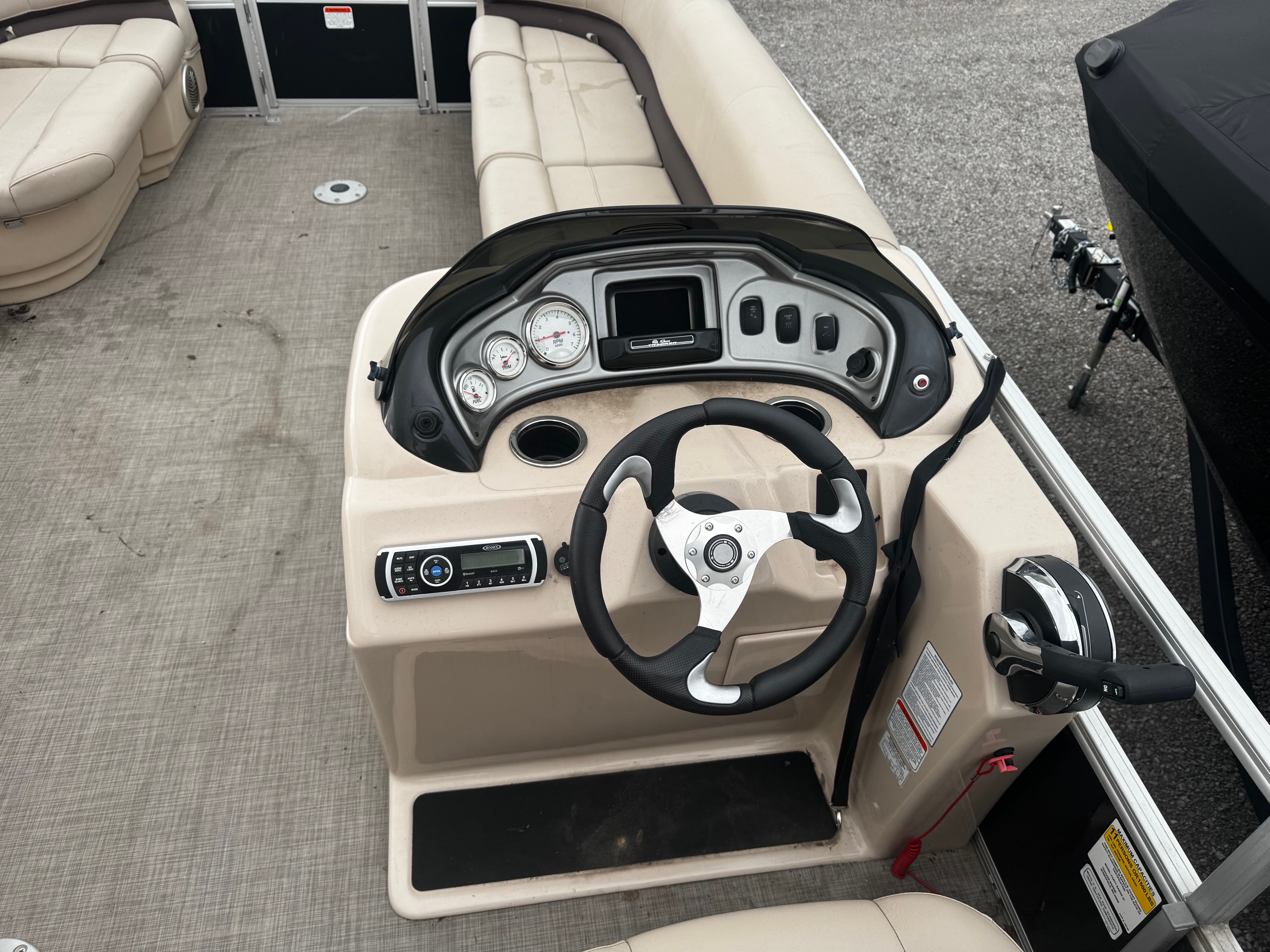 Powered by a single engine with 115 horsepower, the Sun Tracker SPB 22 DLX delivers a smooth and responsive ride. The 115 HP engine provides plenty of power for leisurely cruises, towing water toys, or getting to your favorite fishing spot with ease. This pontoon boat is engineered for stability and efficiency, ensuring that every outing is both enjoyable and economical. The combination of reliable performance and manageable power makes this Sun Tracker boat for sale an ideal choice for boaters of all experience levels.