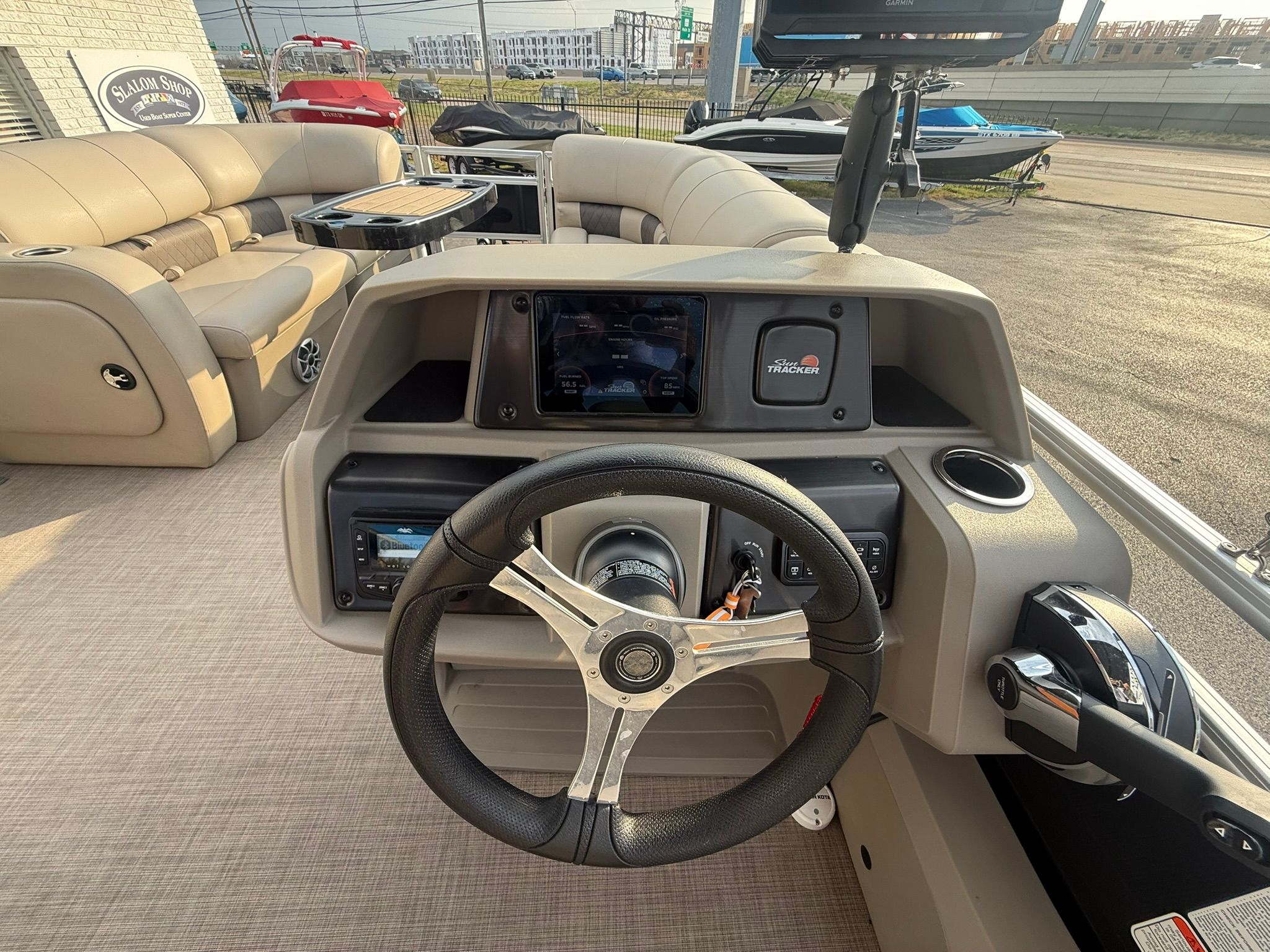 The 2025 Sun Tracker Sport Fish 22 is packed with features designed to enhance your time on the water. Its 24-foot length provides ample space for passengers to move around comfortably, while the pontoon’s wide beam ensures stability and safety. The deck layout is thoughtfully arranged to maximize both relaxation and functionality, with dedicated areas for lounging, fishing, and socializing.Special features of this Sun Tracker boat for sale include plush, marine-grade seating that resists the elements, a spacious sun deck for soaking up rays, and a versatile helm station with intuitive controls. The pontoon’s design makes it easy to transition from fishing to cruising, ensuring everyone on board can enjoy their favorite activities. With plenty of room for coolers, gear, and personal items, you’ll have everything you need for a full day of fun on the water.