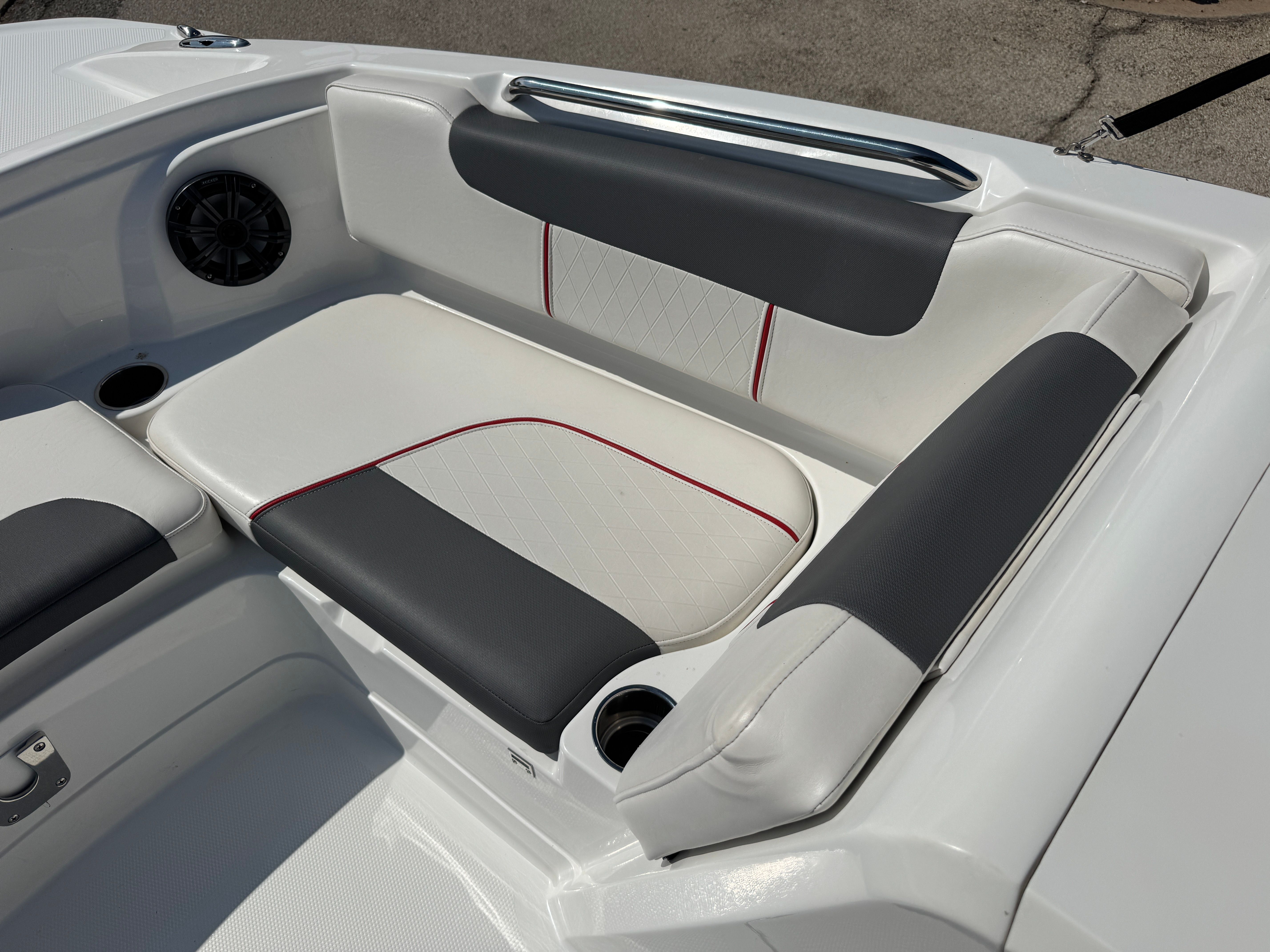 The 2021 Tahoe 1950 Deckboat is as practical as it is enjoyable. Its manageable 19-foot length makes it easy to store, trailer, and dock, so you can spend less time worrying about logistics and more time enjoying the water. The efficient engine provides a great balance of power and fuel economy, allowing you to maximize your time on the water without breaking the bank. Whether you are navigating busy marinas or exploring quiet lakes, the Tahoe 1950’s responsive handling and compact size make it a breeze to operate.This deckboat is also designed with convenience in mind, offering ample storage for all your boating essentials. From life jackets to fishing gear to water toys, you will have plenty of space to keep everything organized and within reach. The intuitive controls and easy-to-read gauges make piloting the Tahoe 1950 straightforward and stress-free, so you can focus on having fun and making memories.