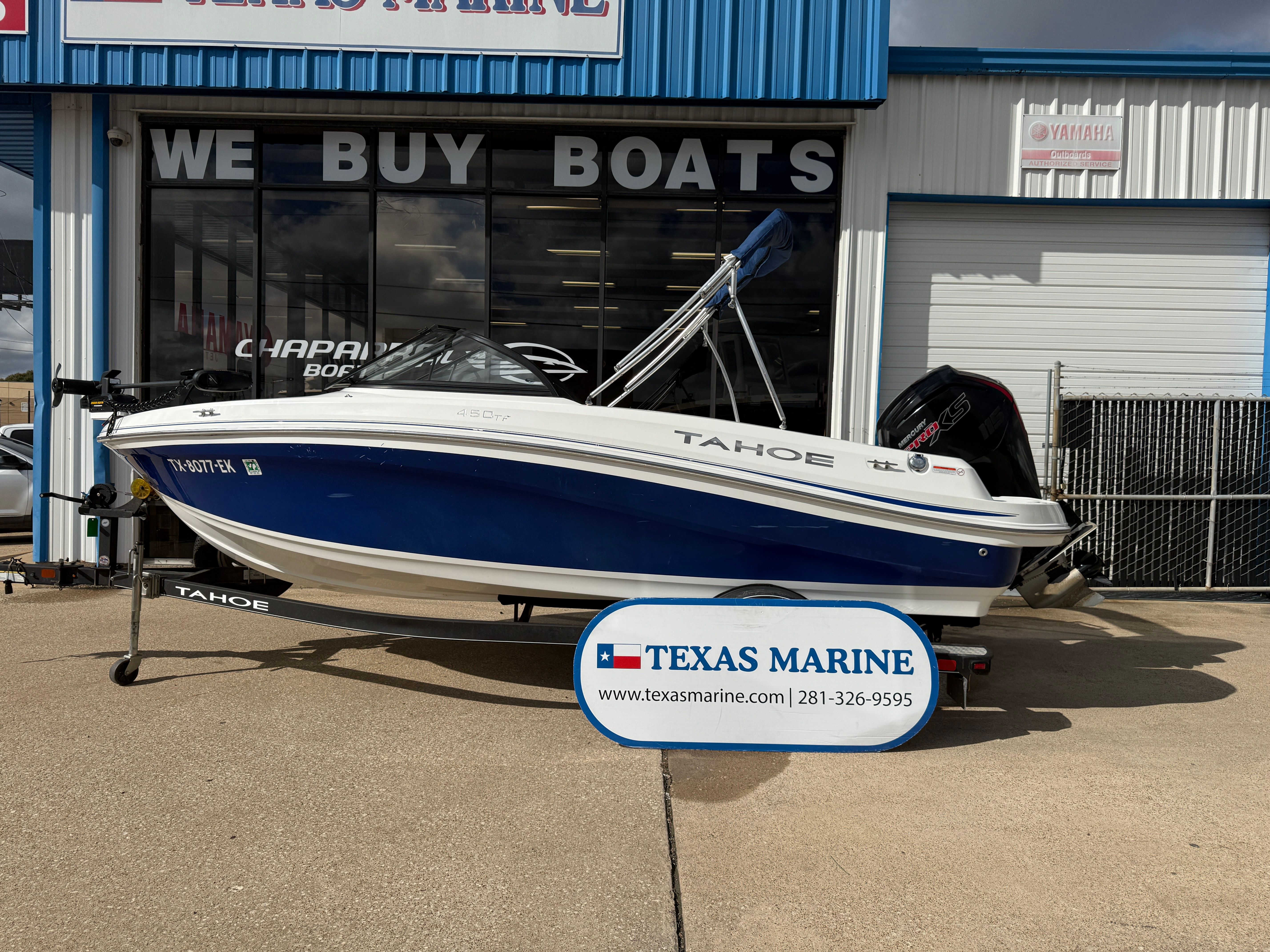 The 2019 Tahoe 450 TF stands out as a dynamic Bowrider, measuring an impressive 18.42 feet in length. Its sleek design and sporty profile make it a head-turner at any marina or boat ramp. As a used Tahoe boat for sale, this model offers exceptional value, blending performance, comfort, and versatility in one attractive package. The 450 TF is built for those who appreciate quality time on the water, whether it’s a day of fishing, watersports, or simply relaxing with friends and family.
