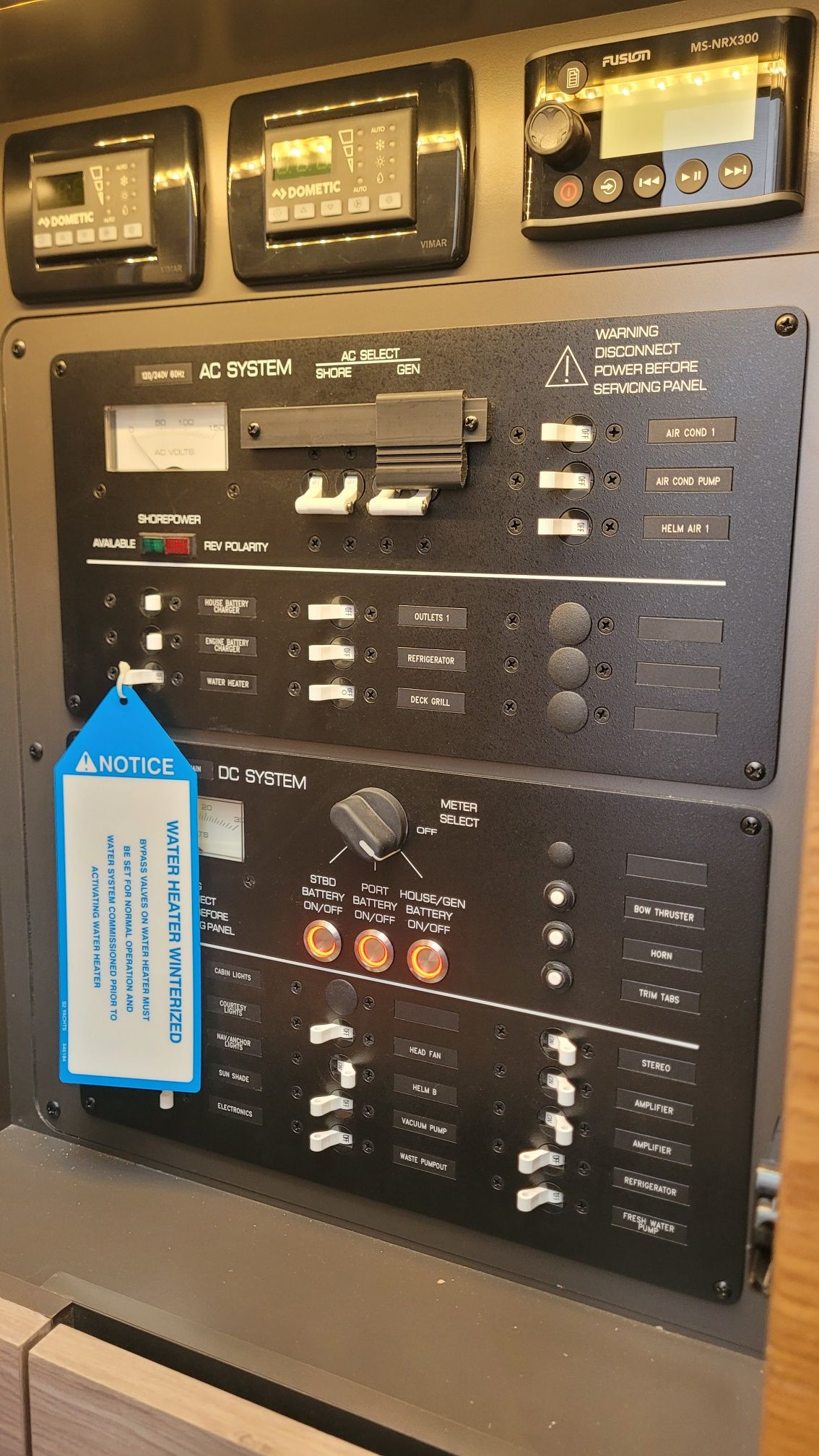 Other notable options include, Panda diesel generator 5KW, water heater, cockpit grill, cockpit TV, Drop curtain enclosure, dramatic lighting package, cool helm air and heat 6k, head macerator system, custom freshwater flush system for the generator and AC unit and custom Yeti cooler storage.