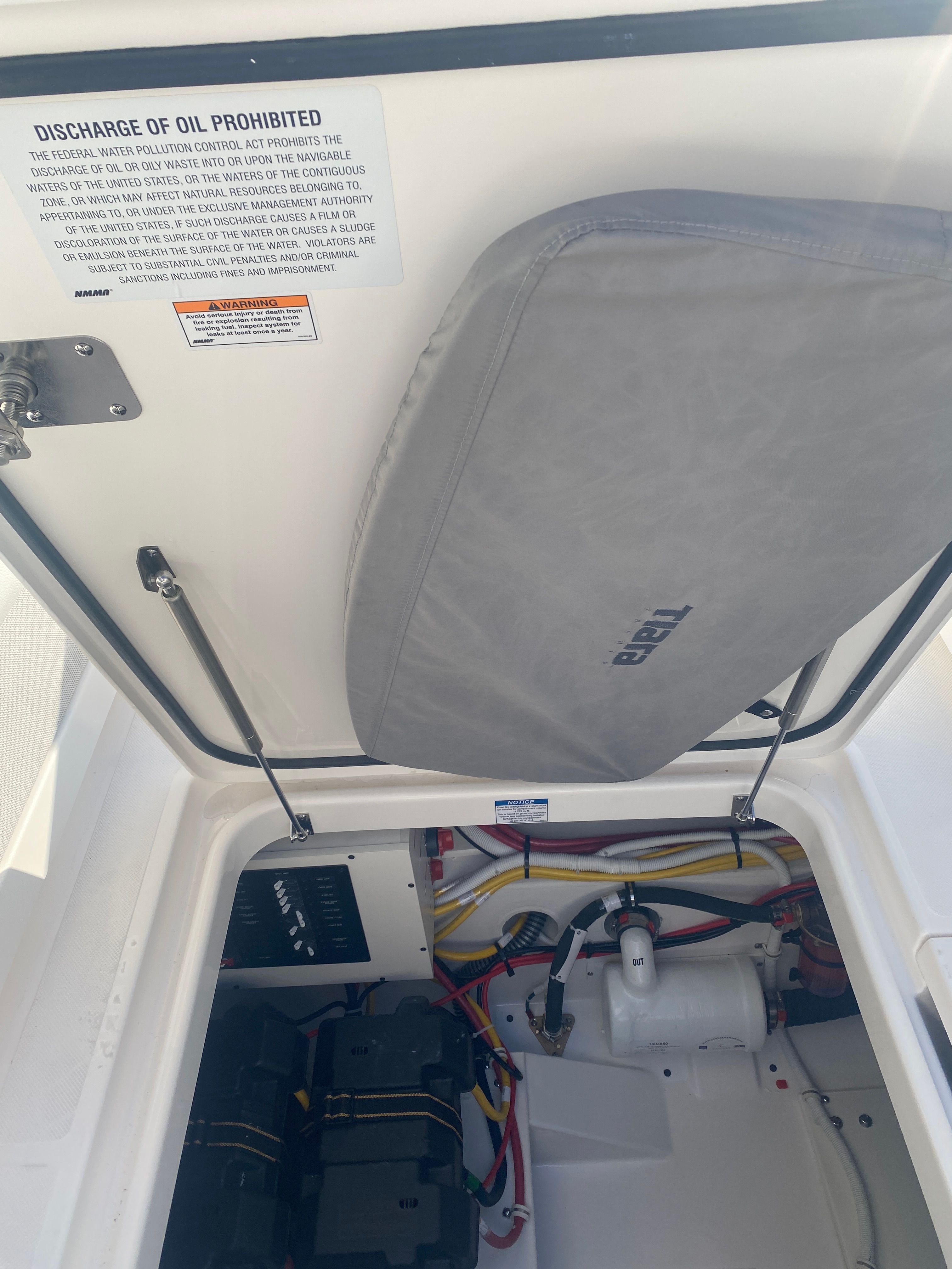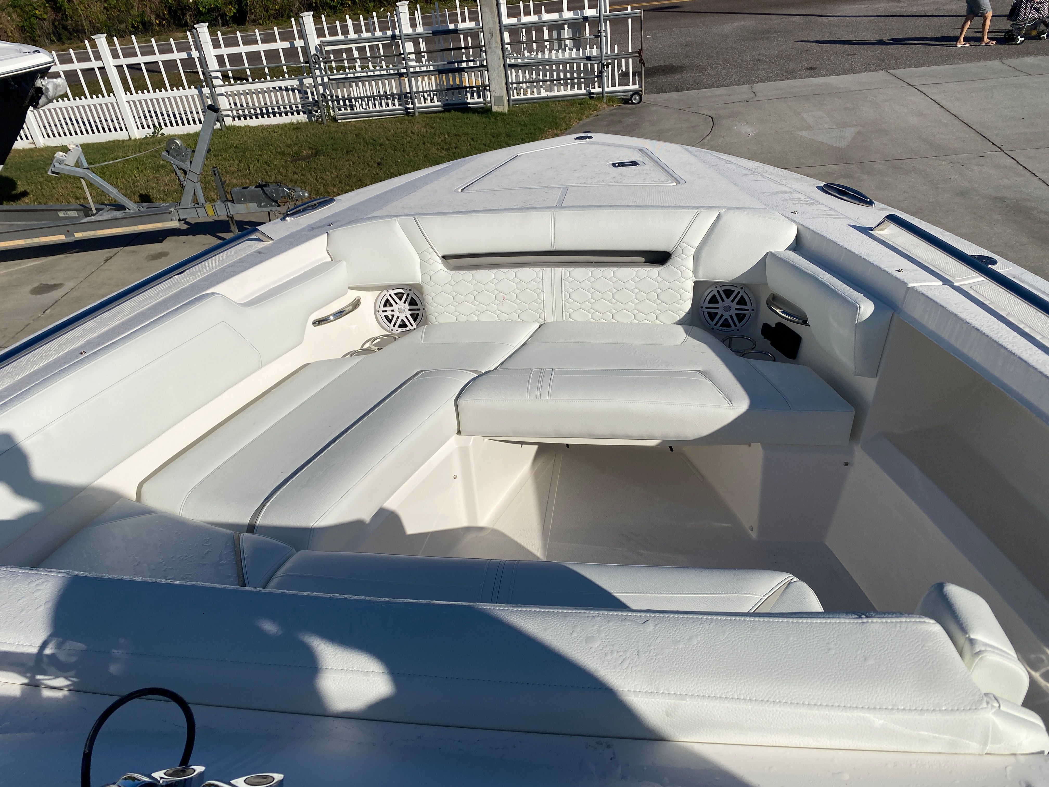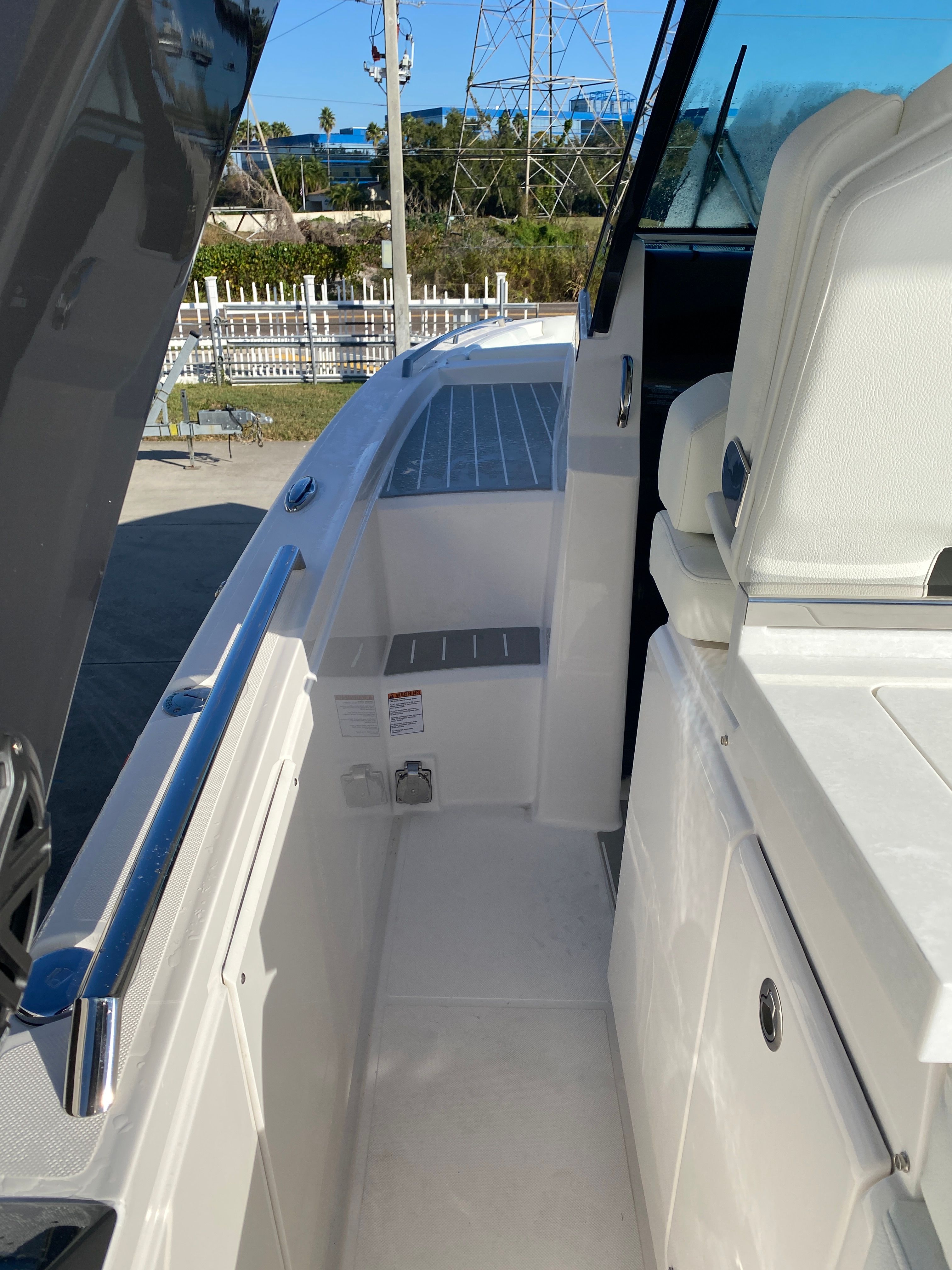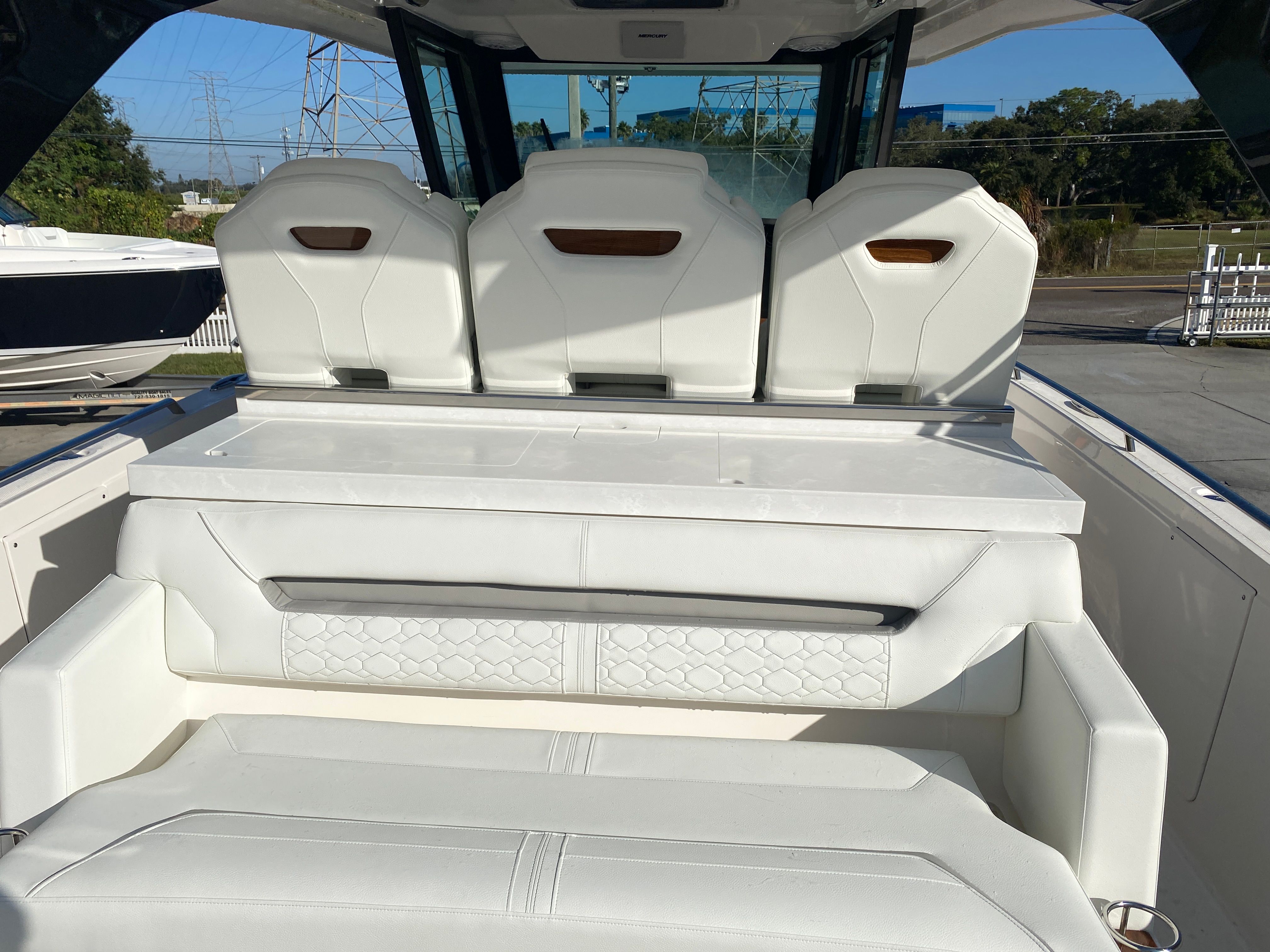 The 2026 Tiara Yachts 34 LS is loaded with premium features that enhance both comfort and functionality. The onboard generator (Panda 5KW/6 Gal Water Heater) ensures you have reliable power for extended stays, while the macerator waste system adds convenience and efficiency to your onboard experience. The Cool Helm air conditioning with heat keeps the helm area comfortable in any weather, allowing you to enjoy your time on the water year-round.Entertainment is elevated with a flatscreen TV in the cockpit, perfect for relaxing with friends and family or catching the big game while anchored. The SYN Teak Deck in Platinum Grey offers a stylish, low-maintenance surface that is both durable and visually appealing. For culinary enthusiasts, the electric grill in the cockpit makes it easy to prepare delicious meals alfresco, while the high gloss teak aft cockpit table provides an elegant setting for dining and socializing.Enjoy the outdoors in comfort with the forward manual Mediterranean style sunshade, offering protection from the sun while you relax on deck. The quick release fender hanger adds a practical touch, making it simple to secure and deploy fenders as needed.