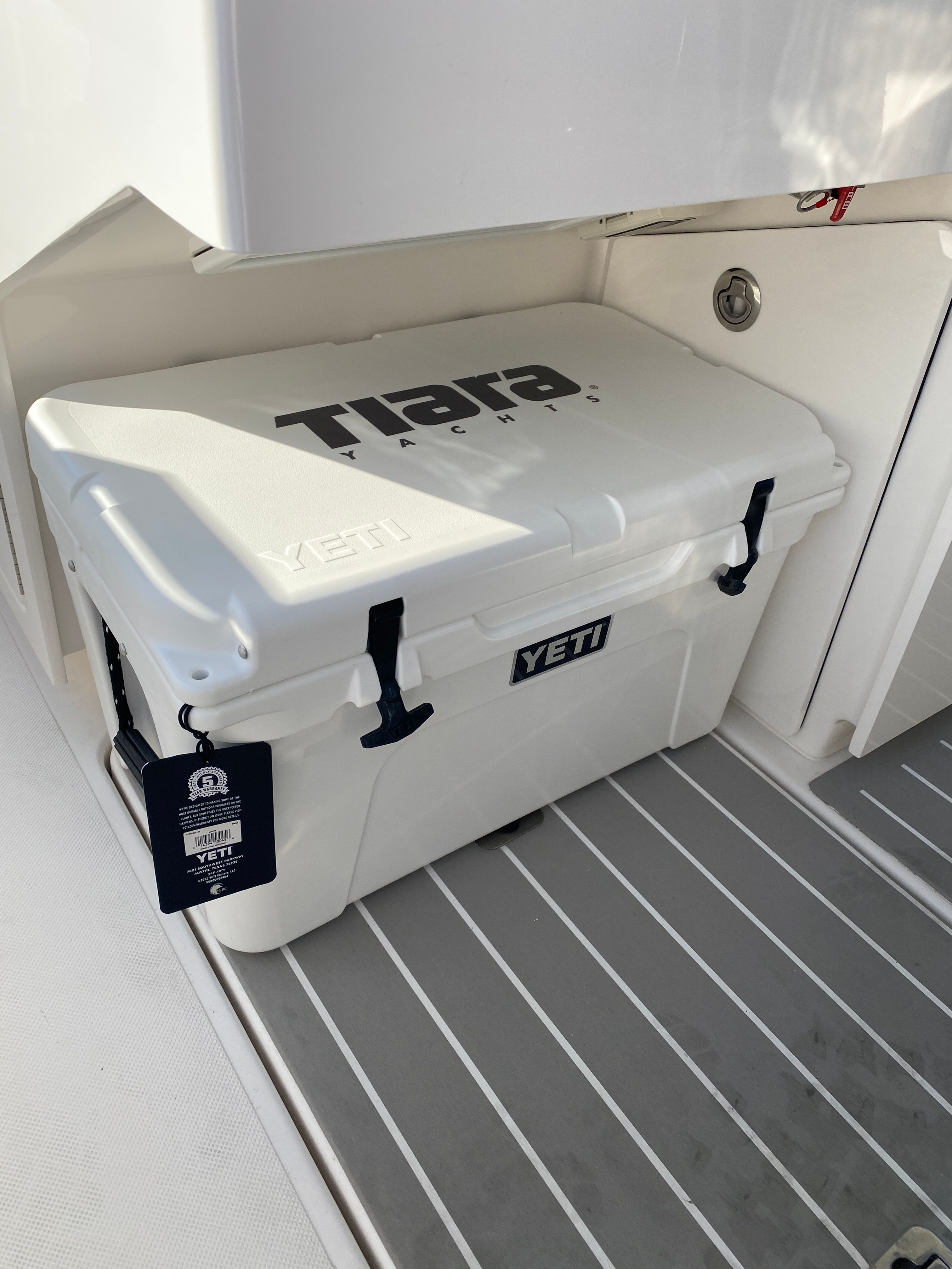 Practicality is at the core of the Tiara Yachts 34 LS design. The joystick piloting system simplifies docking, making it accessible for boaters of all experience levels. The efficient generator and water heater support longer stays on the water, while the macerator waste system streamlines onboard maintenance. The SYN Teak Deck is easy to clean and maintain, ensuring your yacht always looks its best with minimal effort.Storage solutions are thoughtfully integrated throughout the yacht, providing ample space for gear, provisions, and personal items. The quick release fender hanger adds convenience when arriving at or departing from the dock, saving time and effort. Fuel efficiency is enhanced by the advanced engine technology, allowing you to enjoy extended cruising without frequent refueling stops.