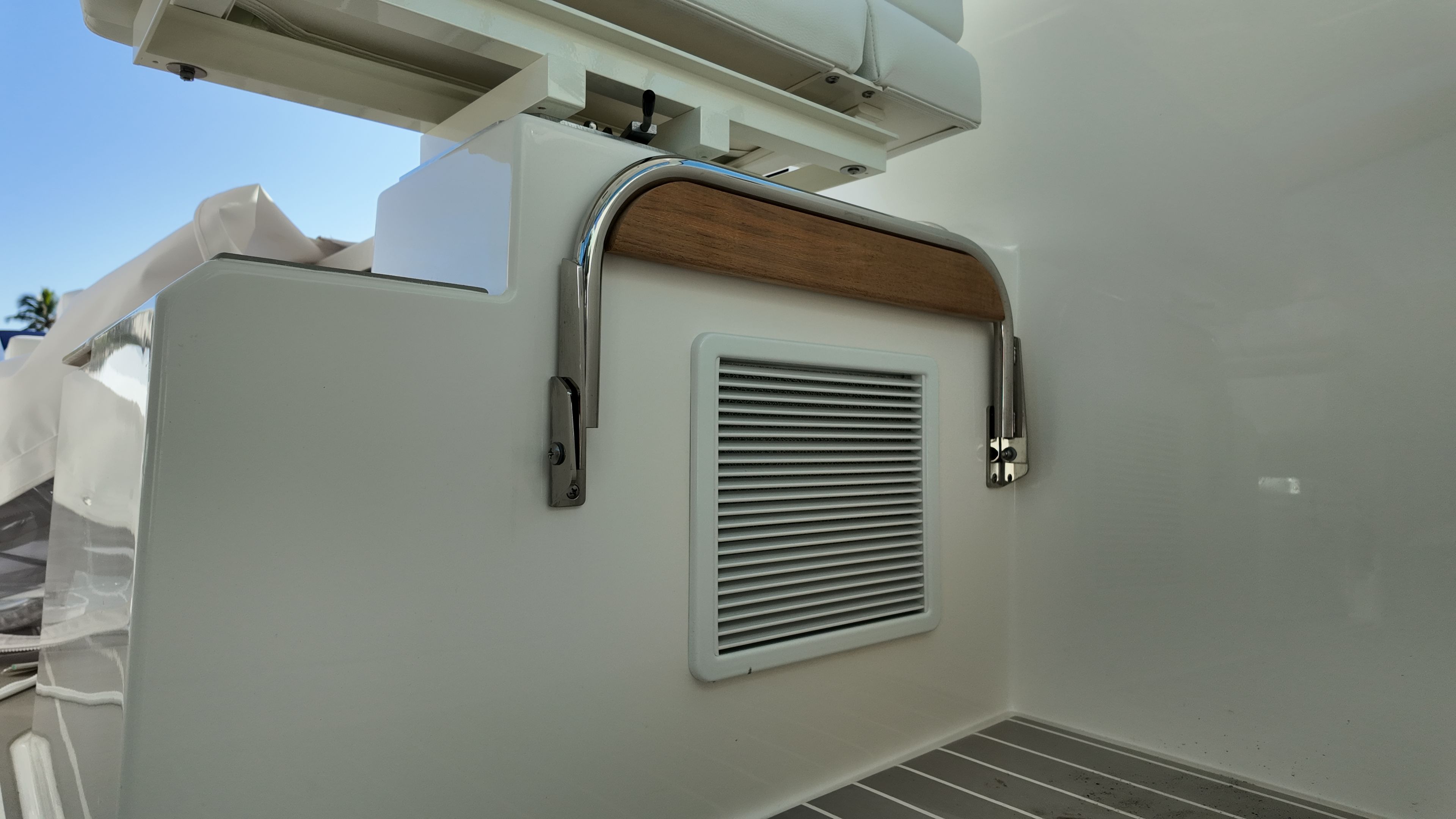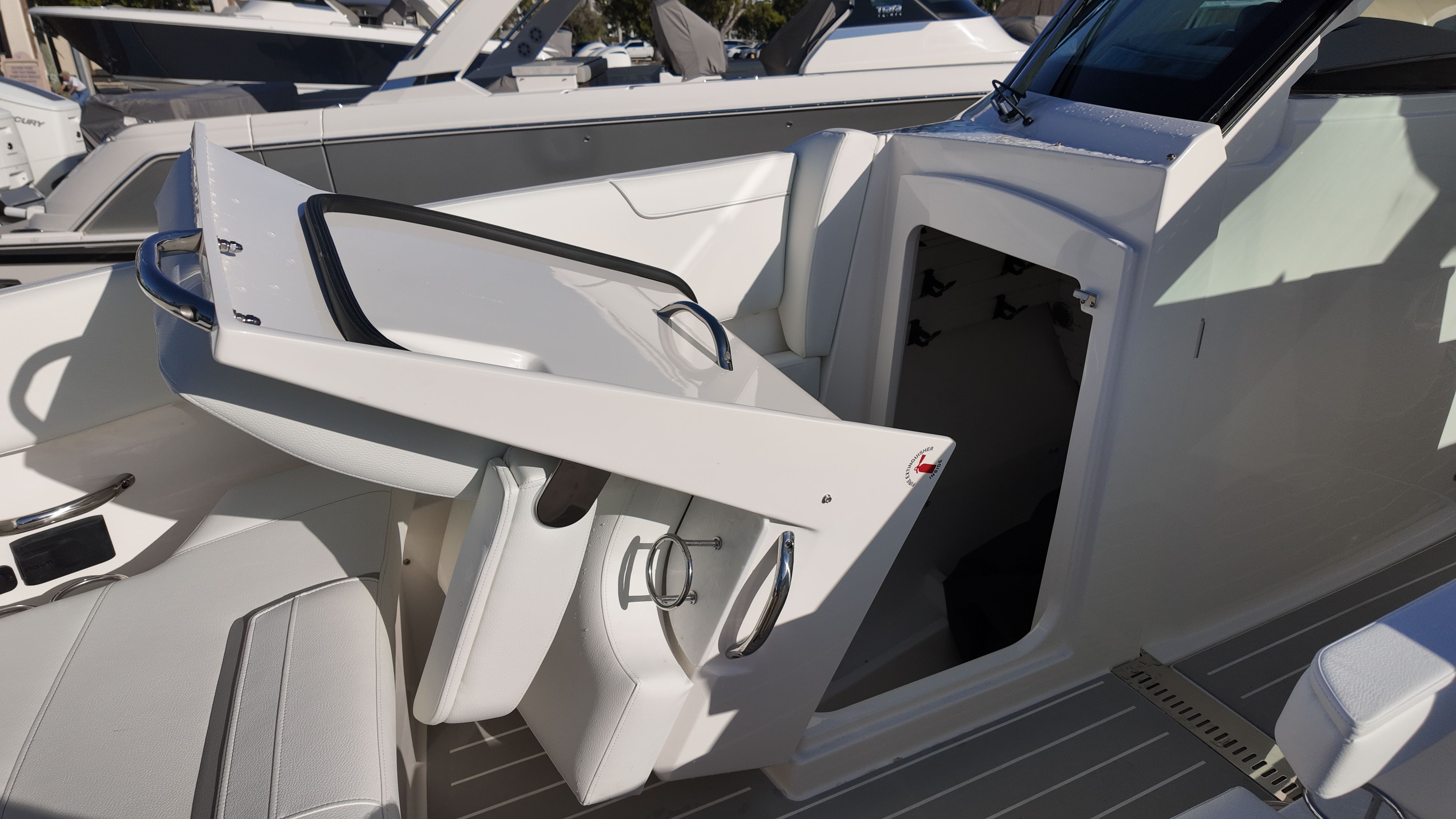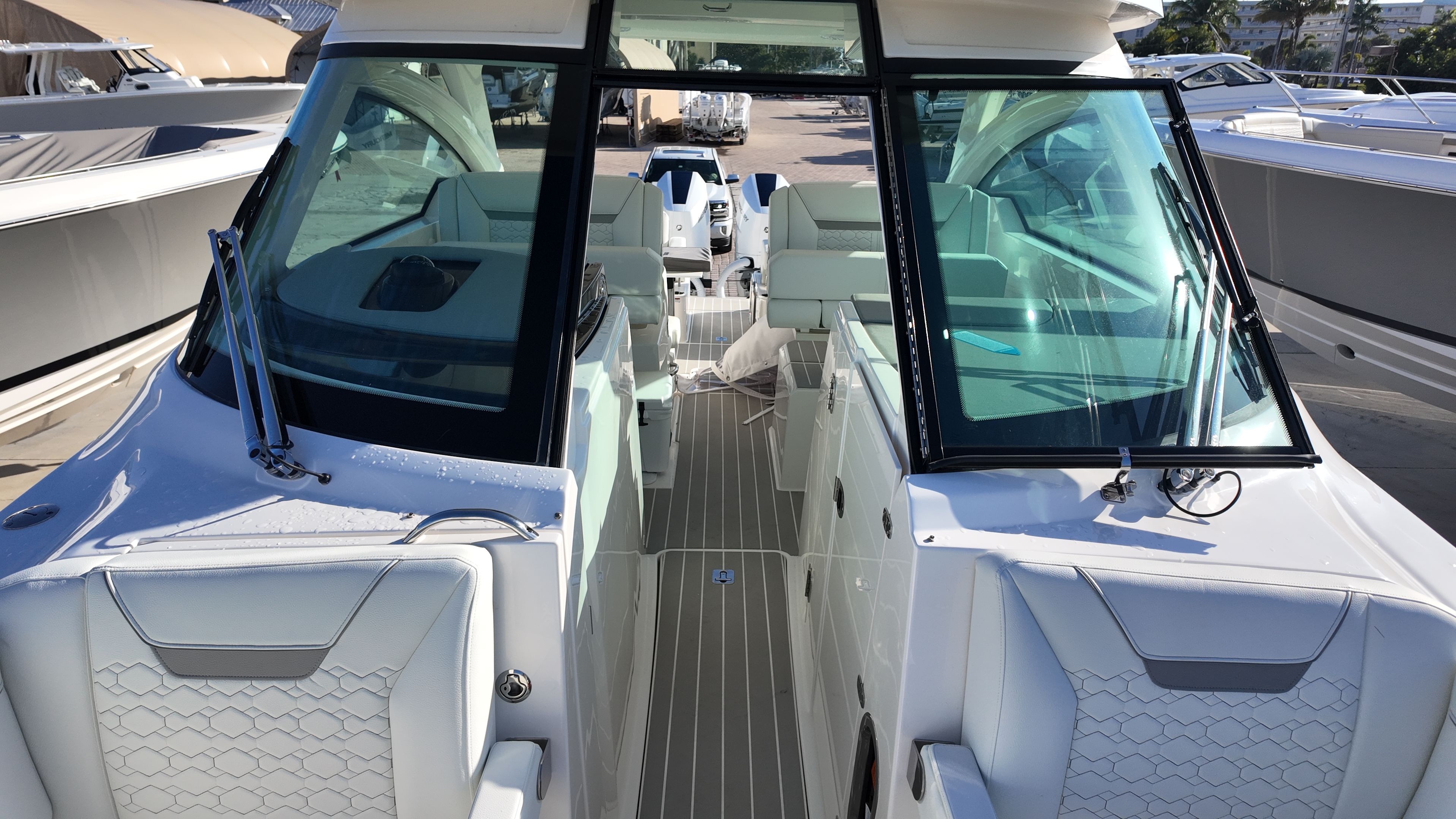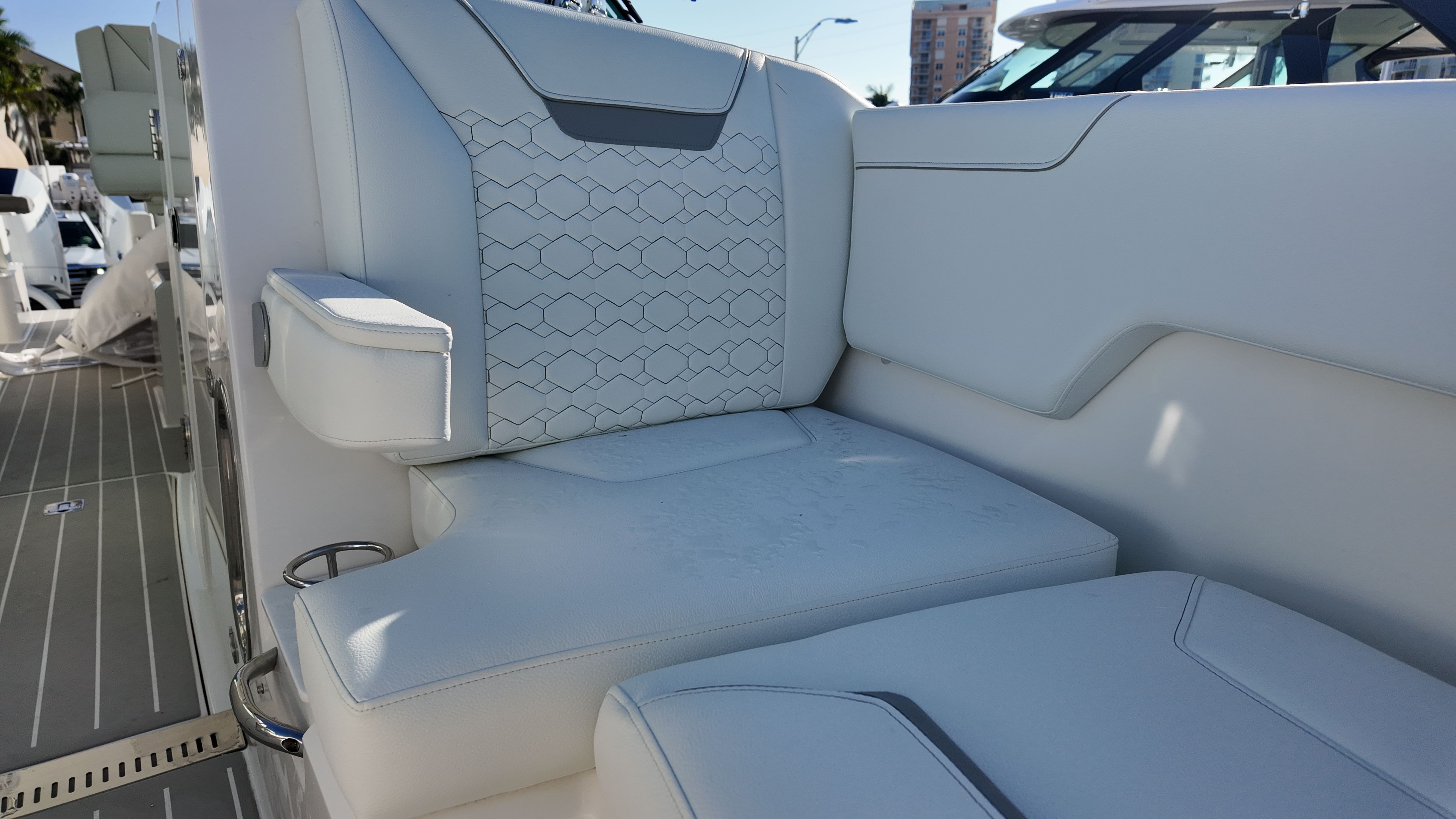 Practicality meets luxury in the Tiara Yachts 34 LX. The yacht’s efficient layout provides ample storage for gear, water toys, and personal belongings, making it easy to keep the deck clutter-free and organized. The raw water cockpit washdown simplifies cleaning after a day of fun, while the macerator waste system streamlines waste management for longer journeys. The generator and water heater support extended stays on the water, allowing you to enjoy all the comforts of home while exploring new destinations.Docking and maneuvering are effortless thanks to the advanced joystick piloting system, which provides precise control in tight spaces and challenging conditions. The synthetic teak deck is not only visually appealing but also easy to maintain, ensuring that your yacht remains in top condition with minimal effort. These practical features make the 34 LX an ideal choice for boaters who value convenience as much as luxury.