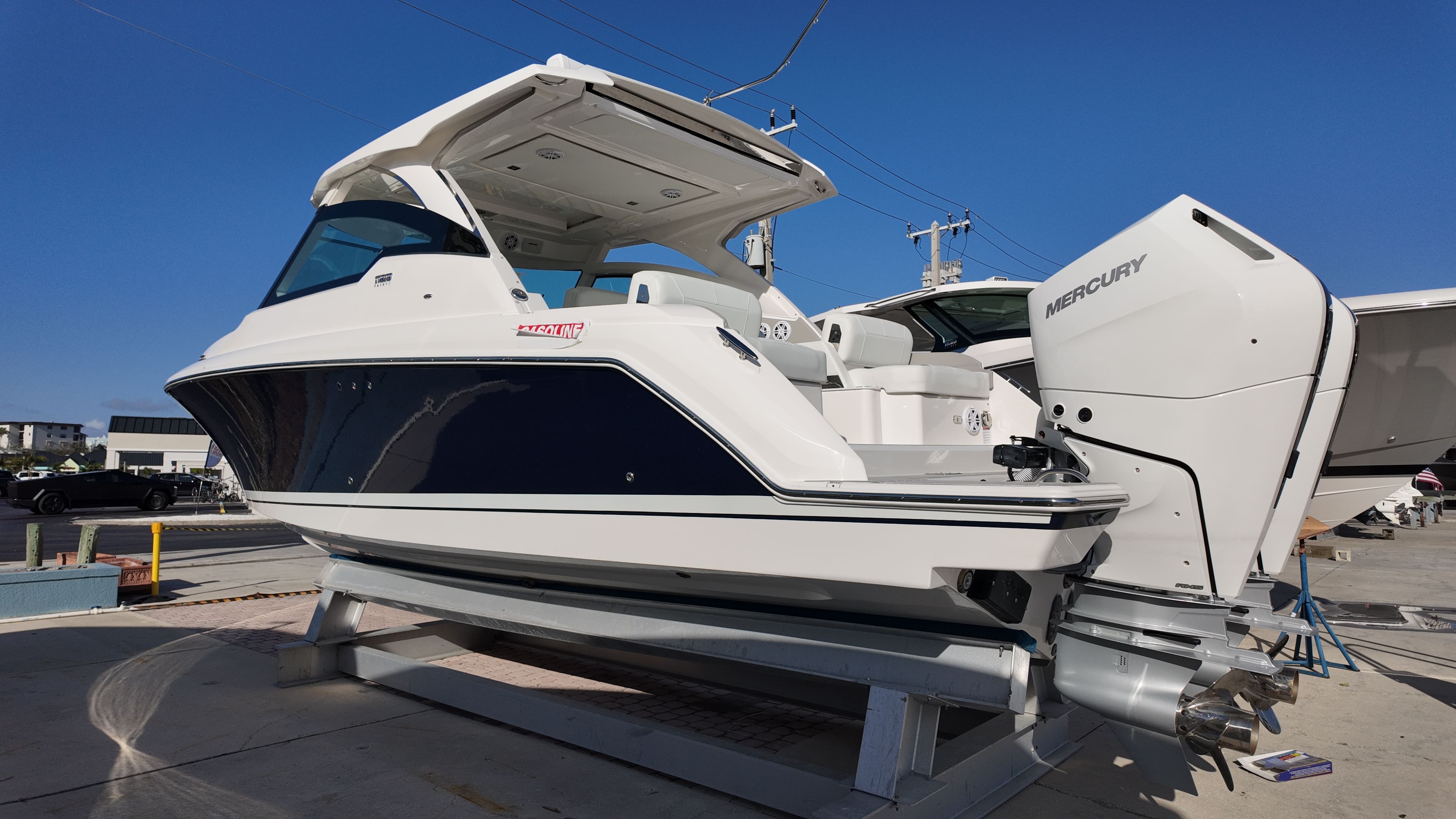 Power and precision define the performance of the Tiara Yachts 34 LX. Equipped with twin Mercury 400 V10 JPO engines, this yacht boasts a combined 800 horsepower, delivering exhilarating speed and responsive handling. The advanced propulsion system ensures smooth acceleration and effortless maneuverability, whether you are cruising along the coastline or navigating busy harbors. The inclusion of the Seakeeper SK2 Gyro stabilizer further enhances your on-water experience by minimizing roll and providing unmatched stability, even in choppy conditions. This level of performance makes the 34 LX a top contender among yacht boats for sale, appealing to those who value both excitement and control.
