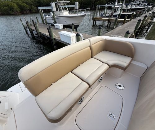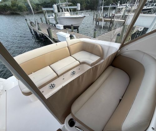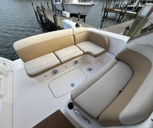 The Tiara Yachts 3500 Sovran is designed with the discerning boater in mind, offering a range of features that enhance both comfort and functionality. The spacious cockpit is ideal for socializing, with plenty of seating for friends and family. The helm station is thoughtfully laid out, providing excellent visibility and intuitive controls for the captain. Below deck, you will find a well-appointed cabin that offers a welcoming retreat after a day on the water. The interior is crafted with high-quality materials, reflecting Tiara Yachts’ reputation for luxury and attention to detail. Every inch of the 35-foot layout is optimized for both relaxation and practicality, making it easy to enjoy extended stays aboard.