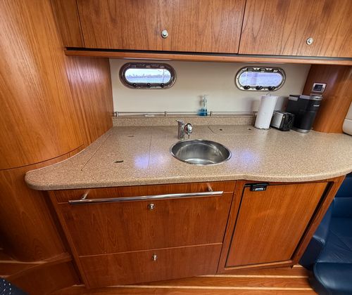 In addition to its recreational appeal, the Tiara Yachts 3500 Sovran offers a range of practical benefits that make ownership a breeze. The manageable 35-foot length makes docking and maneuvering straightforward, even in busy marinas or tight slips. Thoughtful storage solutions throughout the boat ensure you have plenty of space for gear, provisions, and personal items, keeping the deck and cabin clutter-free. The efficient twin-engine setup not only delivers impressive performance but also contributes to fuel efficiency, allowing you to spend more time on the water and less time at the fuel dock. Maintenance is made easier by the accessible engine compartment and quality construction, ensuring your investment remains in top condition for years to come.