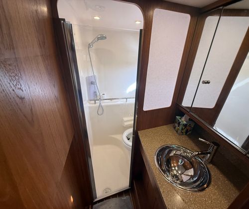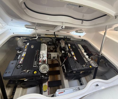 Power and performance are at the heart of the Tiara Yachts 3500 Sovran. Equipped with twin engines delivering a combined 800 horsepower, this cruiser boat for sale is built to deliver an exhilarating ride. With 700 engine hours, these engines have been thoughtfully used, offering a balance between proven reliability and plenty of life left for future adventures. The twin-engine setup ensures smooth acceleration, responsive handling, and the confidence to tackle a variety of water conditions. Whether you are cruising along the coastline or heading out for a weekend escape, the 3500 Sovran’s performance capabilities make every journey a pleasure.