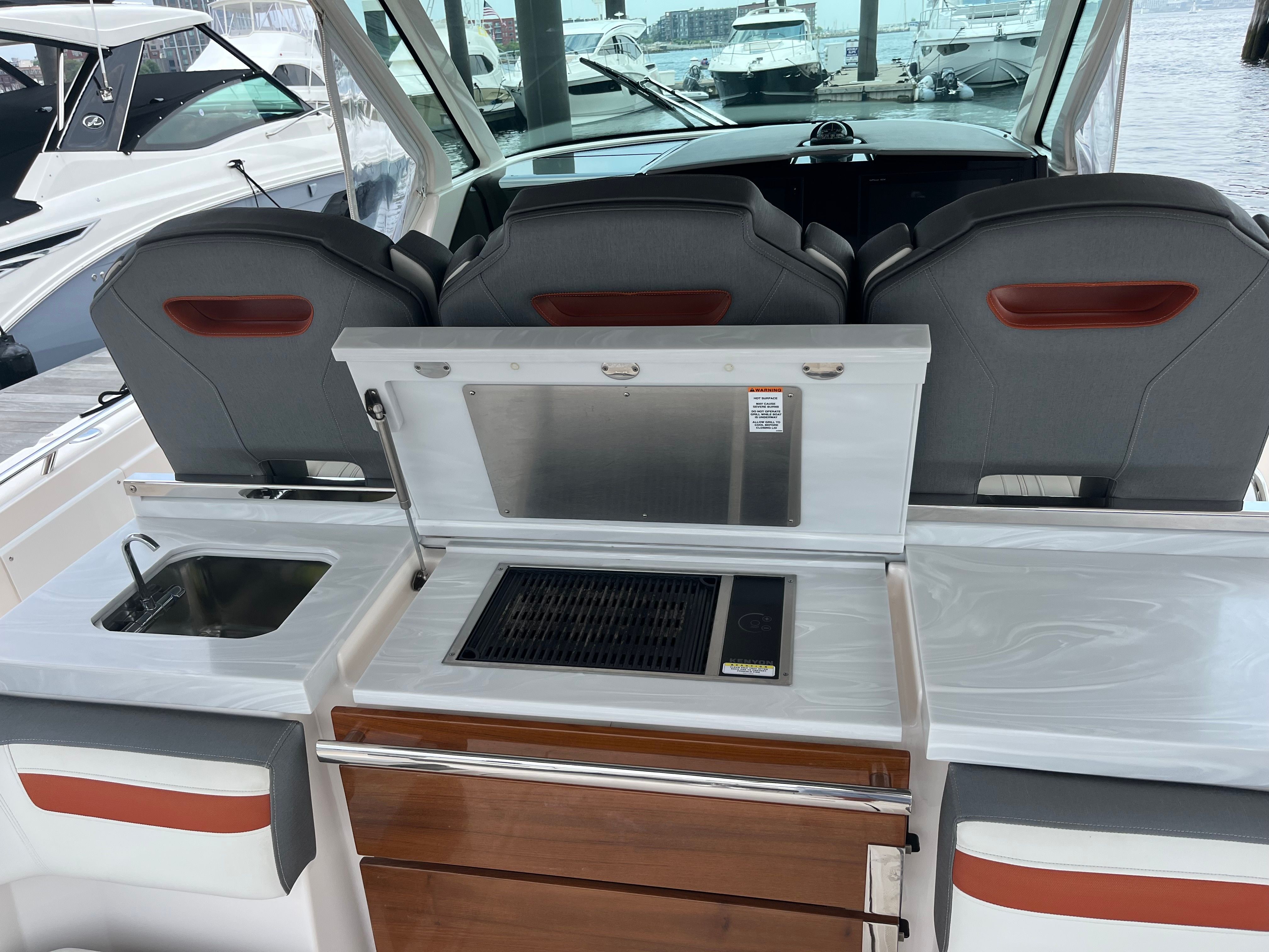 In addition to its luxurious amenities, the Tiara Yachts 38 LS is designed with practicality in mind. The ample storage space makes it easy to keep the deck organized and clutter-free, while the intuitive layout ensures that everything you need is always within reach. Docking and maneuvering are simplified by the yacht’s responsive handling and advanced controls, making it easy to navigate even in tight spaces.Fuel efficiency is another key benefit of the Tiara Yachts 38 LS. The triple-engine configuration is optimized for both power and economy, allowing you to enjoy longer trips without worrying about frequent refueling stops. This makes the 38 LS an excellent choice for those who love to explore new destinations and spend extended time on the water.