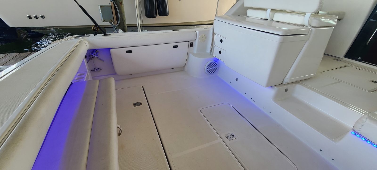The Tiara Yachts 3800 is thoughtfully designed to maximize comfort, convenience, and enjoyment on every voyage. Its spacious layout provides ample room for relaxation and socializing, while the high-quality materials and finishes create an inviting atmosphere. The yacht’s 38-foot length allows for generous deck space, making it easy to move about and enjoy panoramic views of your surroundings. The dual-engine setup not only enhances performance but also adds a layer of safety and peace of mind for extended journeys.