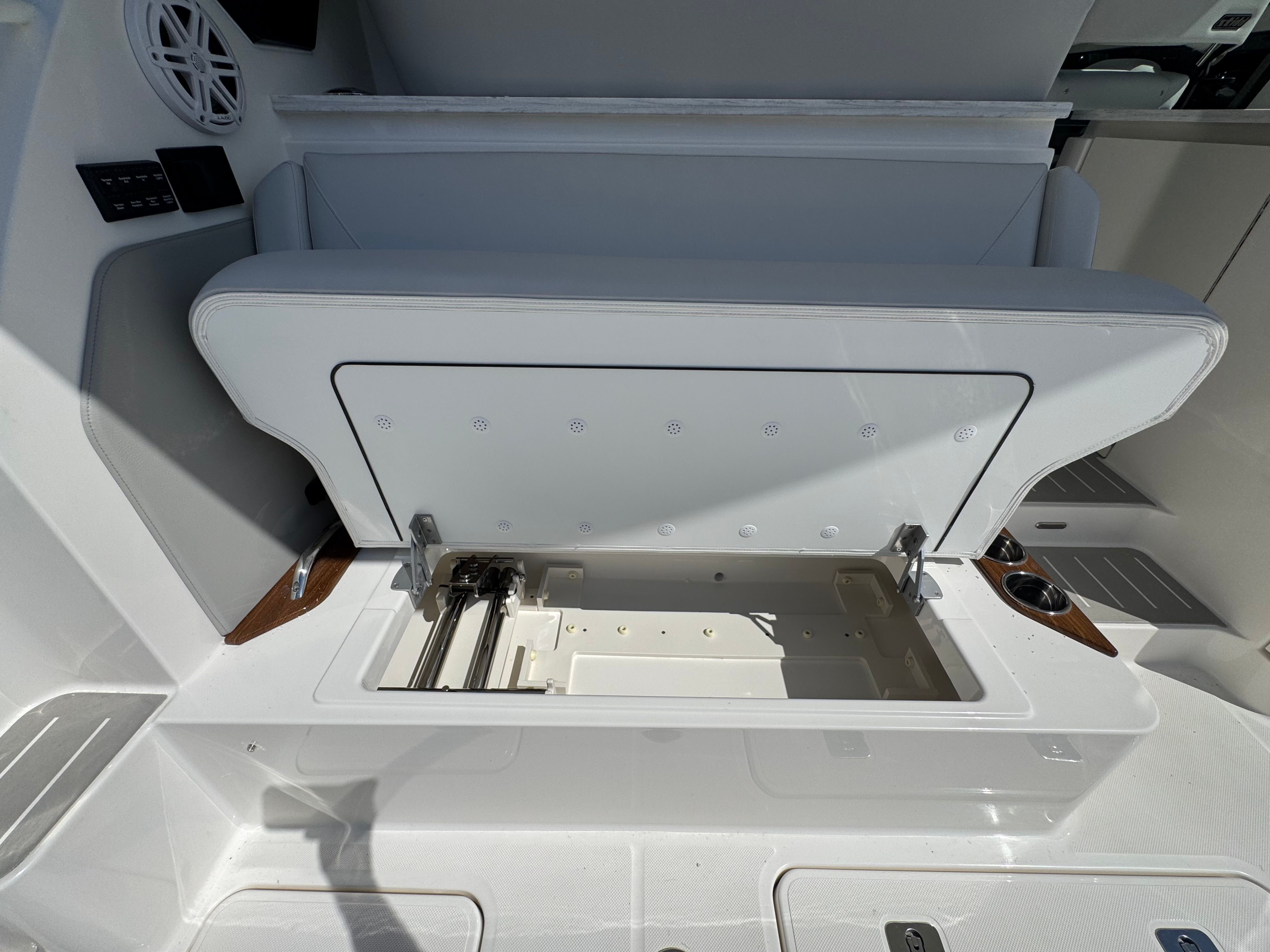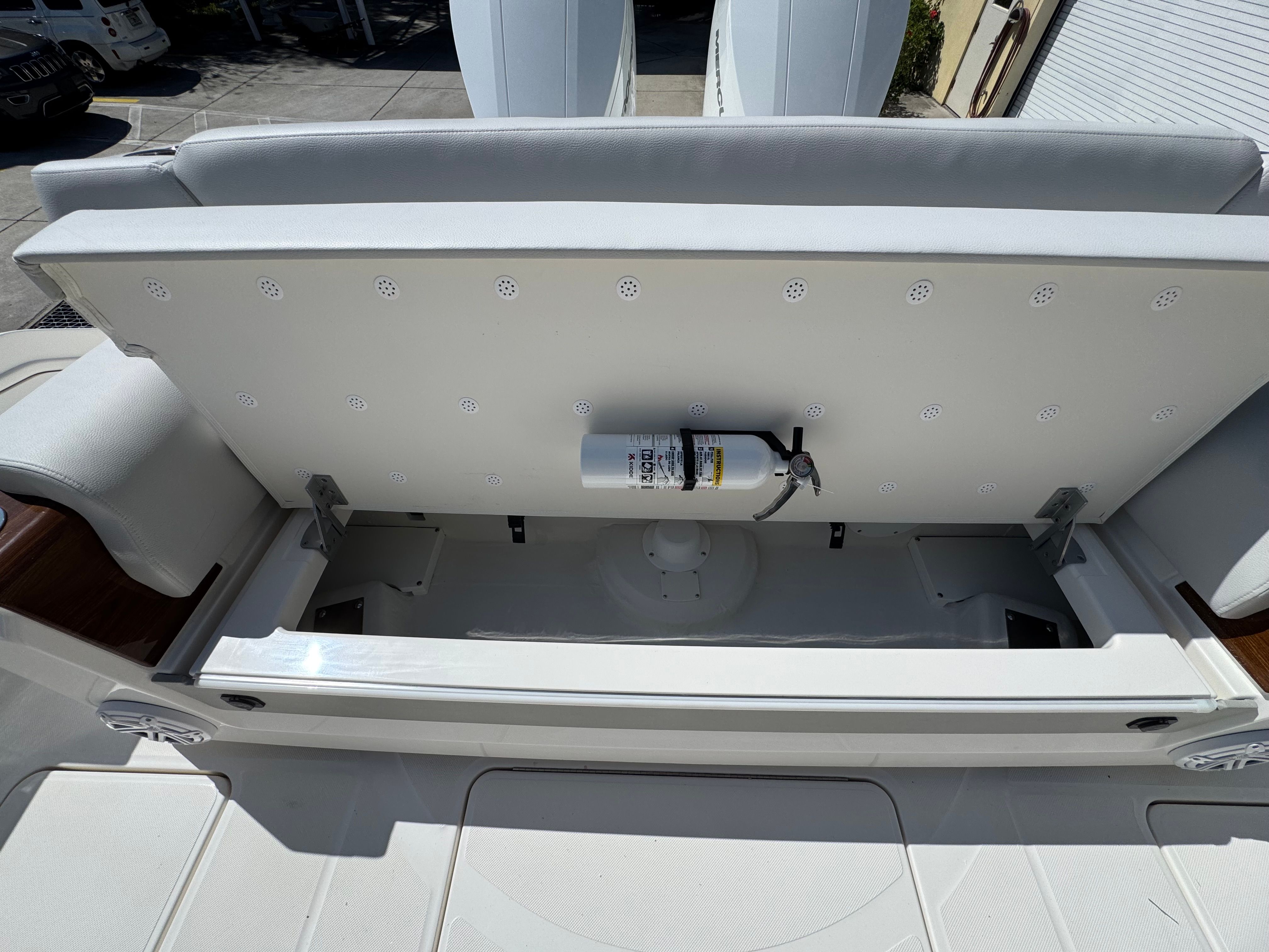 The 2026 Tiara Yachts 39 LE is loaded with premium features designed to enhance comfort, convenience, and enjoyment on every voyage. The Cool Helm AC with heat ensures that the helm area remains comfortable in any weather, allowing you to cruise in style year-round. The cockpit wet bar includes a built-in fridge, perfect for keeping refreshments chilled and ready for your guests. The buffet lounge module creates a versatile space for dining, socializing, or simply relaxing in the sun. The synthetic teak deck adds a touch of classic elegance while providing durability and easy maintenance.Navigation and control are elevated with the additional Garmin 17" display, offering advanced chart plotting and system monitoring at your fingertips. The washdown system in the raw water anchor locker makes cleaning up after a day on the water quick and convenient. The standard package ensures that you have all the essential amenities for a seamless boating experience, while the platinum gray and Sea Cliff Gray signature upholstery create a refined and inviting atmosphere throughout the yacht.