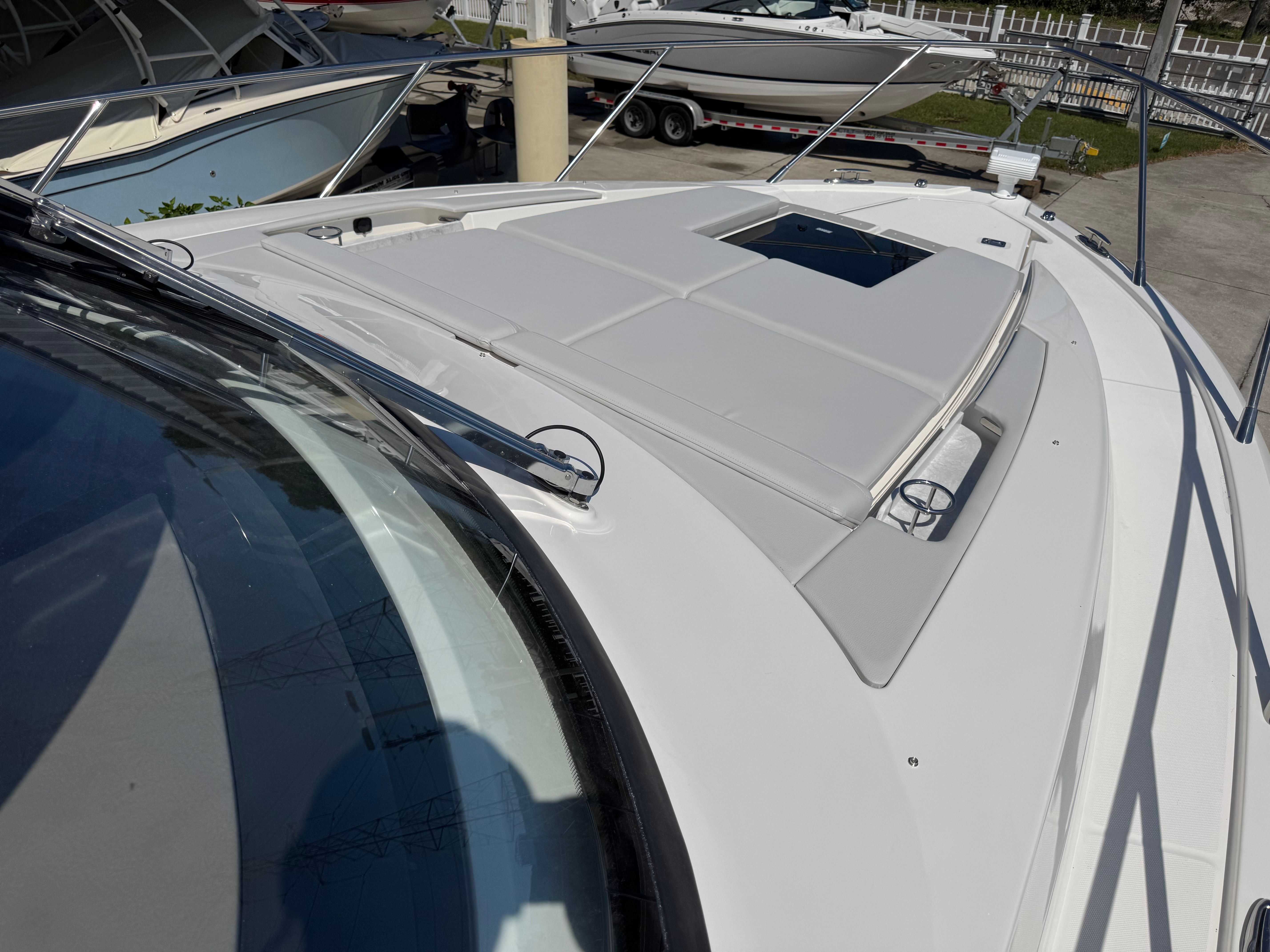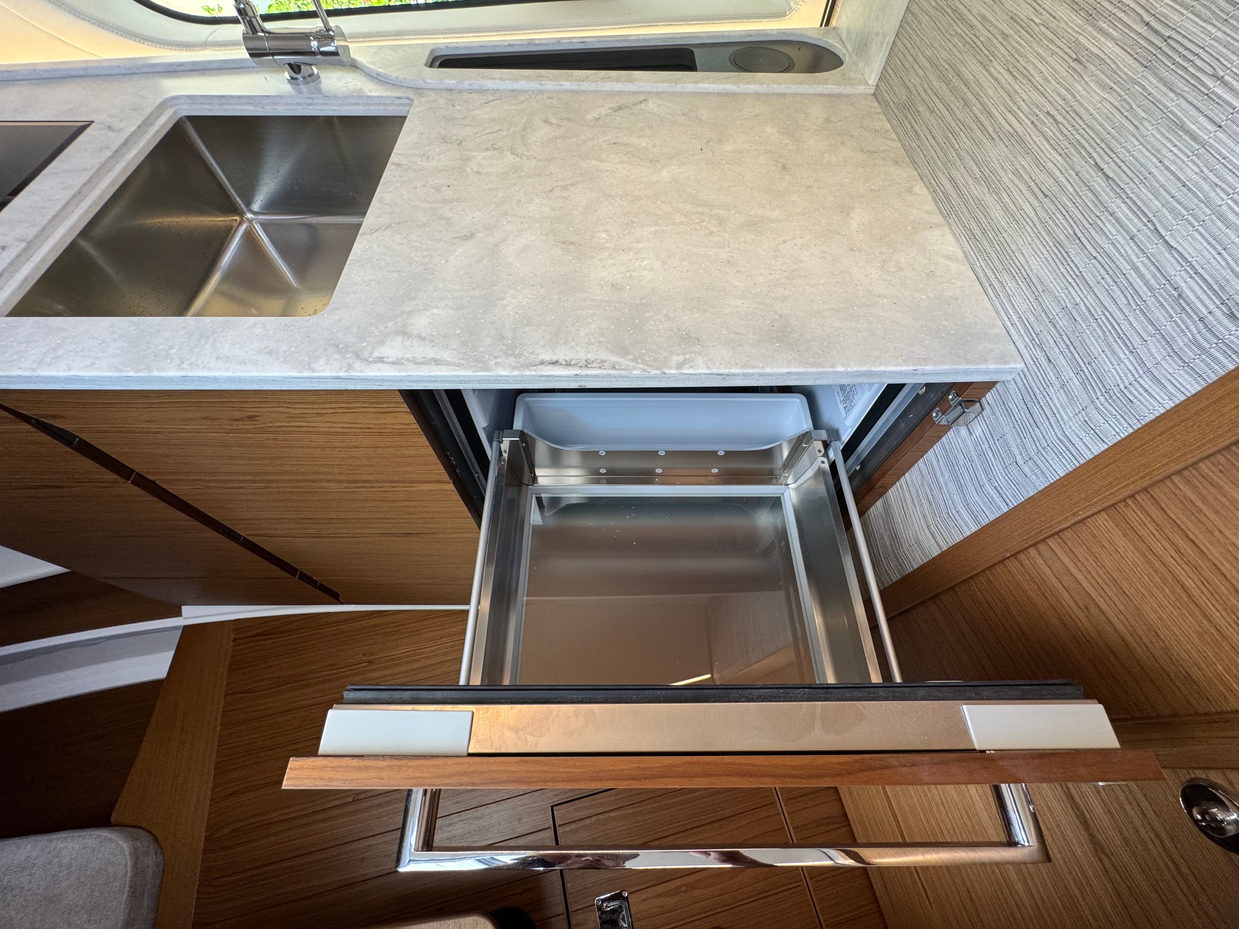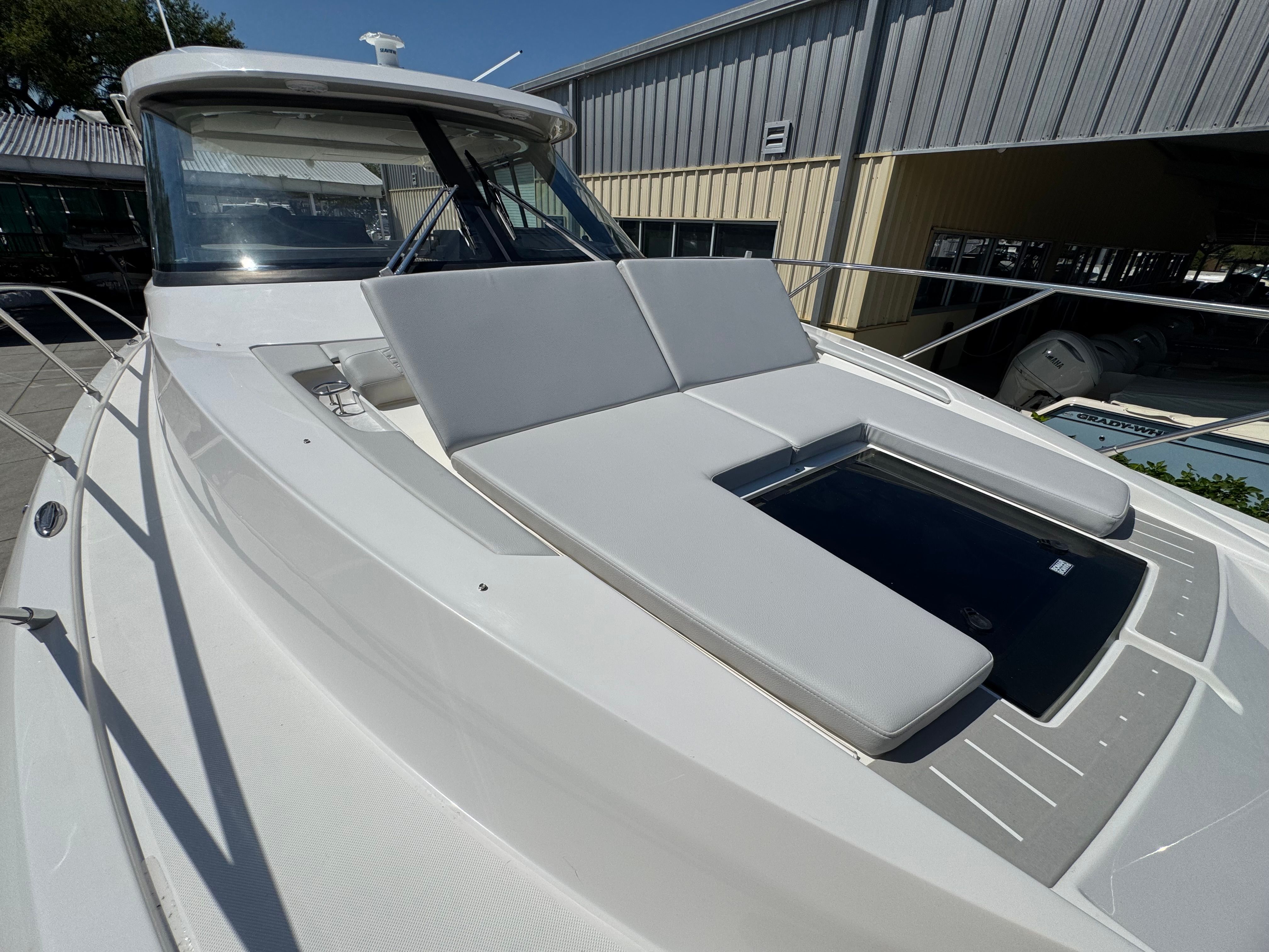 The Tiara Yachts 39 LE is designed with practicality in mind, making ownership as enjoyable as it is luxurious. The spacious cockpit and lounge areas provide plenty of room for guests, while the wet bar and fridge keep refreshments close at hand. The synthetic teak deck is not only beautiful but also easy to clean and maintain, ensuring that your yacht always looks its best. The advanced navigation system with the additional Garmin display enhances safety and convenience, allowing you to explore with confidence.Docking and maneuvering are simplified by the integrated bow thruster and Mercury JPO system, reducing stress and making it easy to enjoy spontaneous outings. The washdown system in the anchor locker helps keep your yacht clean after anchoring in sandy or muddy areas. Every detail of the 39 LE is designed to make your time on the water as enjoyable and hassle-free as possible.