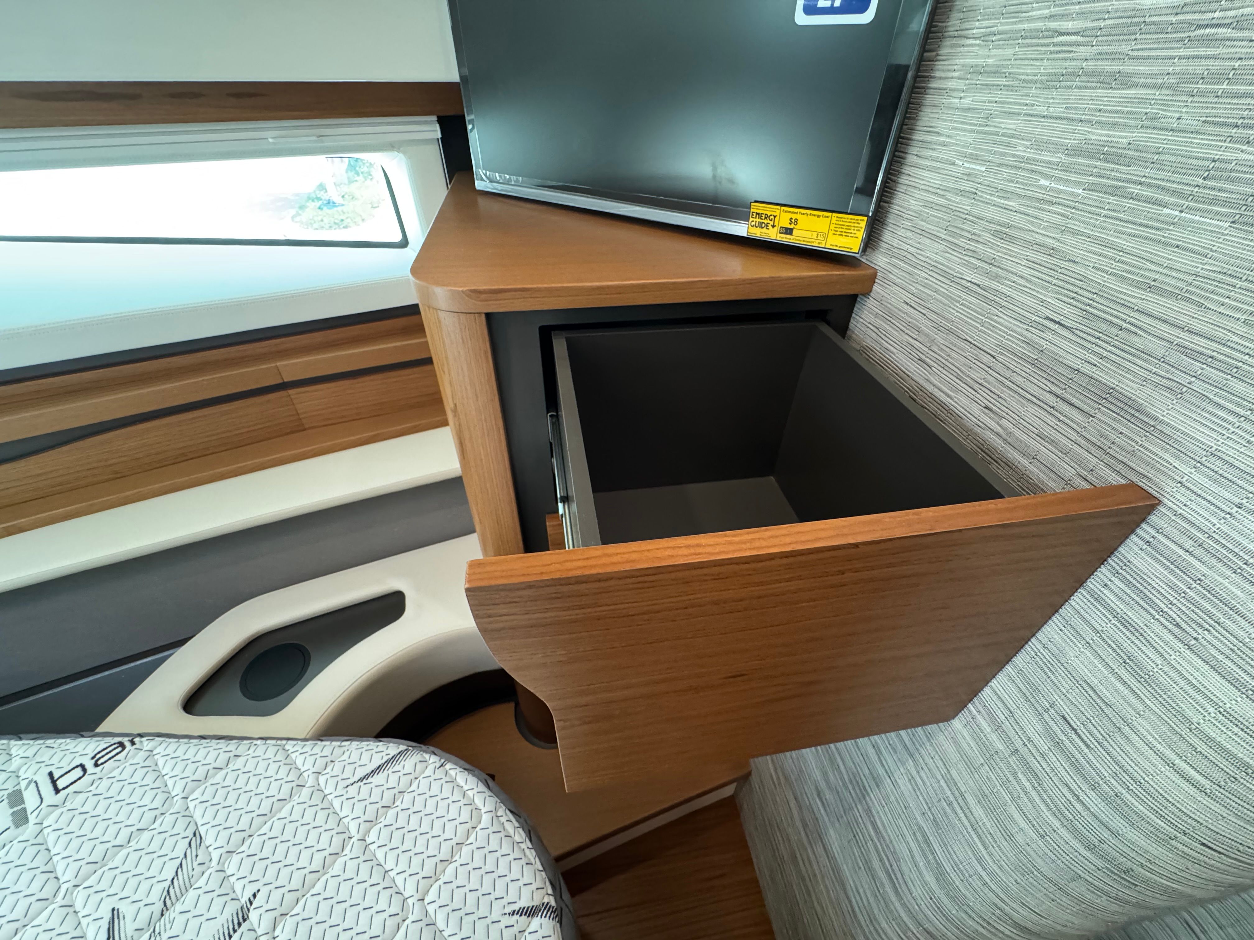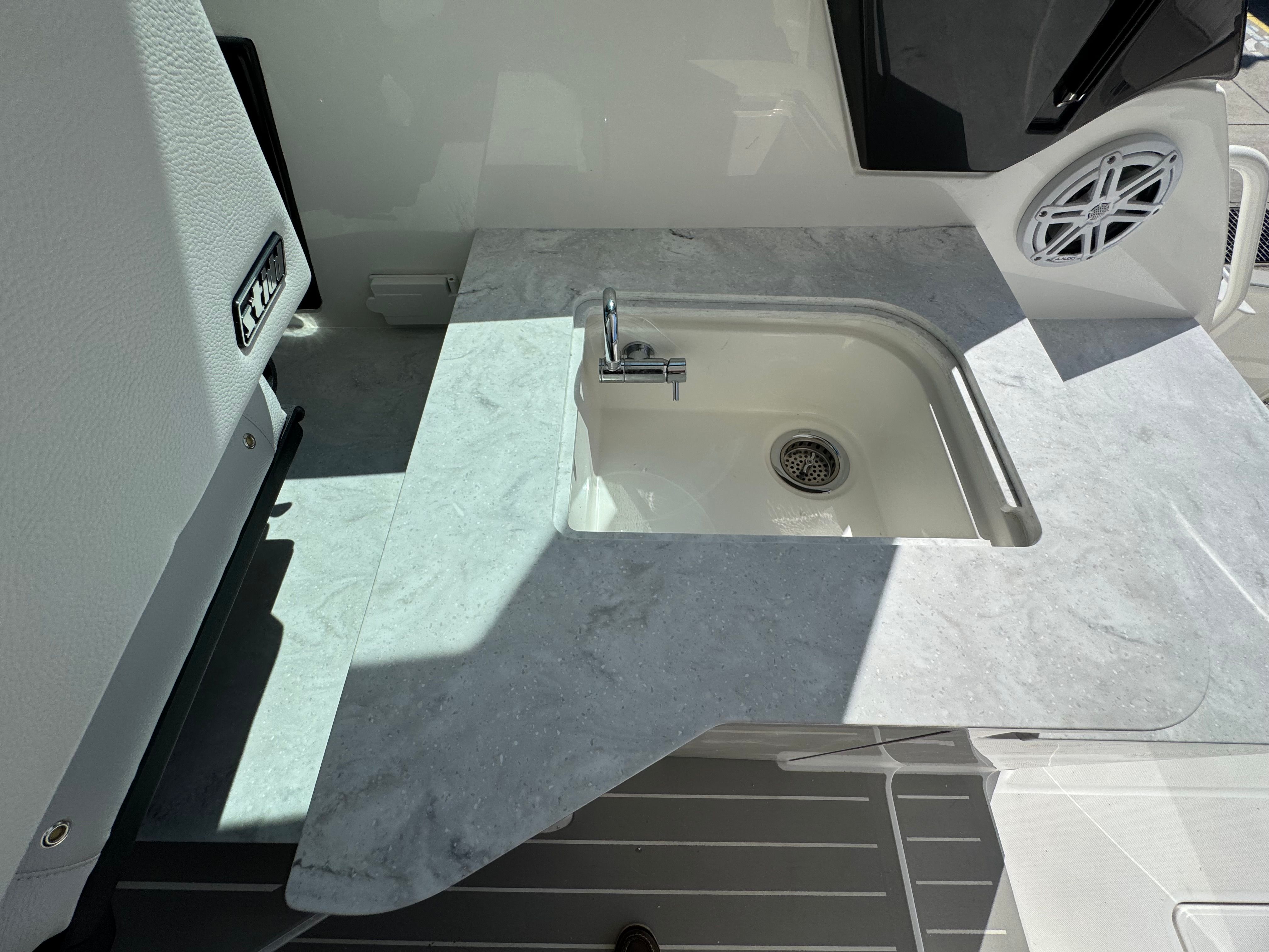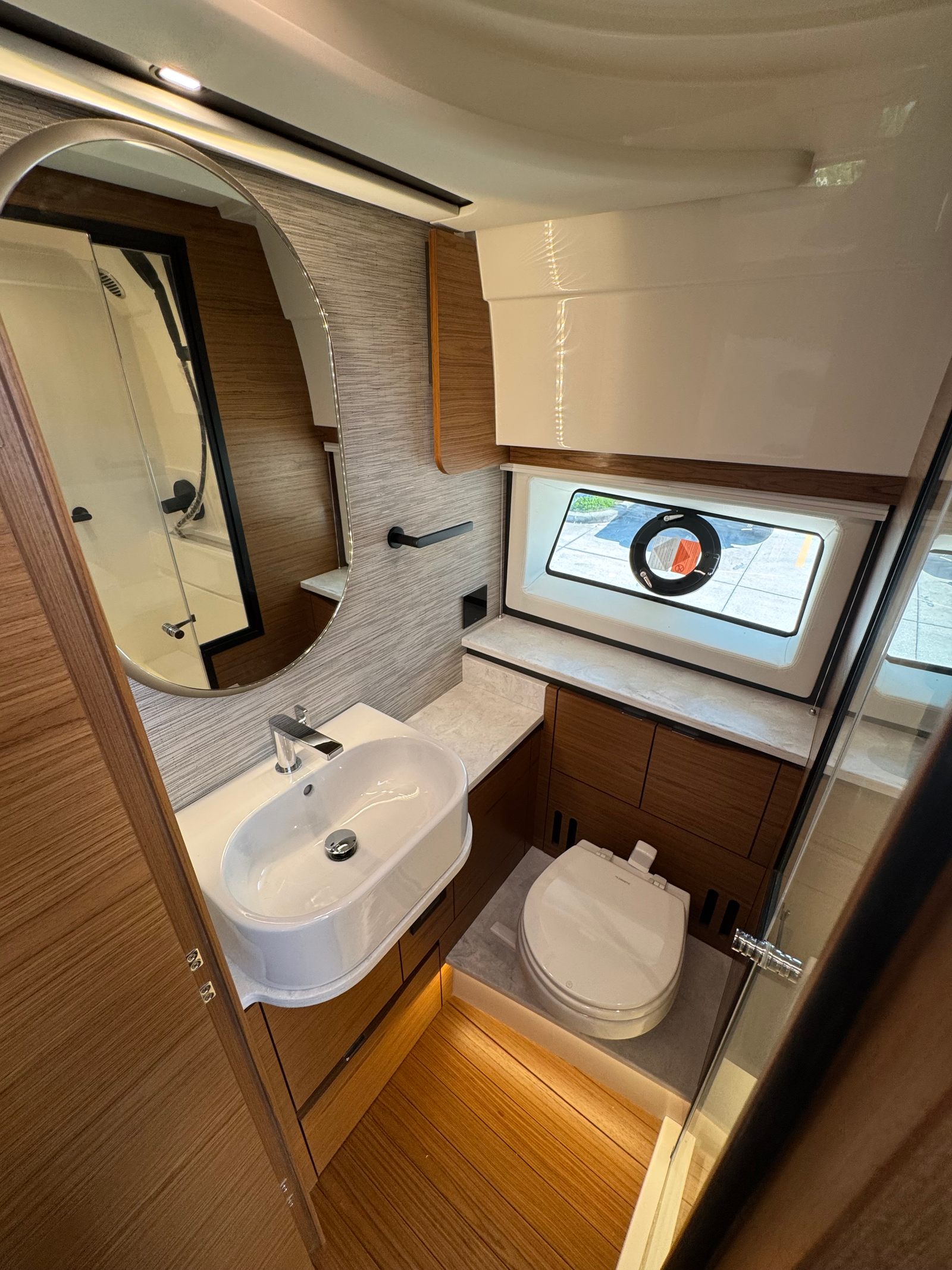 The Tiara Yachts 39 LE is designed with practicality in mind, making ownership as enjoyable as it is luxurious. The spacious cockpit and lounge areas provide plenty of room for guests, while the wet bar and fridge keep refreshments close at hand. The synthetic teak deck is not only beautiful but also easy to clean and maintain, ensuring that your yacht always looks its best. The advanced navigation system with the additional Garmin display enhances safety and convenience, allowing you to explore with confidence.Docking and maneuvering are simplified by the integrated bow thruster and Mercury JPO system, reducing stress and making it easy to enjoy spontaneous outings. The washdown system in the anchor locker helps keep your yacht clean after anchoring in sandy or muddy areas. Every detail of the 39 LE is designed to make your time on the water as enjoyable and hassle-free as possible.