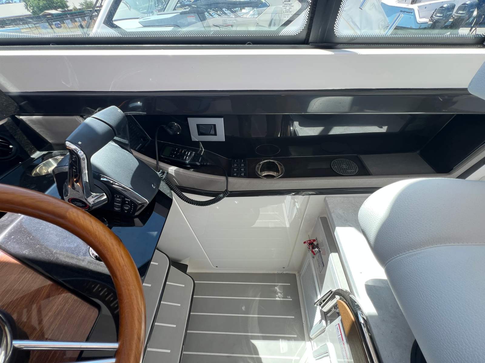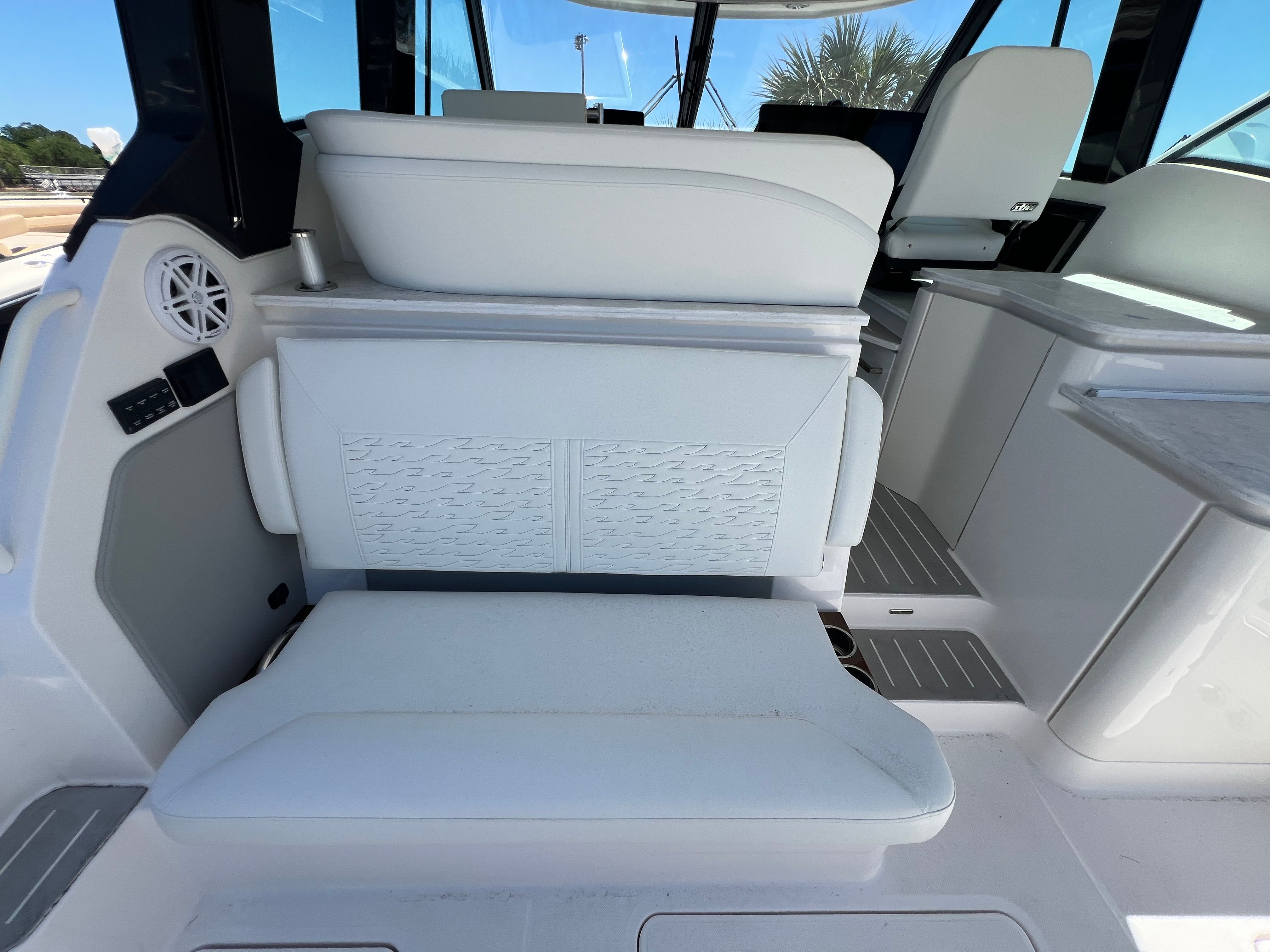 This yacht is loaded with premium features designed to elevate your boating lifestyle. The Silver Lake hull color and Crystal White bootline create a modern, elegant exterior that reflects the yacht’s high-end pedigree. Step aboard to discover the Lighthouse White signature exterior upholstery, which not only looks stunning but also offers durability and comfort. Inside, the Shoreline interior fabric and Lighthouse White/Shoreline upholstery provide a sophisticated and relaxing environment, perfect for entertaining or unwinding after a day on the water. The solid surface materials, both interior and exterior, are finished in LG Aurora Andria, adding a touch of luxury and easy maintenance to every surface.For those who value comfort in all conditions, the Cool Helm AC system ensures the captain and guests stay cool and refreshed, even on the hottest days. The bow thruster, integrated with Mercury JPO, allows for precise control and effortless docking, while the Seakeeper SK4.5 GYRO stabilizer keeps the yacht steady, reducing fatigue and enhancing enjoyment for everyone on board. Every detail of the Tiara Yachts 39 LE is thoughtfully designed to maximize comfort, convenience, and style.