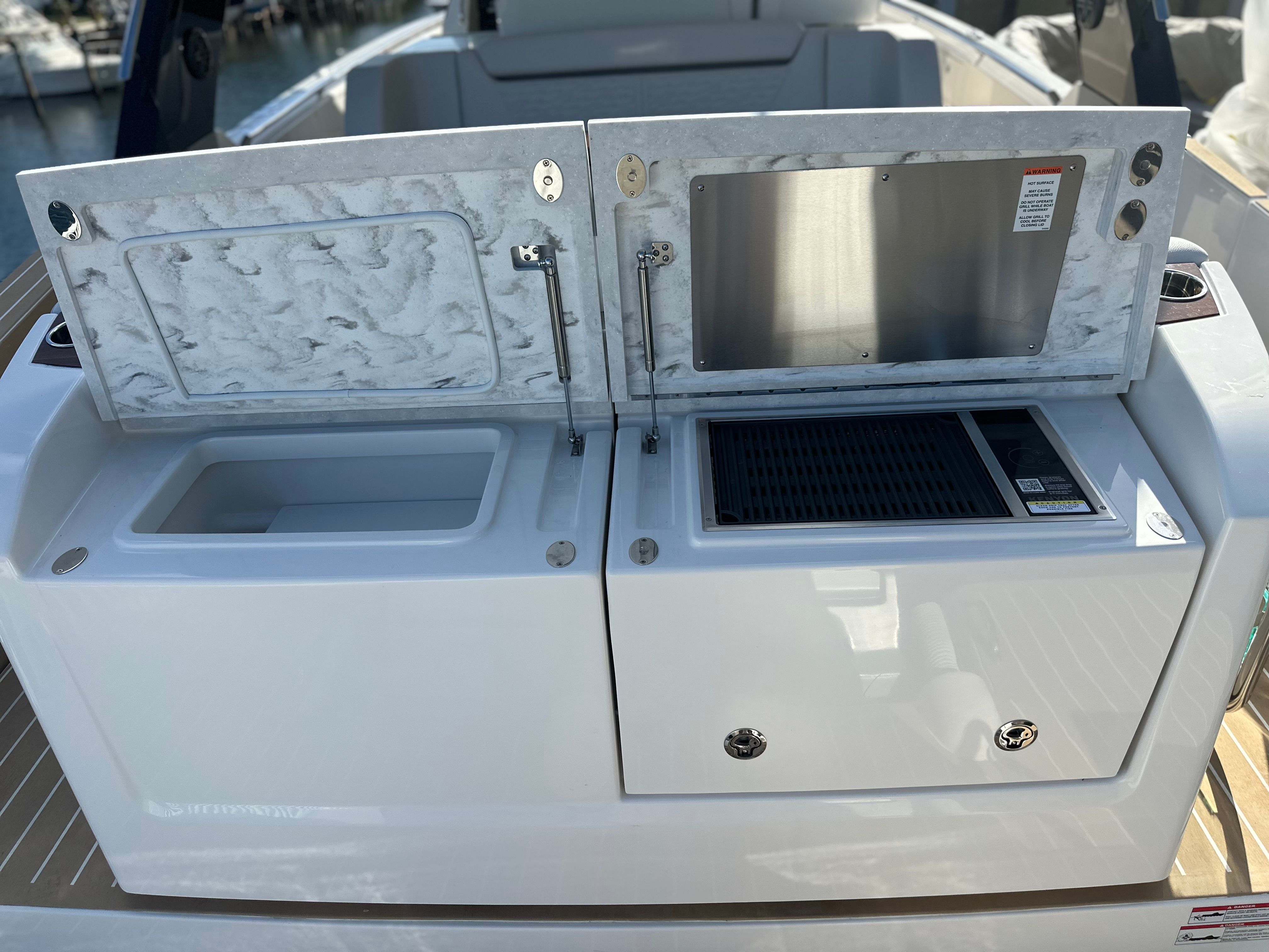 The 2026 Tiara Yachts 39 LS is packed with premium features that elevate your boating experience to new heights. The Seakeeper SK4.5 Gyro stabilizer ensures a smooth and comfortable journey by minimizing roll, even in choppy conditions. The head macerator system adds convenience and efficiency to onboard living, while the Cool Helm AC with heat keeps the helm area comfortable in any weather. For those who appreciate practicality, the washdown with raw water makes cleaning up after a day on the water quick and easy, and the oil changer for the generator simplifies routine maintenance.Anchoring is effortless with the all-chain windlass, providing reliable and secure holding power. Entertaining is a pleasure with the buffet lounge module, offering a stylish and functional space for socializing and dining. The drawer freezer with icemaker and the Lieu Stb fridge ensure your refreshments are always chilled and ready to serve, enhancing the onboard experience for you and your guests.