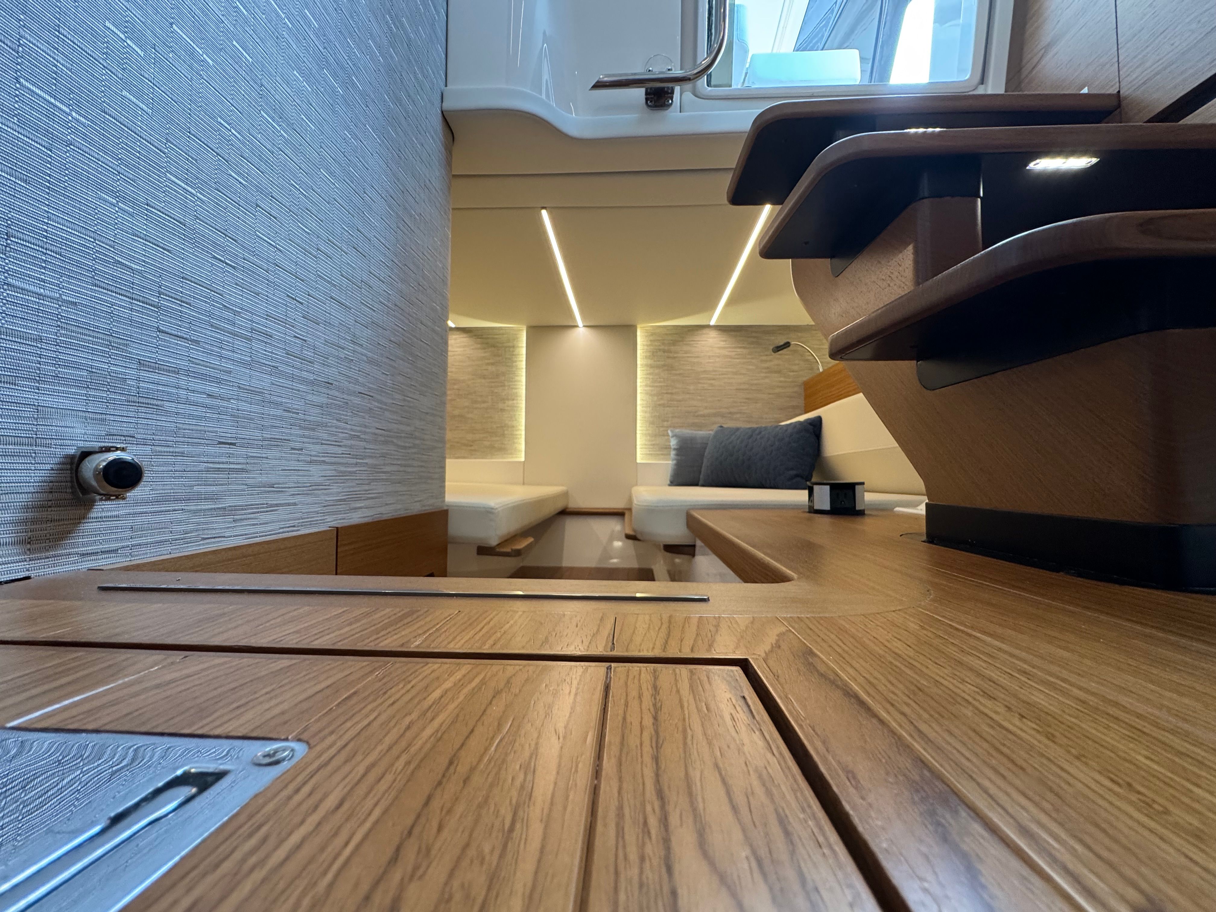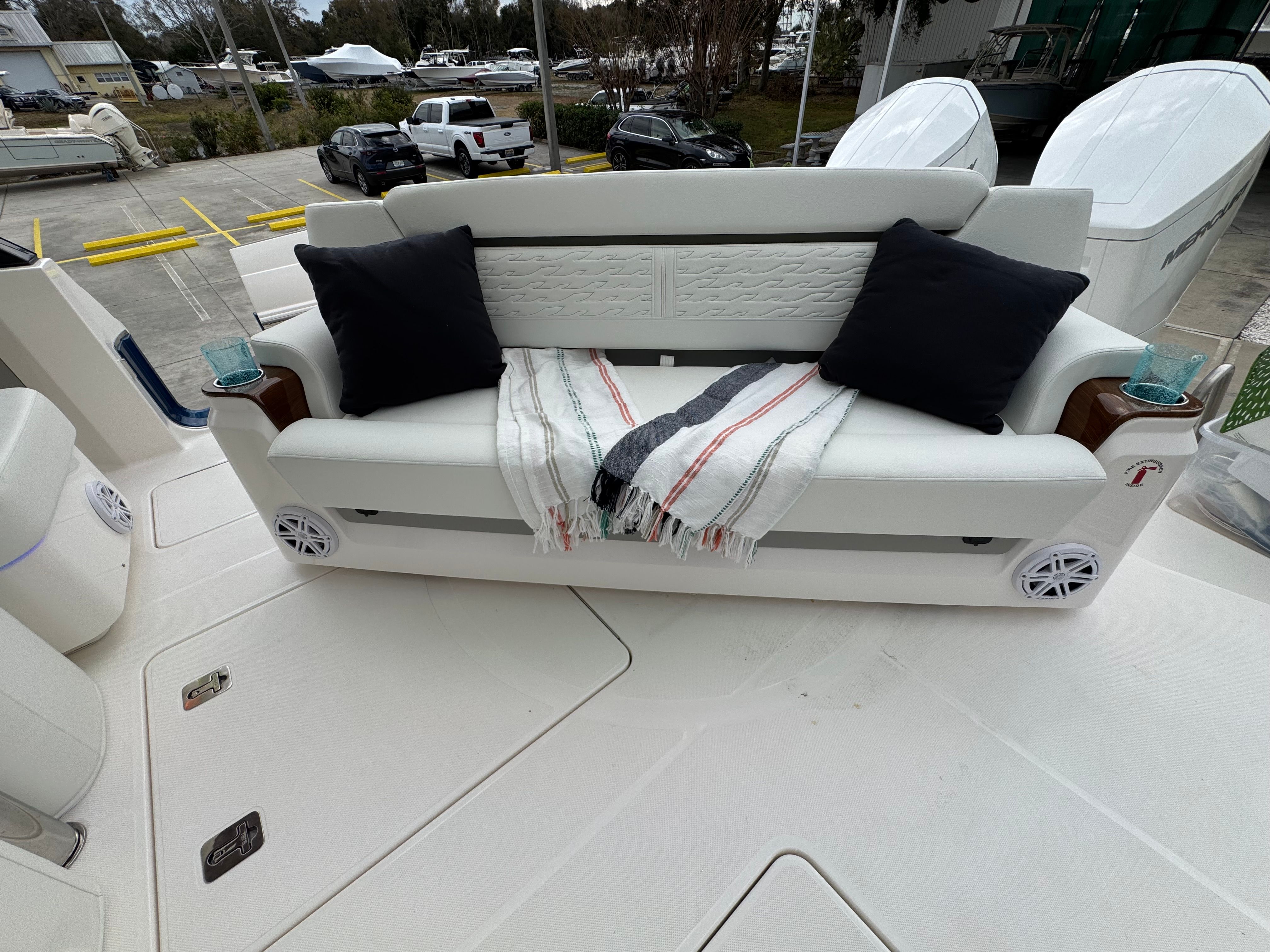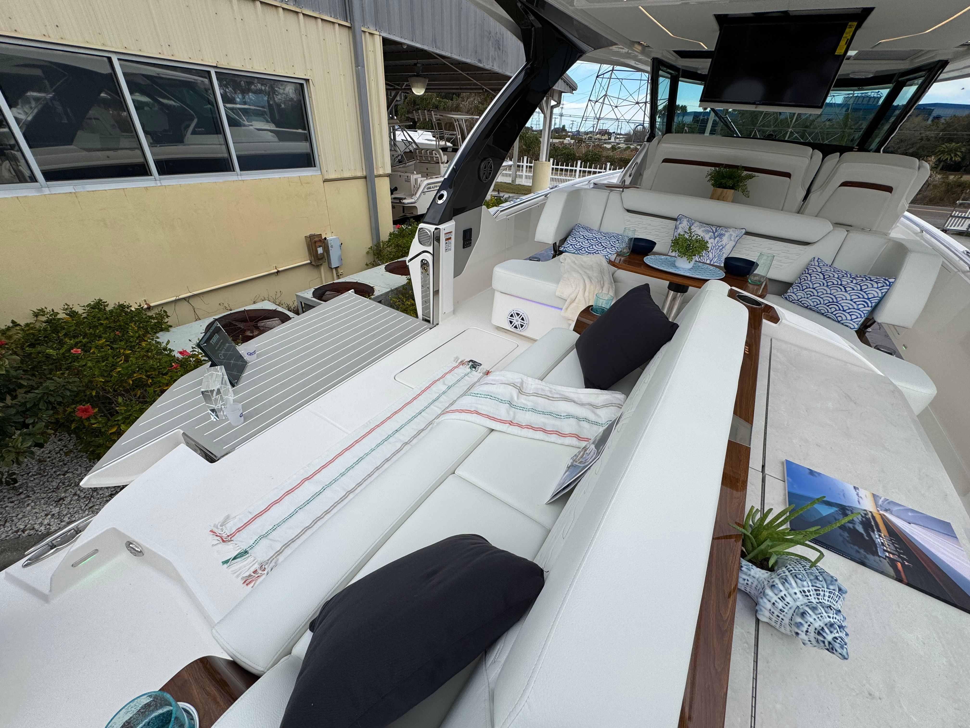 The Tiara Yachts 39 LS comes equipped with a suite of premium features designed to enhance your boating lifestyle. The Seakeeper SK4 GYRO stabilizer ensures a smooth and comfortable ride by minimizing roll, even in choppy conditions. The head macerator system offers convenience and efficiency, while the cool helm AC with heat keeps the captain and guests comfortable in any weather. Maintenance is made easy with the oil changer for the generator, and the all-chain windlass provides reliable and effortless anchoring.For those who love to entertain, the buffet lounge module creates a perfect space for socializing and dining. The forward manual Mediterranean-style sunshade offers protection from the sun, allowing you to relax in comfort during long days on the water. The starboard fridge ensures that refreshments are always within reach, adding to the overall enjoyment of your time aboard.