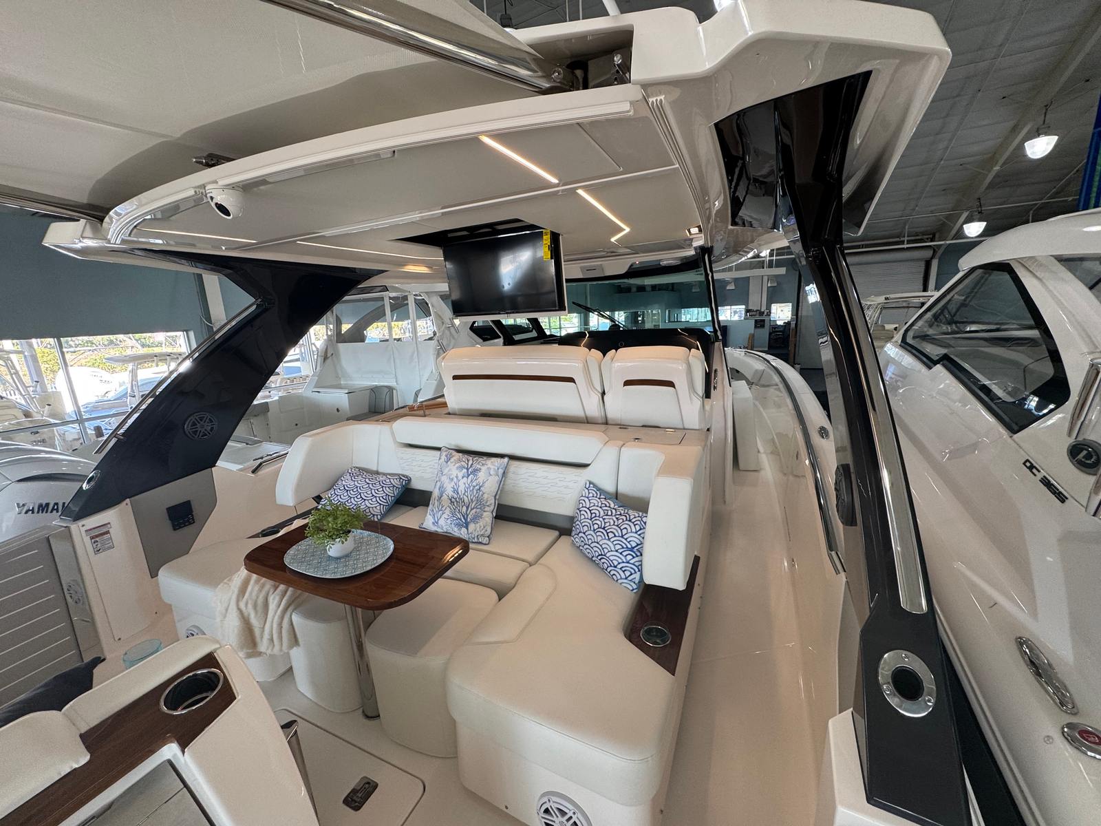 The versatility of the Tiara Yachts 39 LS makes it the perfect choice for a wide range of boating activities. For family outings, the spacious deck and comfortable seating create an inviting environment for relaxation, sunbathing, and shared meals. The yacht’s stability and performance make it ideal for exploring new destinations, whether you are embarking on a weekend getaway or a longer coastal adventure.For those who enjoy entertaining, the buffet lounge module and ample seating provide the perfect setting for social gatherings, cocktail parties, or sunset cruises. The Mediterranean-style sunshade offers a cool retreat from the sun, allowing guests to enjoy the outdoors in comfort. Whether you are hosting friends, spending quality time with family, or seeking a private escape, the Tiara Yachts 39 LS adapts to your needs and exceeds your expectations.
