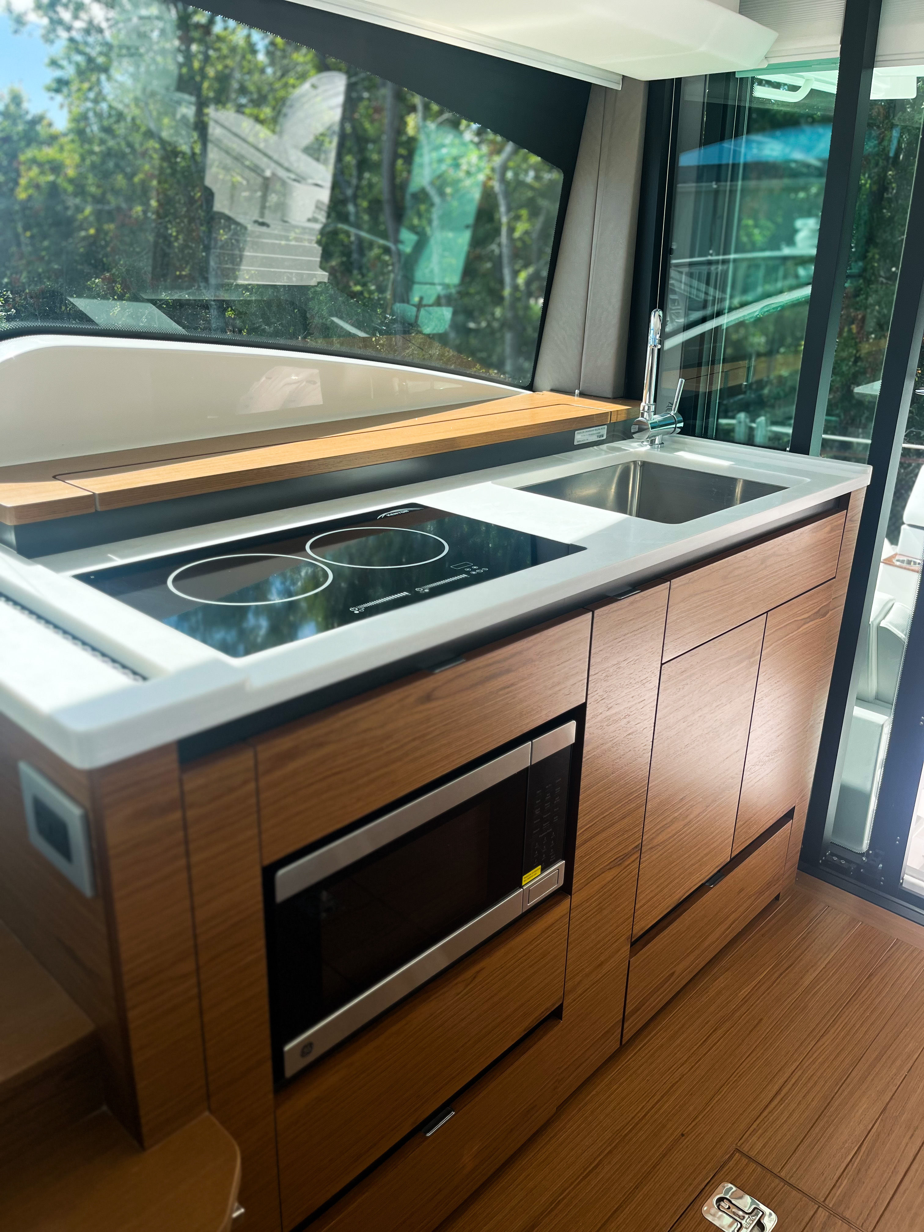 The Tiara Yachts 43 LE is as practical as it is luxurious. Its thoughtful design includes ample storage for gear, supplies, and personal items, ensuring everything you need is always within reach. Docking and maneuvering are made easier thanks to the responsive handling provided by the twin Mercury engines. The yacht's fuel-efficient performance allows you to spend more time on the water and less time refueling, while the low-maintenance synthetic teak decking keeps the vessel looking beautiful with minimal effort.The inclusion of features like the oil changer for the generator and the ElectroSea Strainer further simplifies maintenance, so you can focus on enjoying your time onboard. Whether you are planning a day trip, a weekend adventure, or an extended voyage, the 43 LE is equipped to handle it all with ease and style.