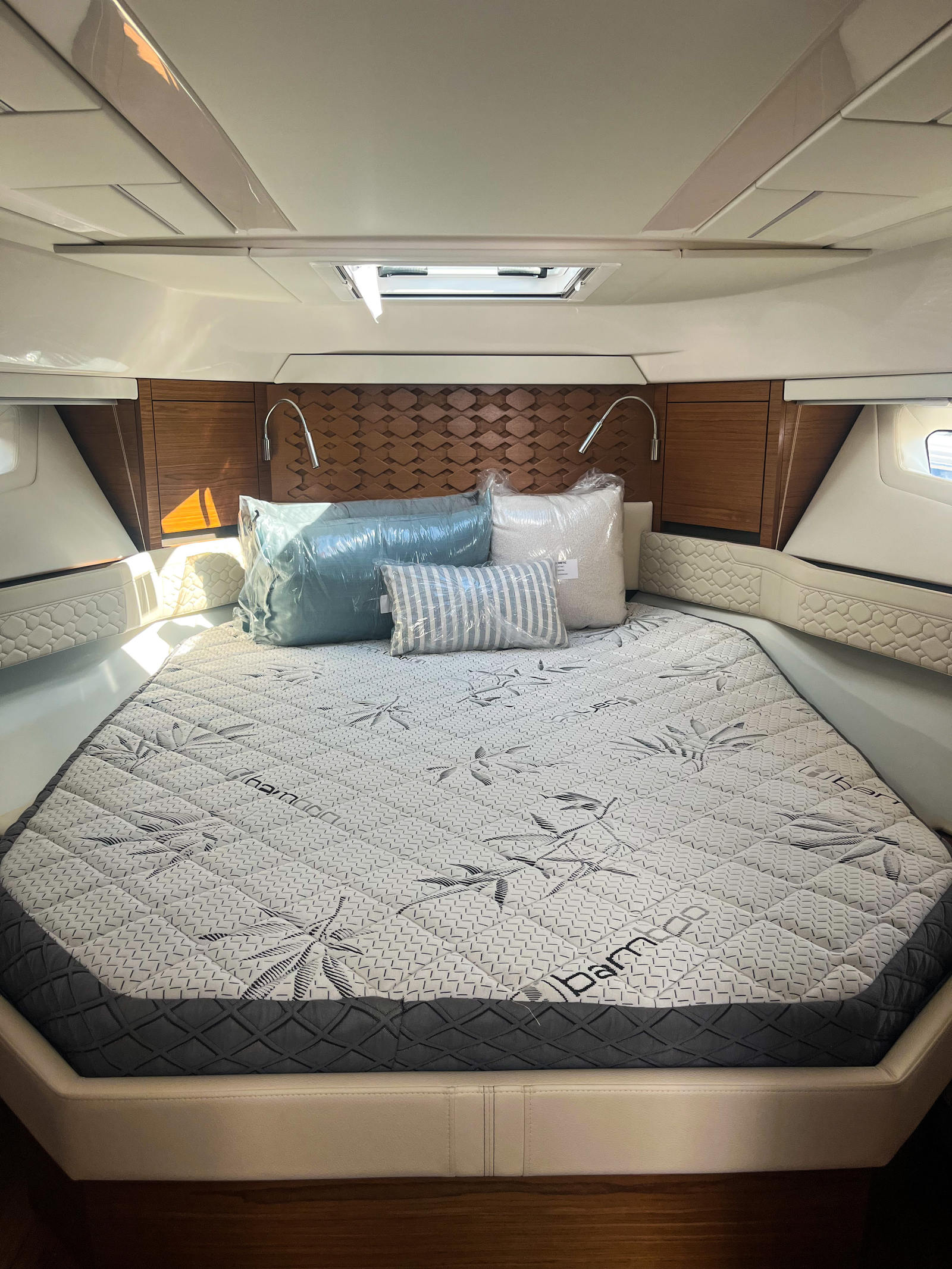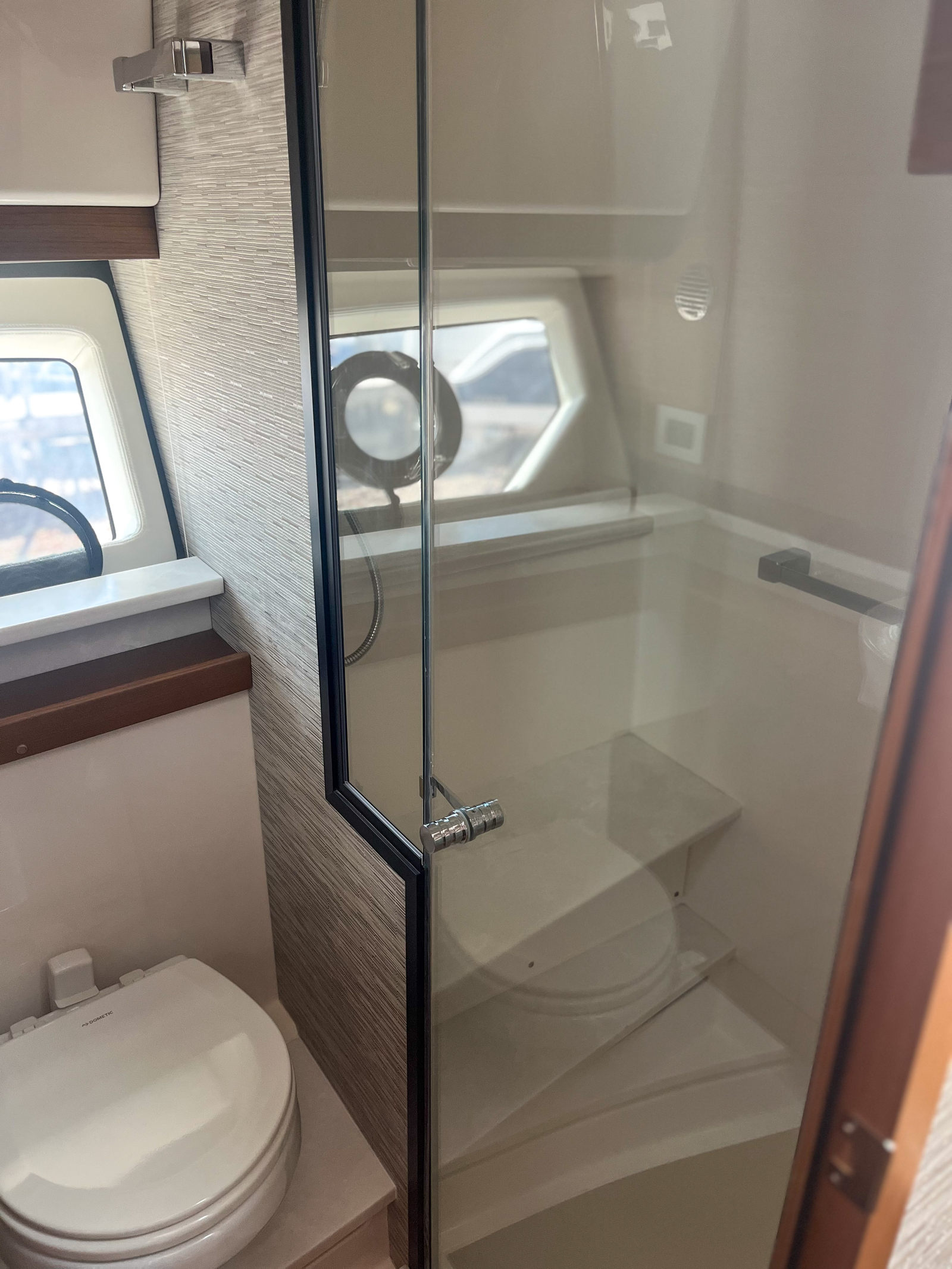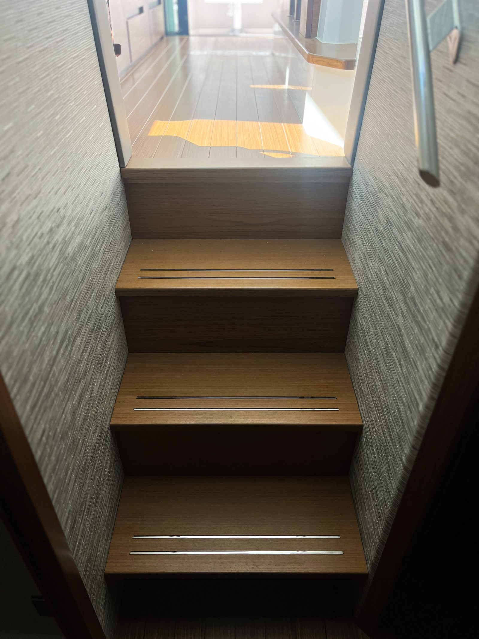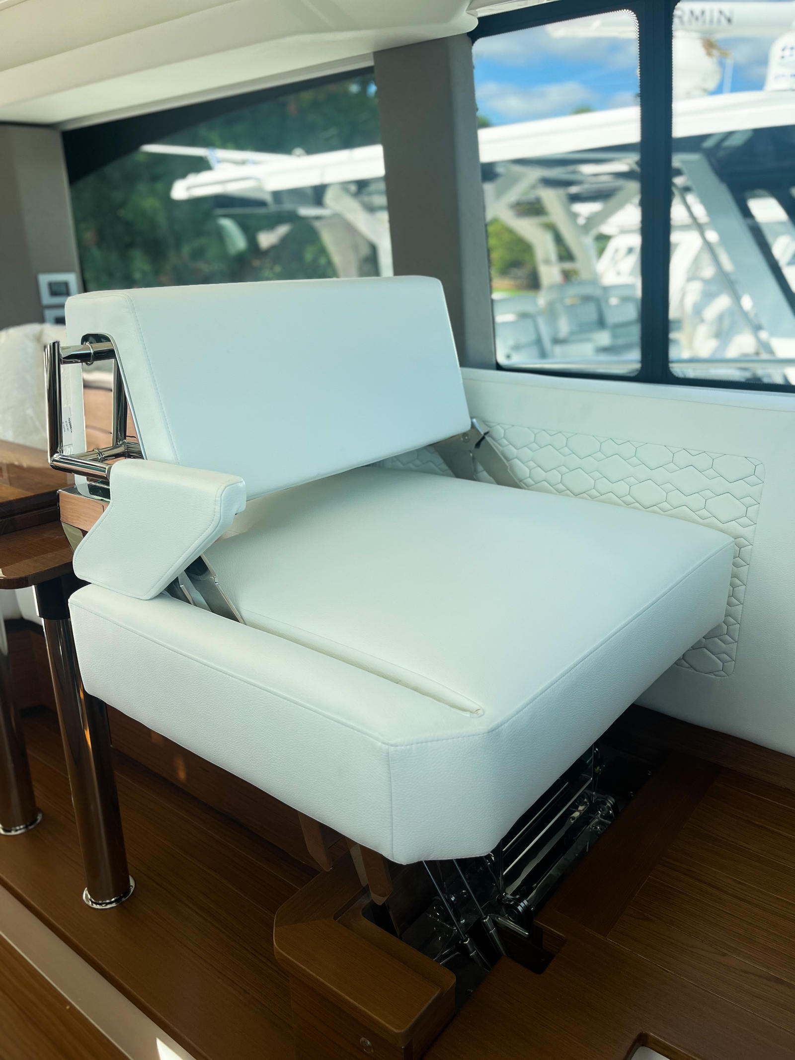 - Synthetic Teak Decking on Port Side Terrace and Accents Throughout. Platinum Grey with White Lines