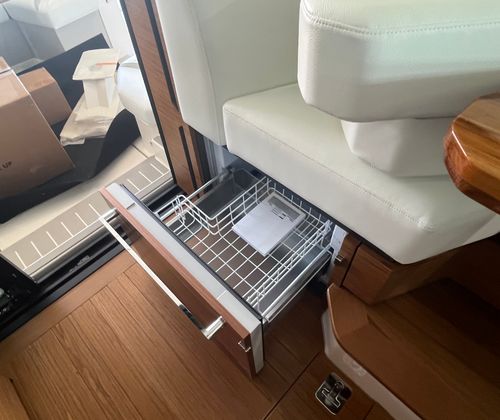 The Tiara Yachts 43 LE is designed with practicality in mind, making ownership as enjoyable as the time you spend on the water. The yacht’s length of 43.5 feet provides ample space for storage, allowing you to bring along all your essentials for extended trips or day outings. Docking is made easier with the advanced joystick piloting system, giving you precise control in any marina or harbor. The Mercury V12 engines are engineered for fuel efficiency, helping you maximize your time on the water without frequent refueling stops.Maintenance is simplified thanks to the oil changer for the generator, reducing downtime and keeping your yacht in peak condition. The electric fold-down antennas and navigation light streamline the yacht’s profile for storage and transport, while the solid surface finishes are easy to clean and maintain. Every detail of the Tiara Yachts 43 LE is designed to enhance your boating experience, making it a pleasure to own and operate.