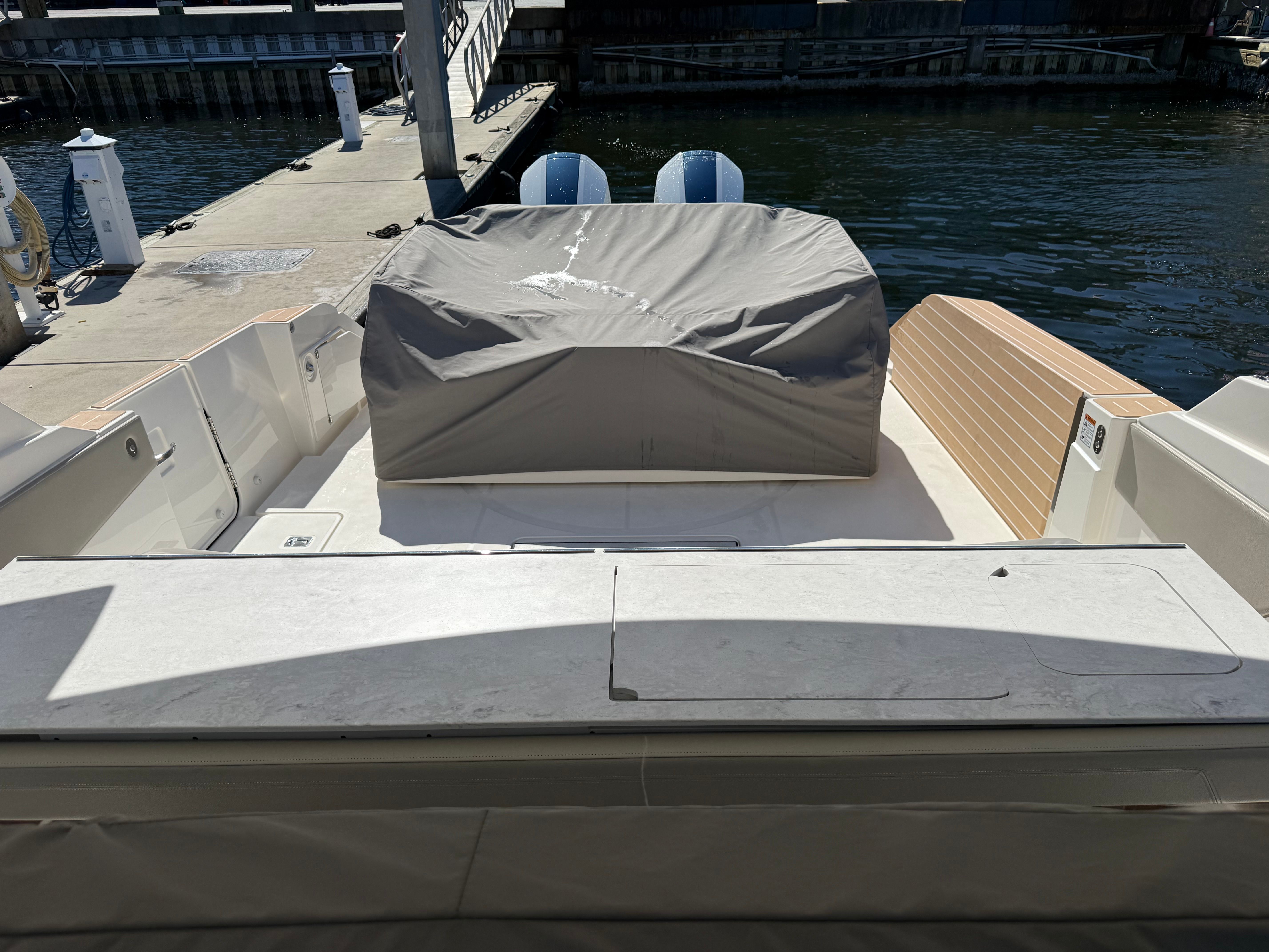 yacht with no wait time. Powered by twin Mercury 600hp V12 outboards with less than 80 hours, this vessel offers