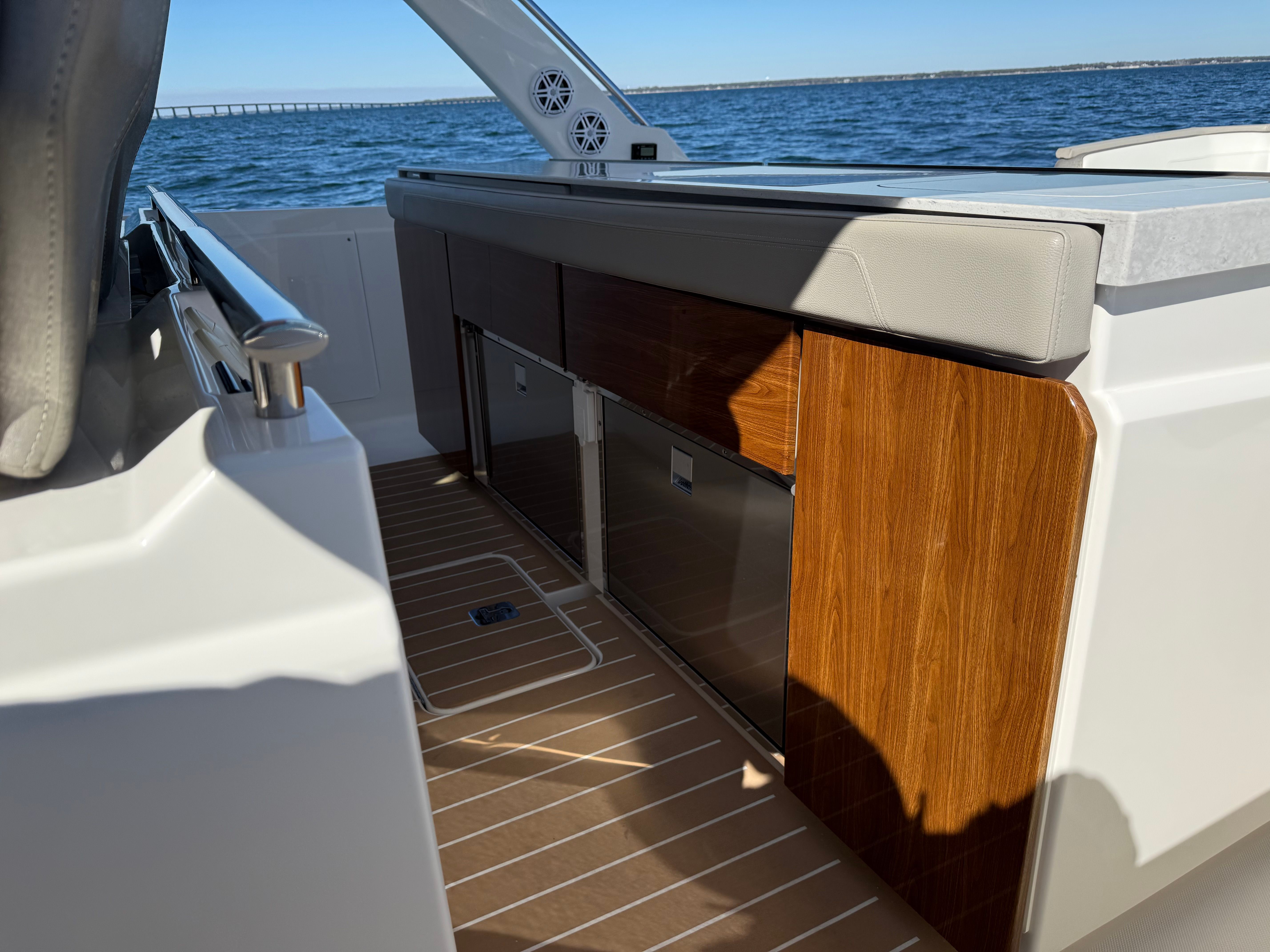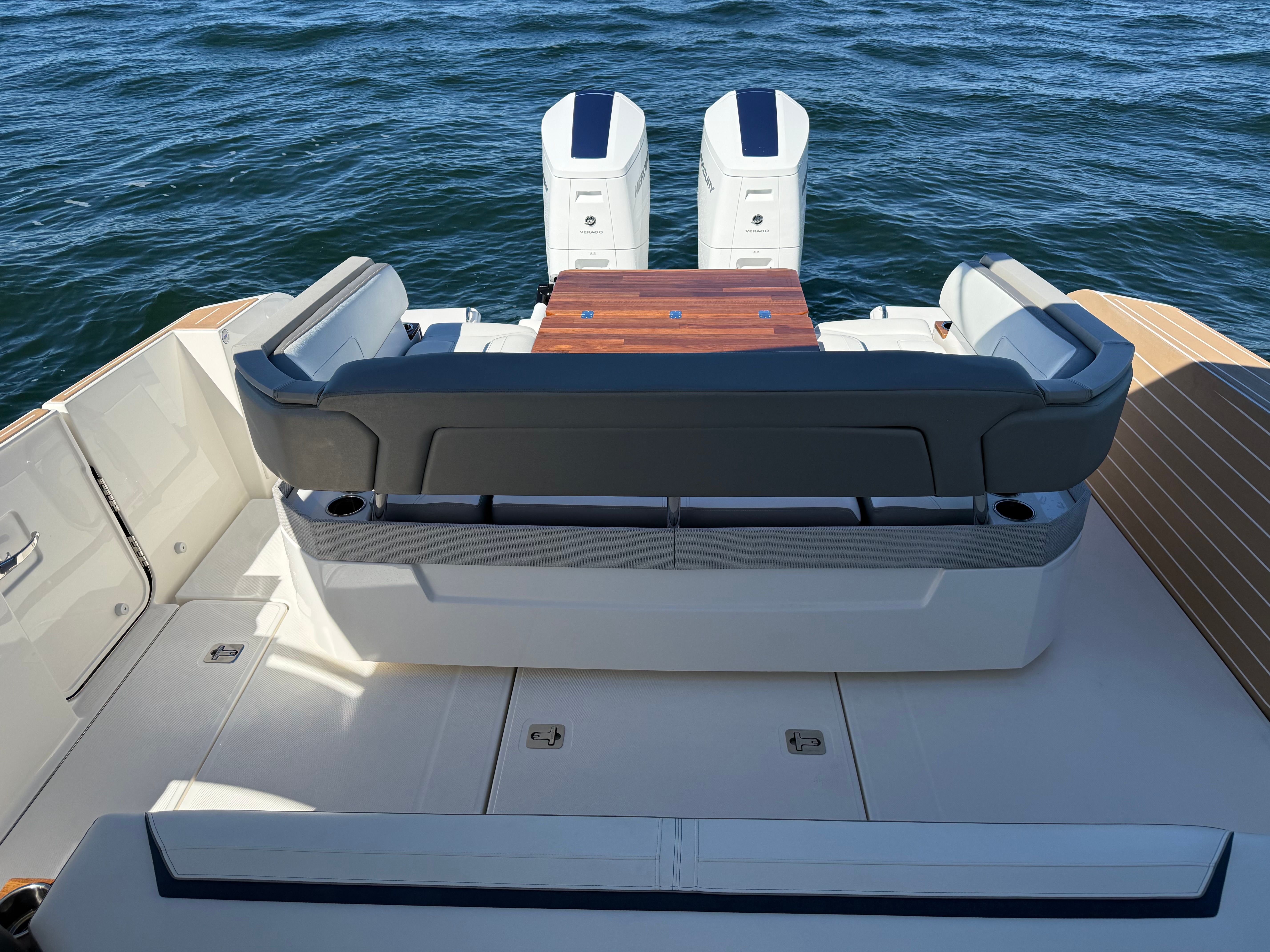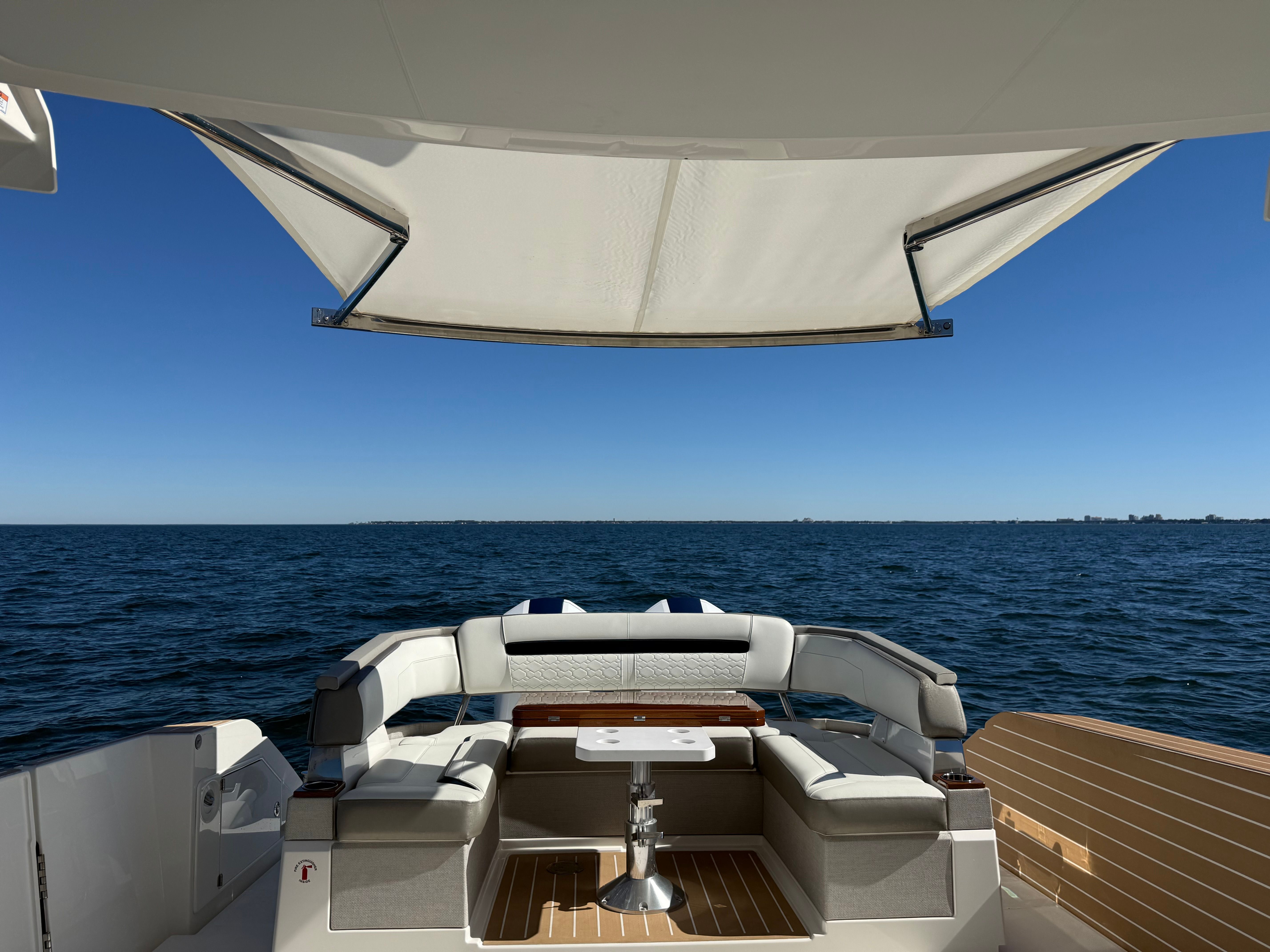 indoor/outdoor entertaining spaces—making it equally well suited for cruising, day boating, and hosting guests.