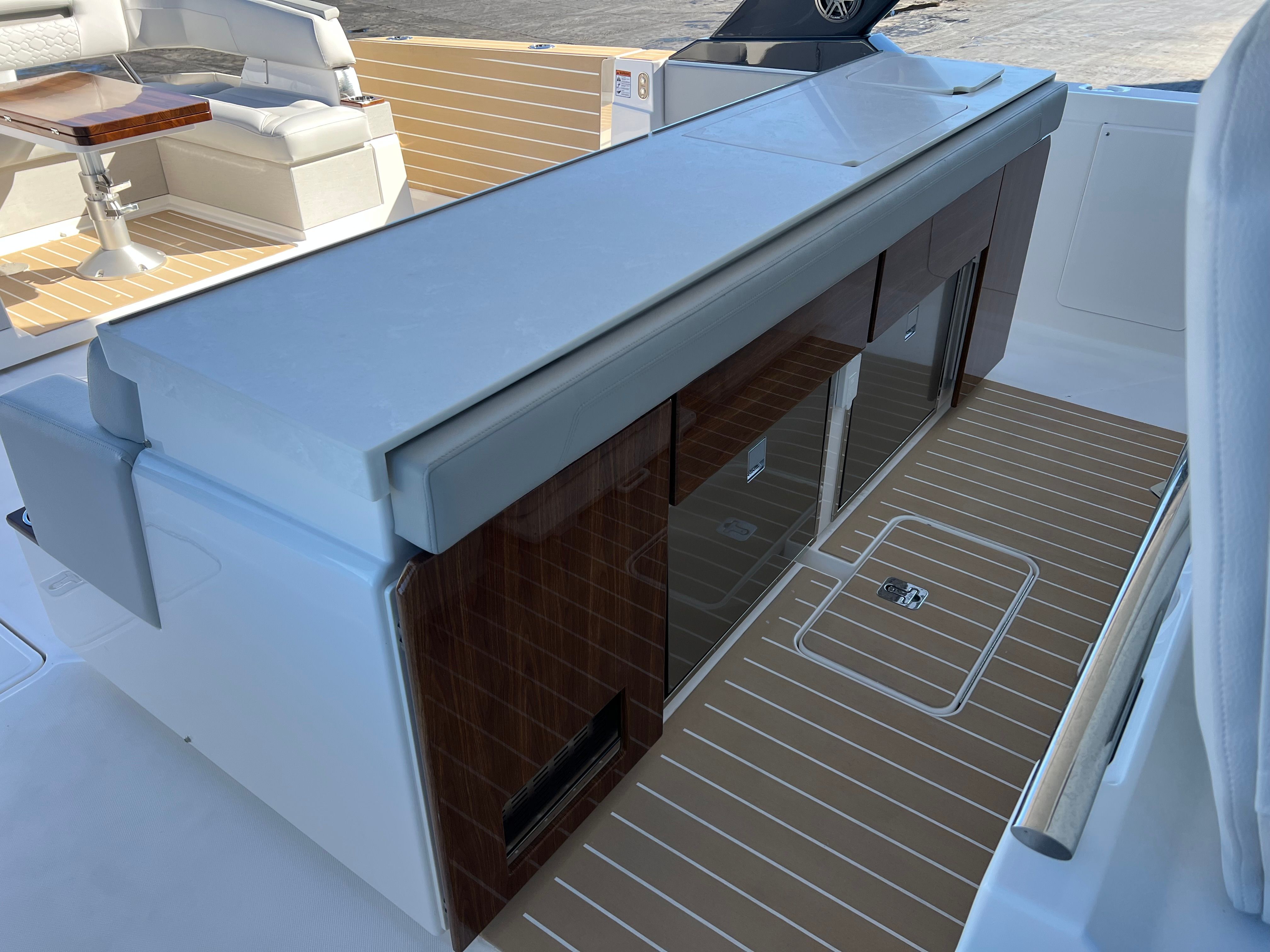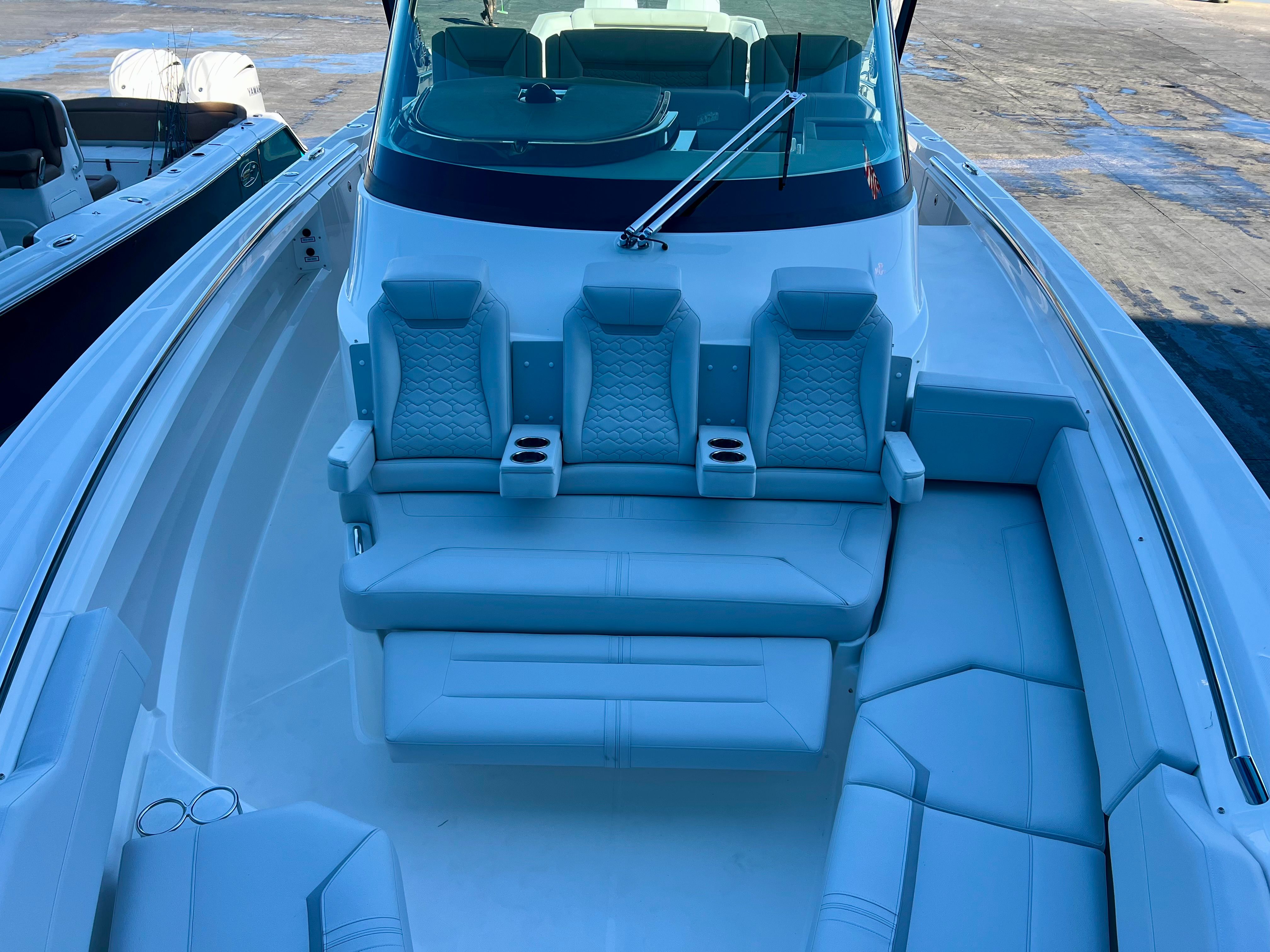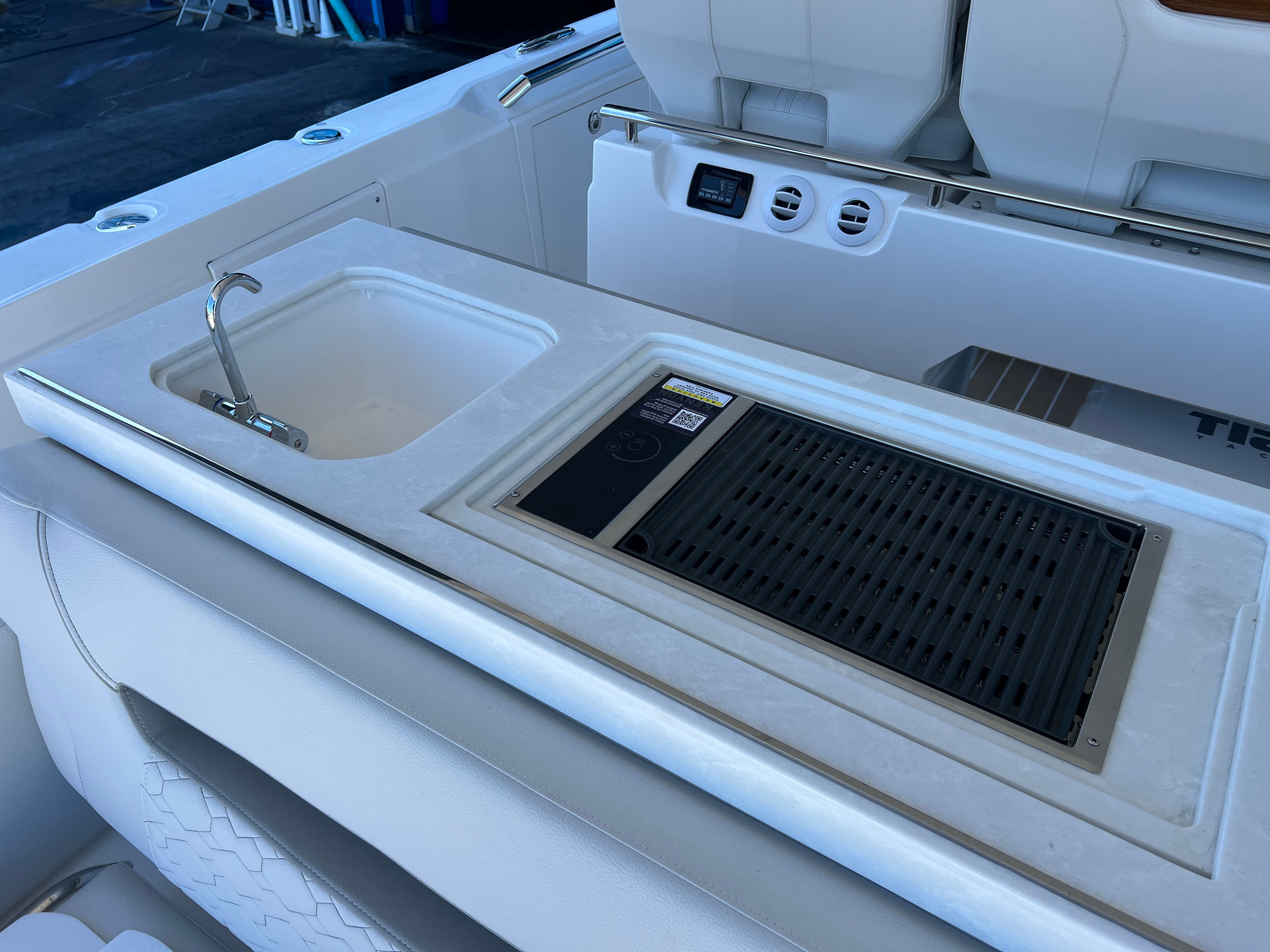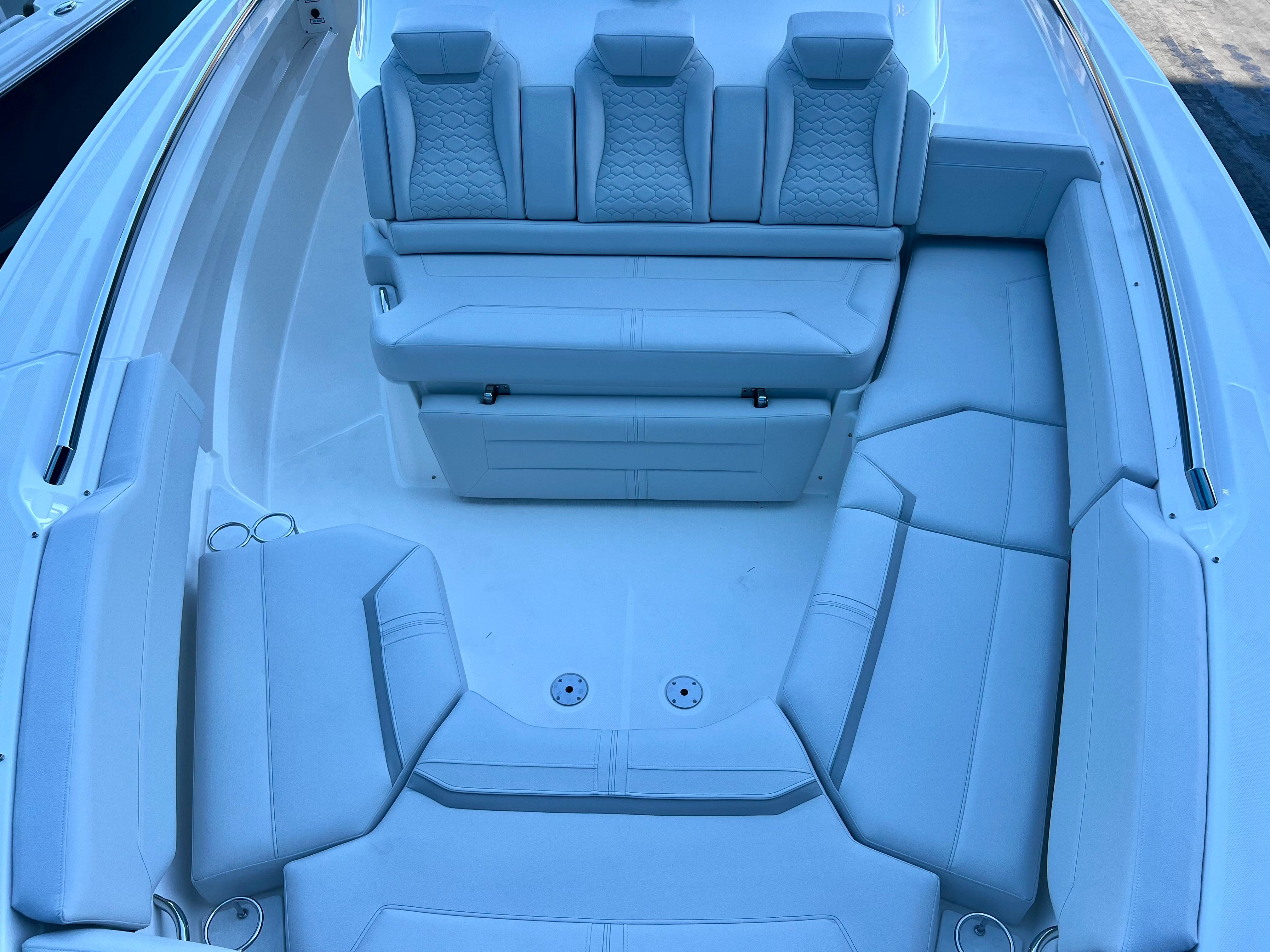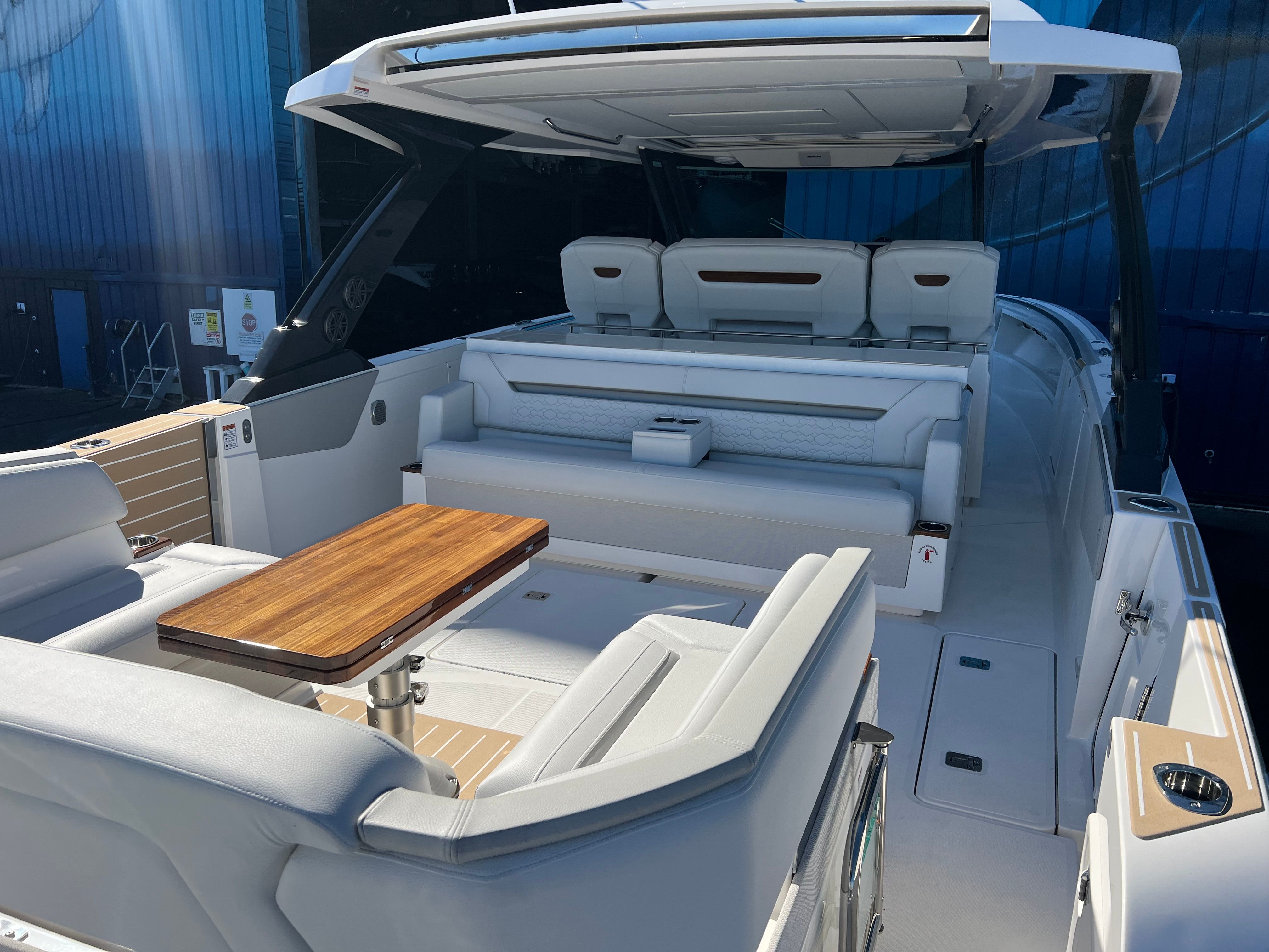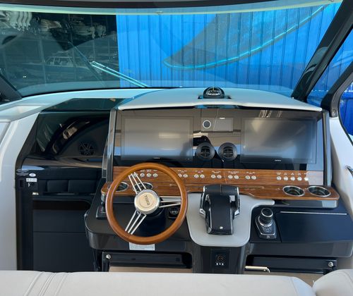The Tiara Yachts 43 LS is as practical as it is luxurious. The synthetic teak deck offers the beauty of traditional teak with the added benefit of easy maintenance and durability. The yacht’s layout is designed for convenience, with ample storage for gear, water toys, and personal items. Docking is made easier with the intuitive joystick piloting system, allowing for precise maneuvering in tight spaces.Fuel efficiency is enhanced by the advanced Mercury V12 engines, allowing you to enjoy longer trips with fewer stops. The integration of modern navigation and communication systems ensures you are always in control, whether you are exploring new destinations or returning to your favorite harbor. The rod holders in the gunnels make this yacht a great choice for fishing enthusiasts, while the lounge module and sunshade cater to those who prefer relaxation and leisure.