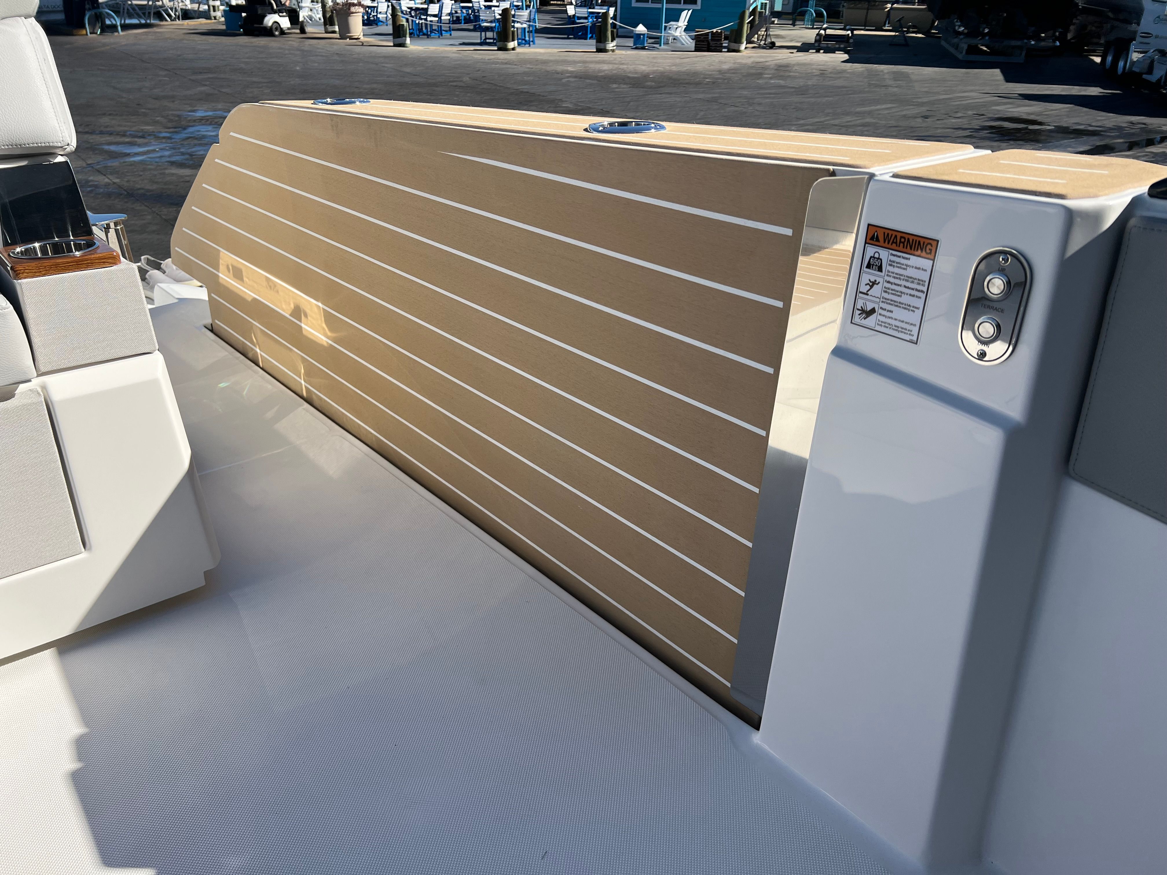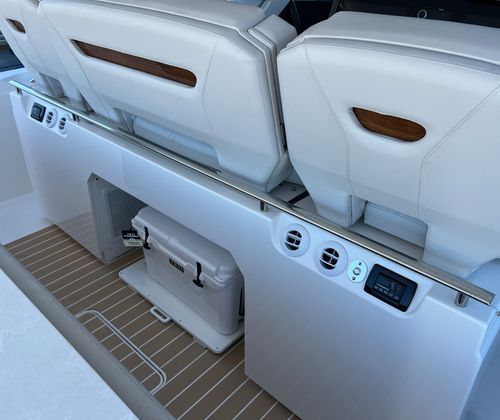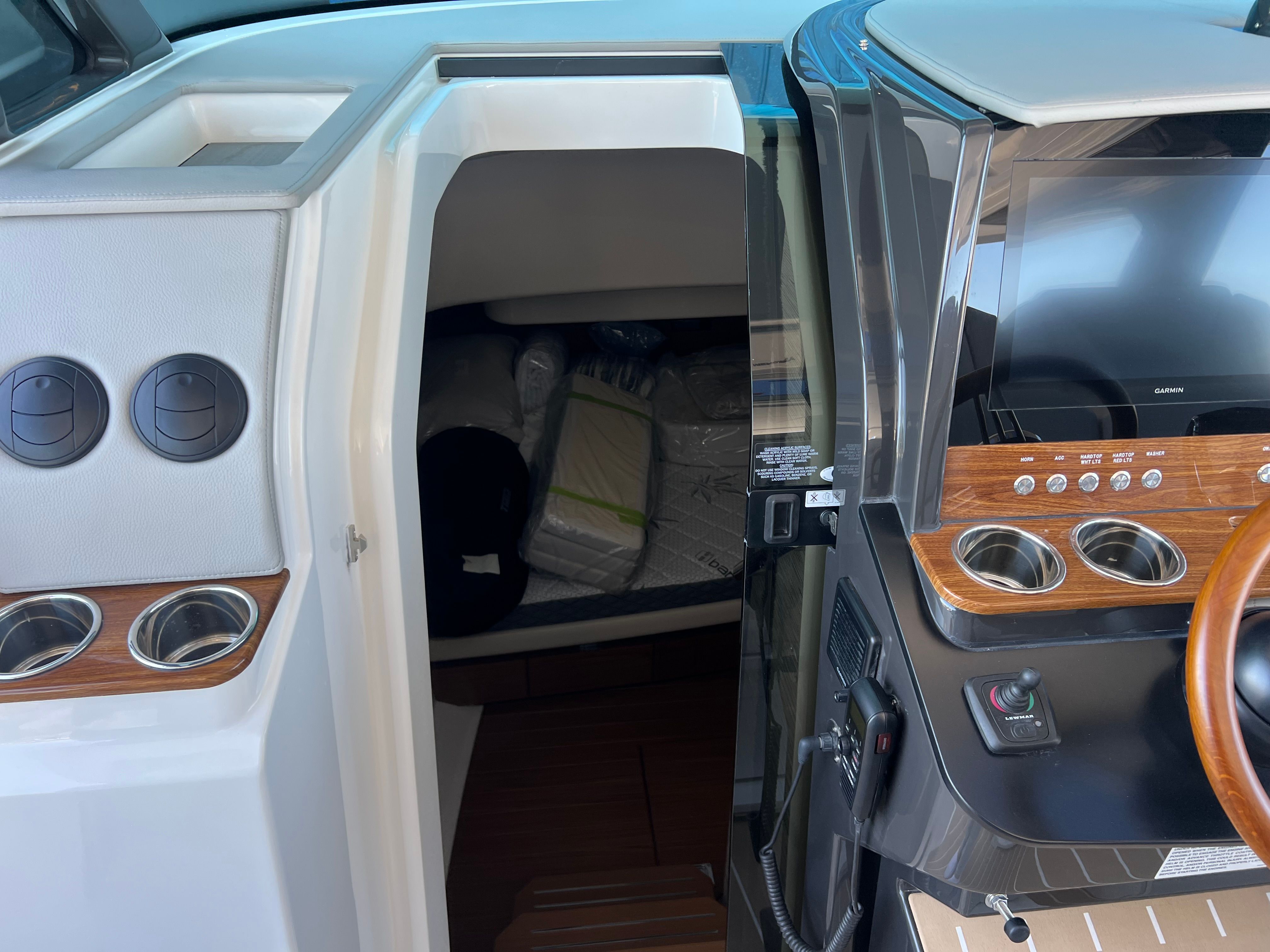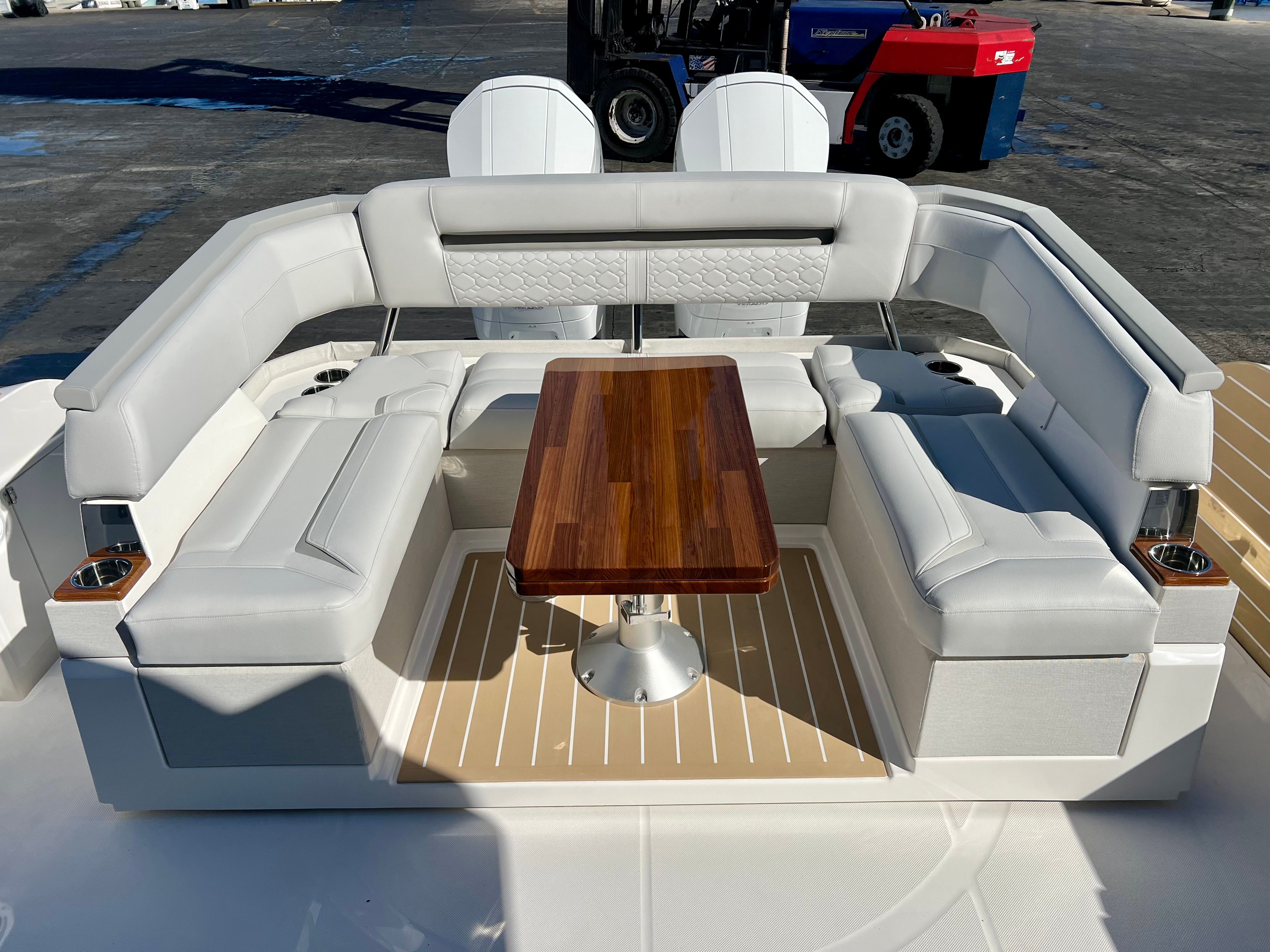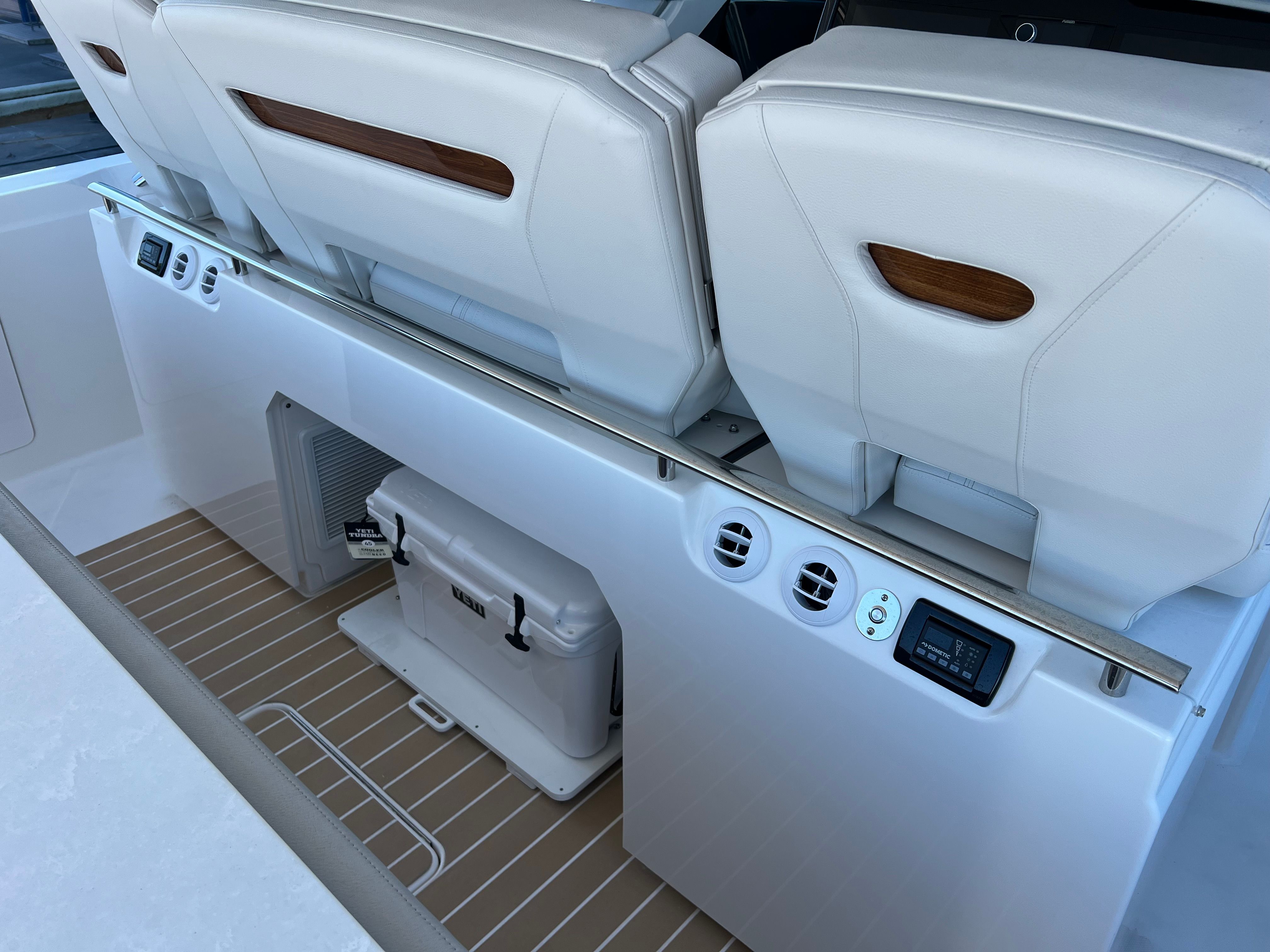 The Tiara Yachts 43 LS is as practical as it is luxurious. The synthetic teak deck offers the beauty of traditional teak with the added benefit of easy maintenance and durability. The yacht’s layout is designed for convenience, with ample storage for gear, water toys, and personal items. Docking is made easier with the intuitive joystick piloting system, allowing for precise maneuvering in tight spaces.Fuel efficiency is enhanced by the advanced Mercury V12 engines, allowing you to enjoy longer trips with fewer stops. The integration of modern navigation and communication systems ensures you are always in control, whether you are exploring new destinations or returning to your favorite harbor. The rod holders in the gunnels make this yacht a great choice for fishing enthusiasts, while the lounge module and sunshade cater to those who prefer relaxation and leisure.