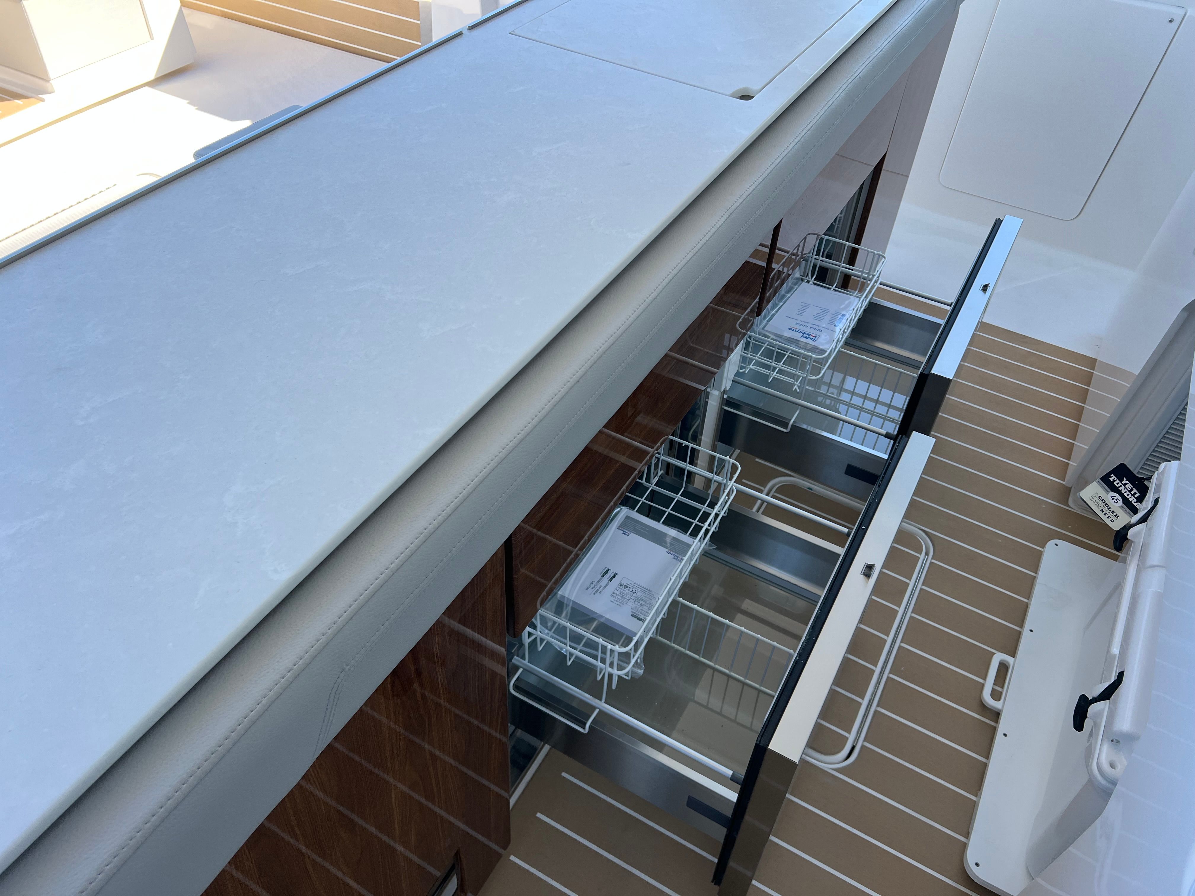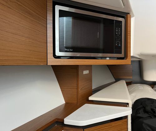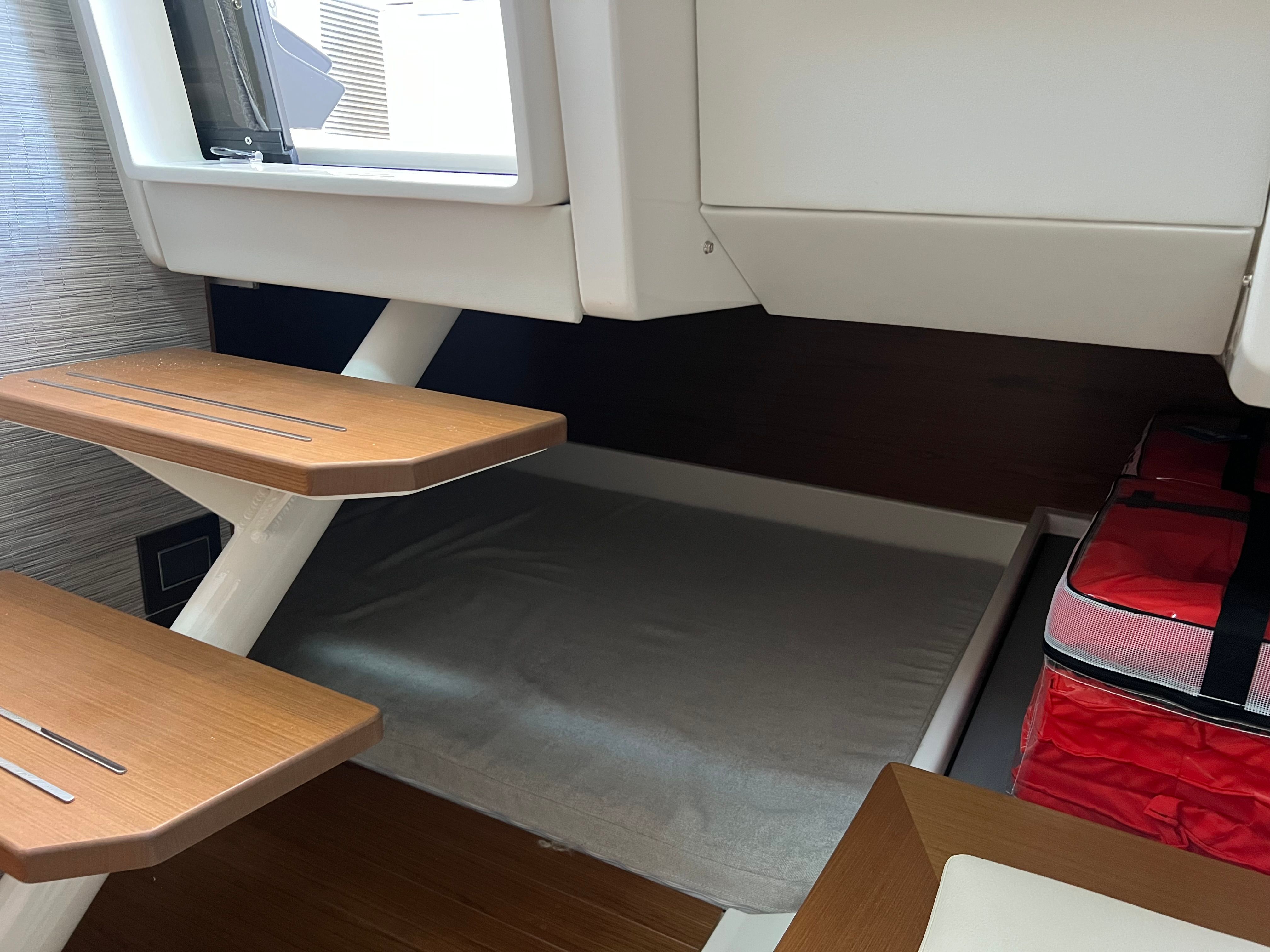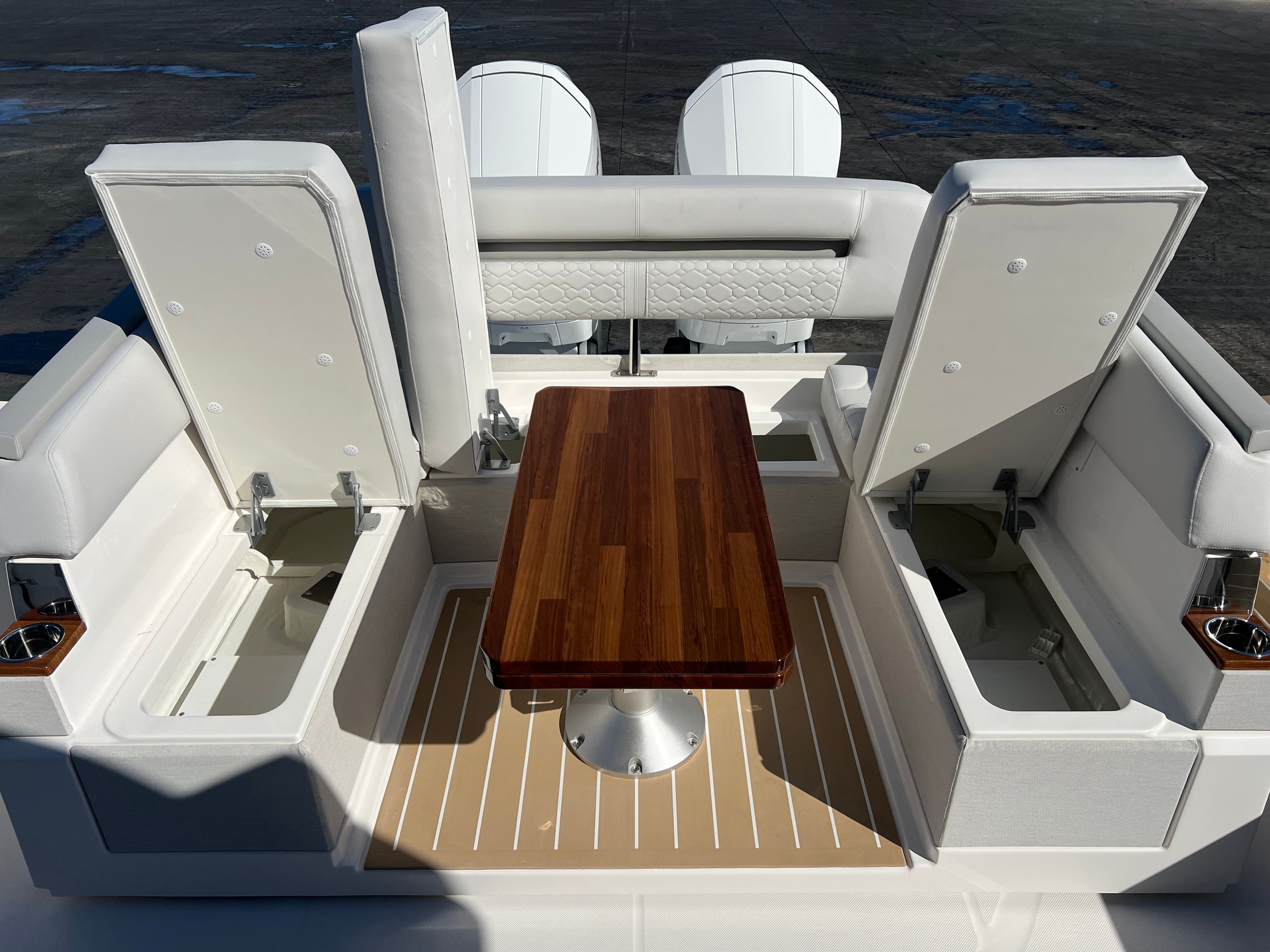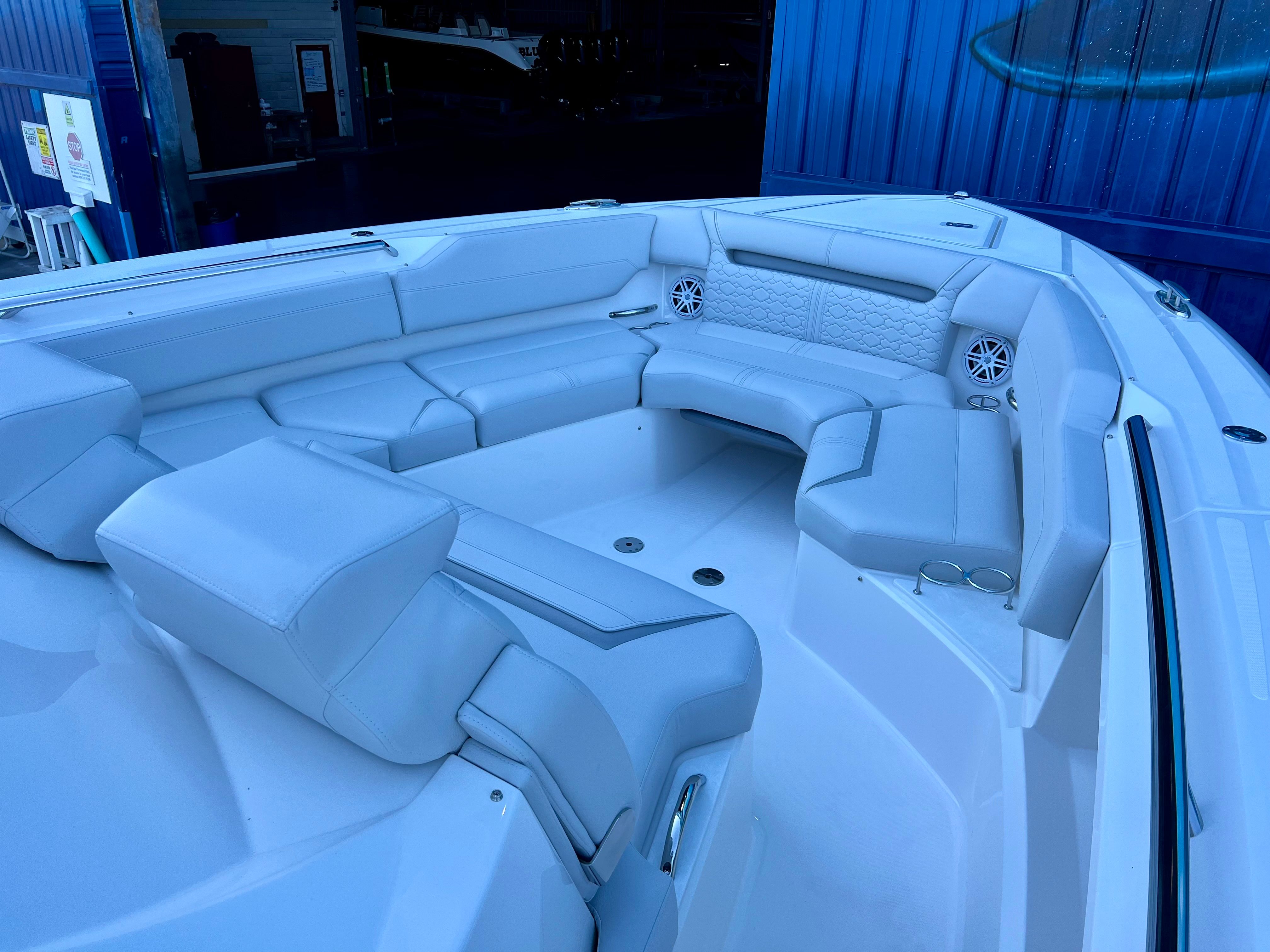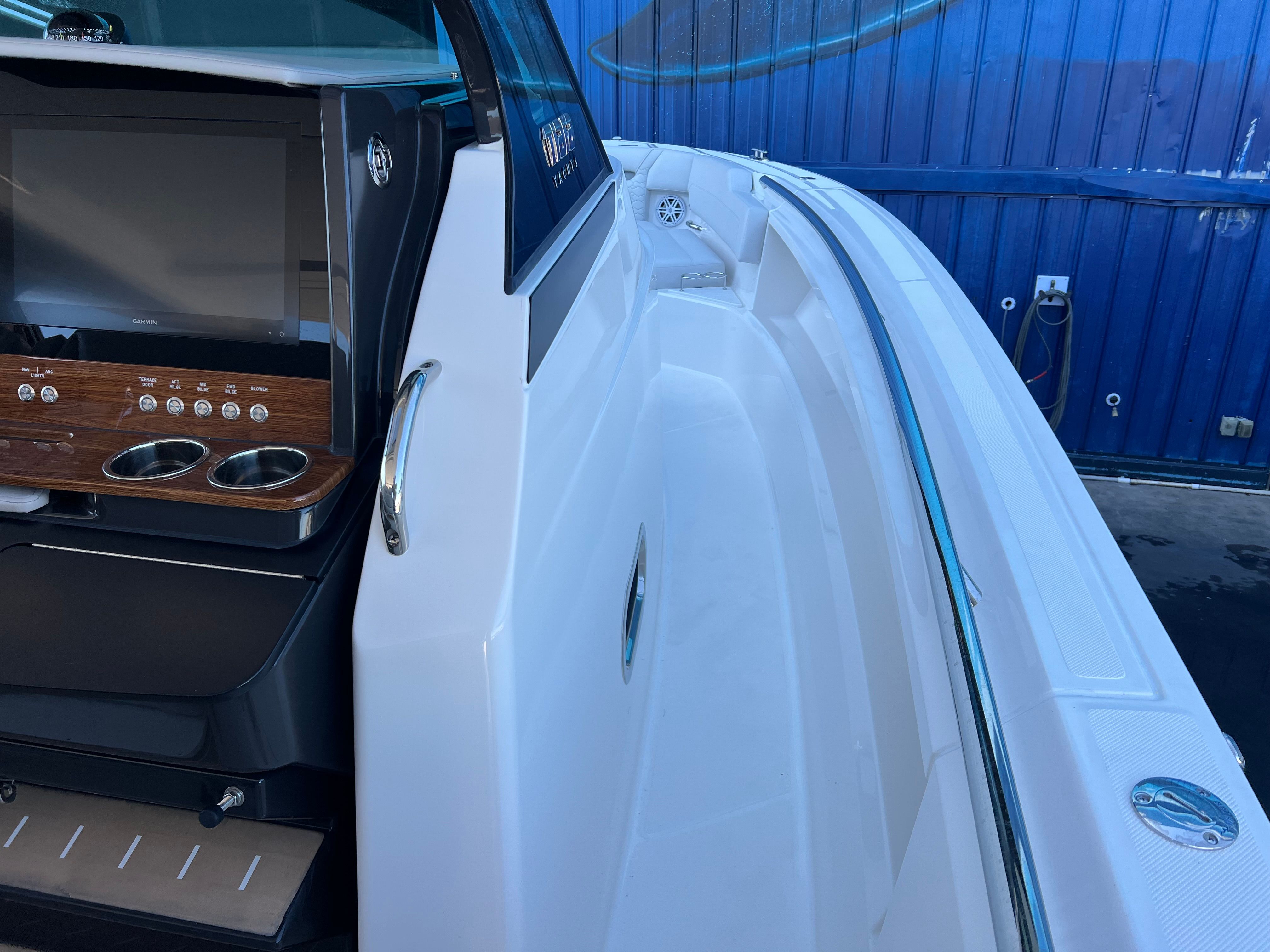 The Tiara Yachts 43 LS is as practical as it is luxurious. The synthetic teak deck offers the beauty of traditional teak with the added benefit of easy maintenance and durability. The yacht’s layout is designed for convenience, with ample storage for gear, water toys, and personal items. Docking is made easier with the intuitive joystick piloting system, allowing for precise maneuvering in tight spaces.Fuel efficiency is enhanced by the advanced Mercury V12 engines, allowing you to enjoy longer trips with fewer stops. The integration of modern navigation and communication systems ensures you are always in control, whether you are exploring new destinations or returning to your favorite harbor. The rod holders in the gunnels make this yacht a great choice for fishing enthusiasts, while the lounge module and sunshade cater to those who prefer relaxation and leisure.