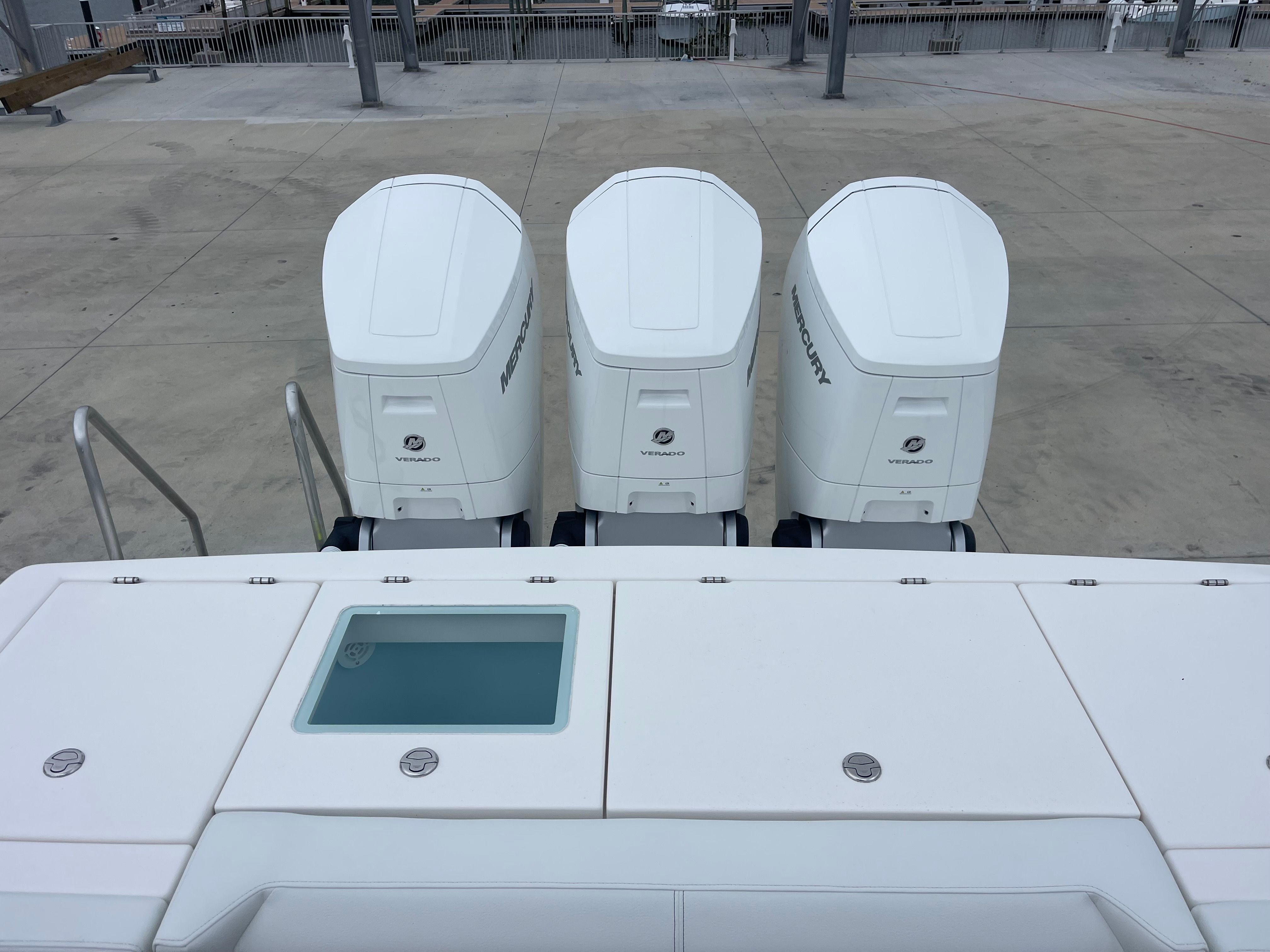 At the heart of the Tiara Yachts 48 LS is a powerhouse trio of engines. Equipped with three Mercury 600 V12 JPO engines, this yacht boasts a combined 1800 horsepower, delivering exhilarating speed and smooth handling. The advanced Mercury JPO (Joystick Piloting for Outboards) system, integrated with a bow thruster, ensures precise maneuverability, making docking and navigating tight spaces effortless. Whether you’re cruising along the coastline or venturing into open waters, the 48 LS offers a thrilling yet controlled ride, setting a new standard for performance in the luxury yacht segment.