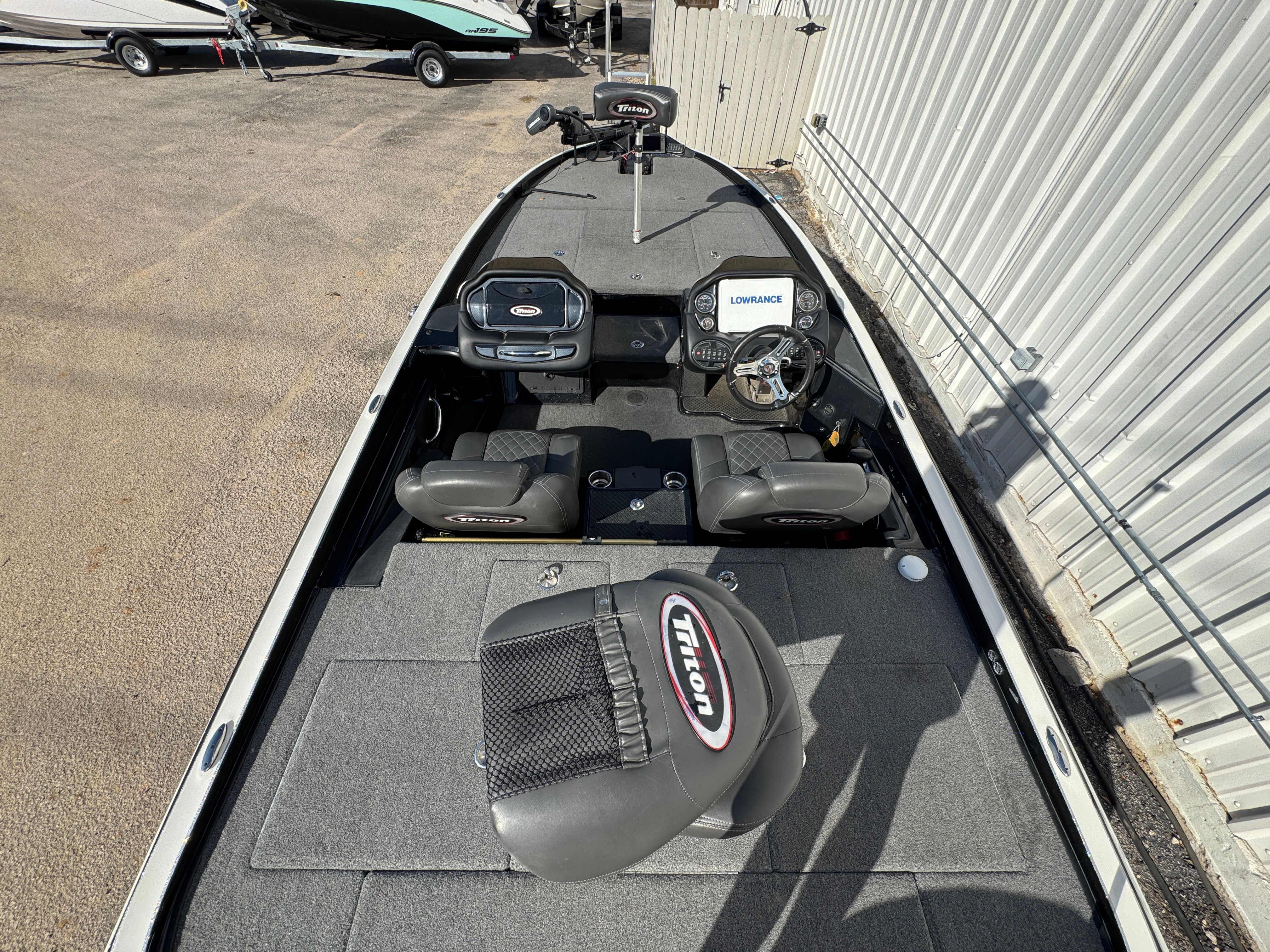 This Triton boat for sale is equipped with a range of special features designed to enhance your fishing experience and make every outing more enjoyable. The tandem axle trailer provides easy transport and stability, ensuring your boat is secure whether you’re on the road or at the ramp. The Hot Foot throttle system offers hands-free acceleration, giving you greater control and comfort during high-speed runs.For anglers who demand the latest in fishing technology, the Lowrance Active Target and Lowrance Electronics Package deliver unparalleled sonar and navigation capabilities. These advanced systems help you locate fish with precision and monitor underwater conditions in real time. The Lowrance Ghost Trolling Motor offers quiet, efficient propulsion, allowing you to maneuver stealthily and maintain your position without disturbing the fish.Additional features include a Power Pole for quick and secure anchoring, and an Atlas Jack Plate for optimal engine height adjustment. These enhancements contribute to the boat’s versatility and make it easier to adapt to changing conditions on the water.