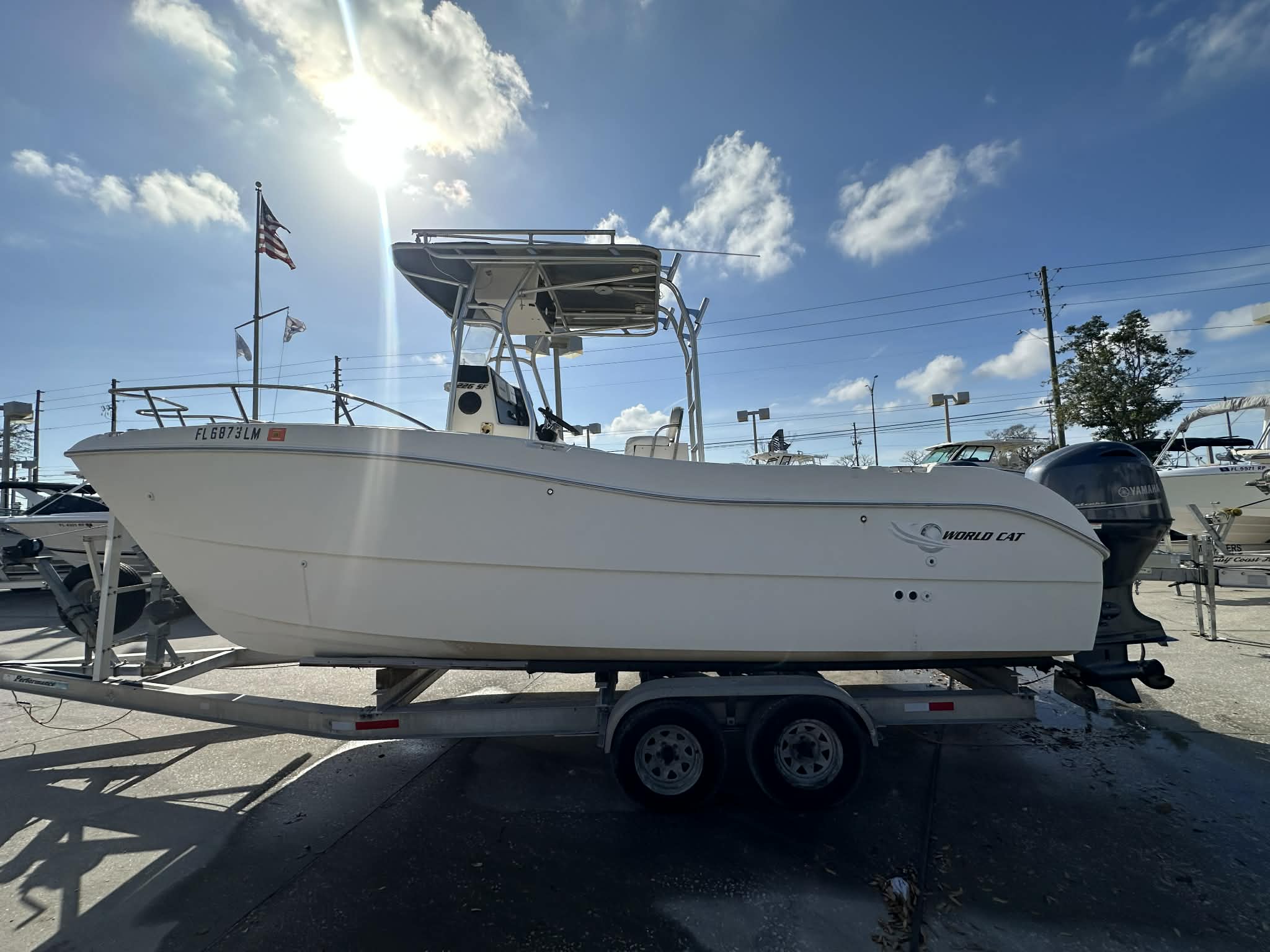 This 2001 World Cat 226 CC is a 22.5-foot Center Console boat that exemplifies the trusted craftsmanship and reliability World Cat is known for. With its sleek lines and robust construction, this used World Cat boat for sale offers a unique blend of style and substance. The 226 CC model is celebrated for its spacious layout, making it an ideal vessel for both fishing excursions and leisurely cruises. The generous deck space ensures everyone on board has room to relax, cast a line, or simply soak up the sun.