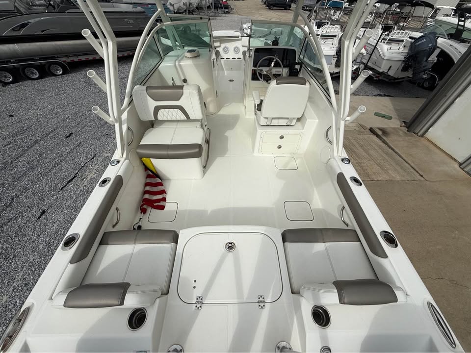 The 2022 World Cat 230 DC is a 23-foot Dual Console boat that exemplifies modern boating excellence. With its sleek lines and robust build, this used World Cat boat offers a unique combination of stability and agility. The 230 DC’s design maximizes space and comfort, making it ideal for a wide range of on-water activities. Its 23-foot length provides ample room for passengers to move about, relax, and enjoy the ride, while still being easy to handle and maneuver. The 2022 model year ensures you benefit from the latest advancements in marine technology and design, all wrapped up in a gently used package with only 115 engine hours.