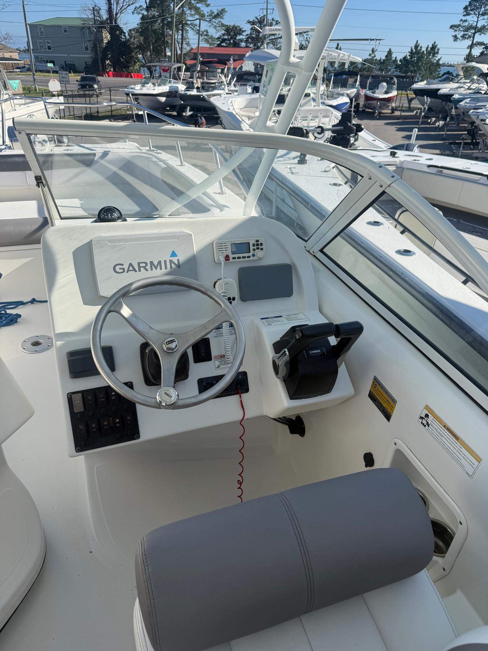 The 2019 World Cat 255 DC is thoughtfully designed with features that cater to both leisure and adventure. The dual console layout offers ample seating and easy access throughout the boat, ensuring everyone on board can relax and enjoy the ride. The spacious cockpit is perfect for socializing, while the bow seating area provides a comfortable spot to soak up the sun or take in the scenery.With a length of 25 feet, this dual console boat offers plenty of room for family and friends without feeling crowded. The wide beam enhances stability and creates a generous deck space, making it easy to move around and store your gear. The twin engines not only deliver impressive power but also offer redundancy for added peace of mind on longer trips.