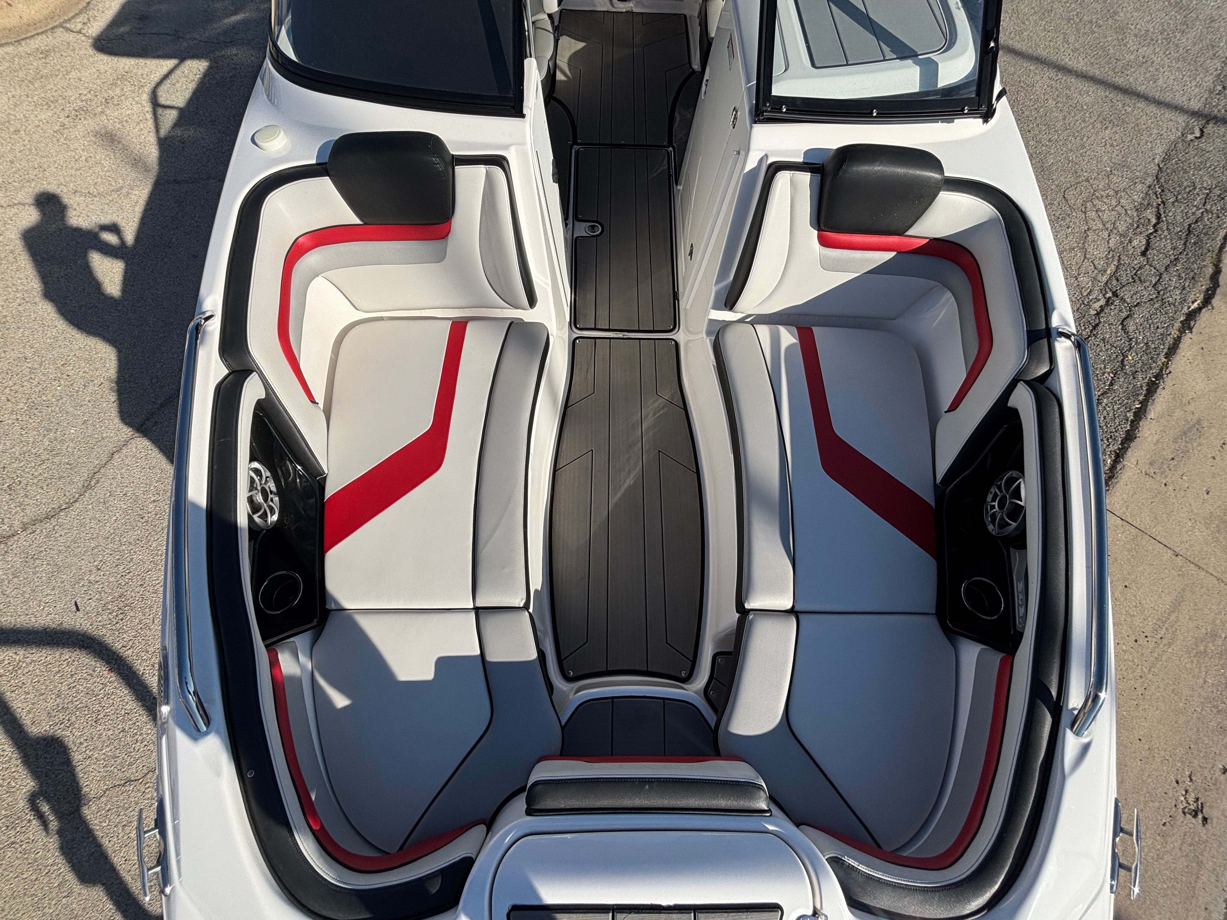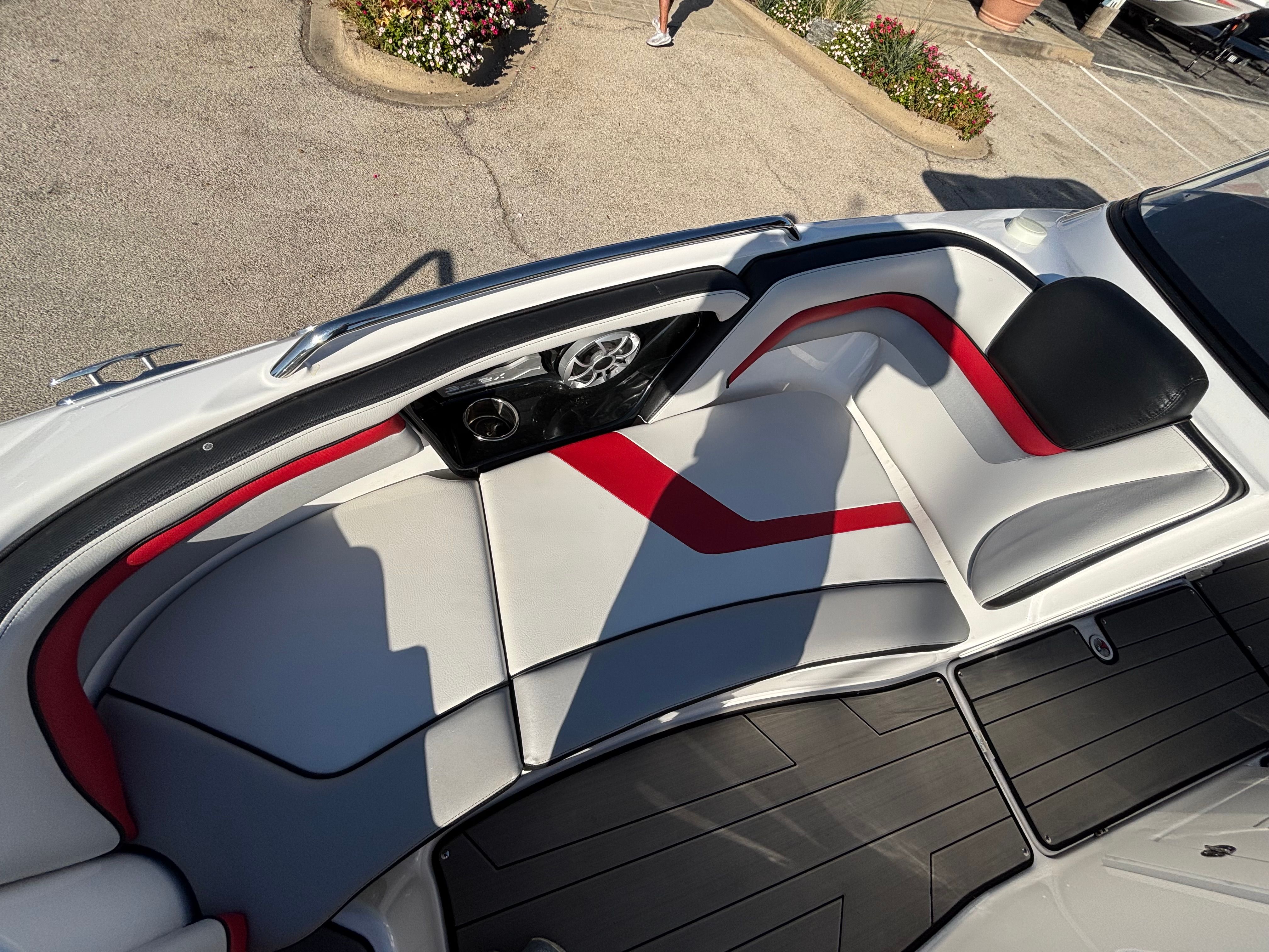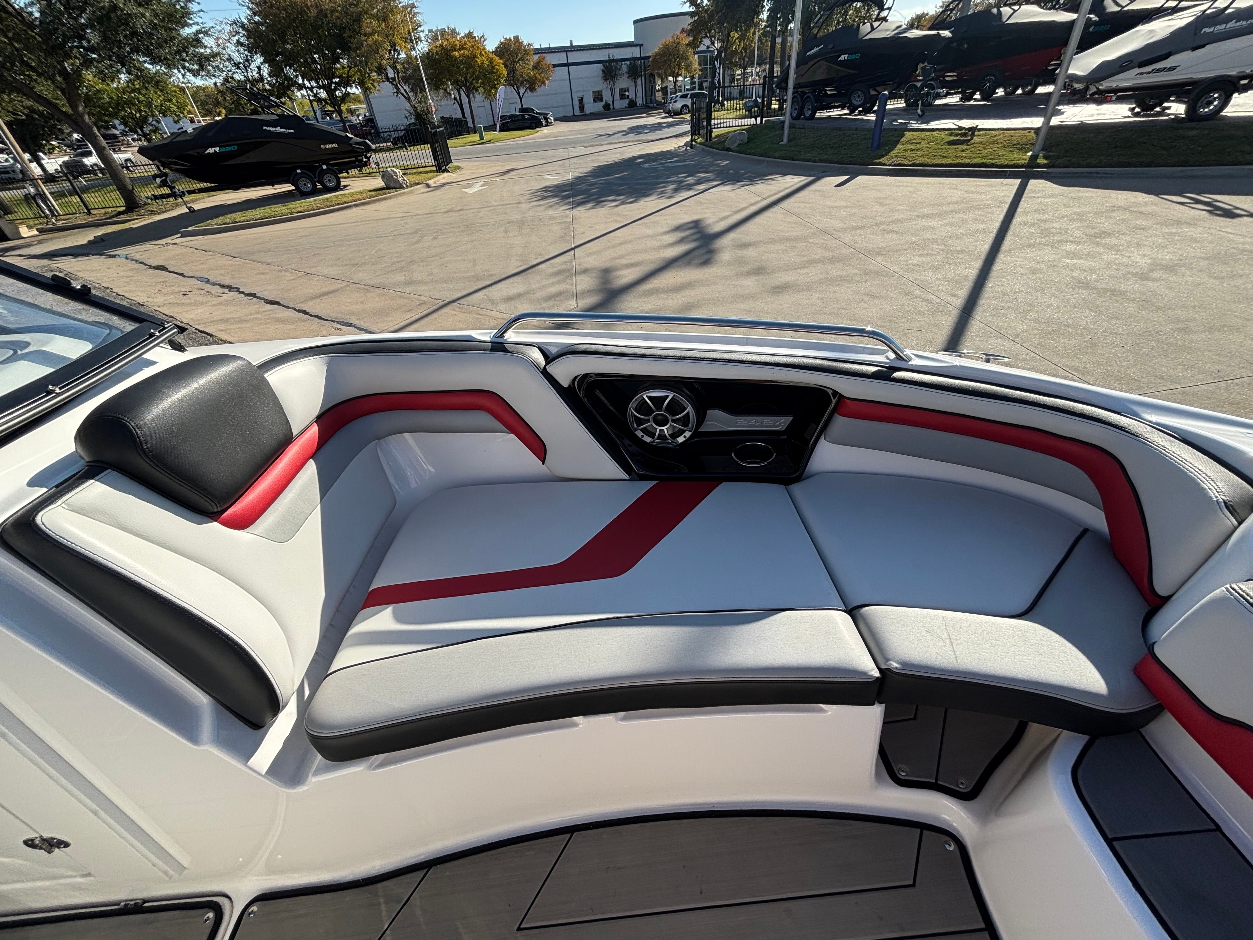 The Yamaha 242 XE is packed with features designed to enhance your time on the water. Bow filler inserts transform the forward seating area into a spacious sun pad, perfect for lounging or socializing. The enclosed head compartment offers privacy and convenience, making longer outings more comfortable for everyone on board. Entertain guests with ease in the portside entertainment area, which is thoughtfully arranged for serving snacks and beverages. Hinged seat cushions provide easy access to under-seat storage, keeping your gear organized and out of the way.One of the standout features of this jet boat is the integrated swim platform, which serves as a hub for watersports, swimming, or simply relaxing at anchor. The removable table can be set up for dining or games, then stowed away when not in use. The dual battery setup ensures reliable power for all your onboard systems, while all factory rebates and coupons are included, adding extra value to your purchase.