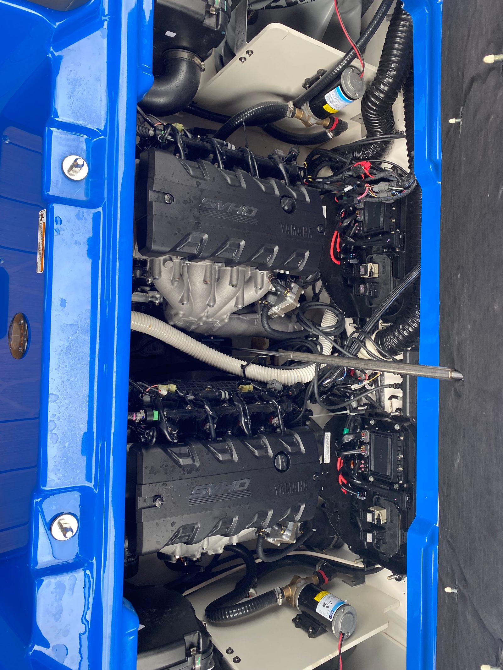 At the heart of the Yamaha 255 XD are twin engines, delivering a combined 500 horsepower for an adrenaline-pumping experience every time you hit the throttle. The dual-engine setup provides not only impressive speed and acceleration but also enhanced maneuverability, making docking and navigating tight spaces a breeze. With only 60 engine hours, these engines are primed for many more seasons of reliable performance. Whether you’re cruising at a leisurely pace or pushing the limits for watersports, the Yamaha 255 XD responds with agility and power, ensuring a smooth and responsive ride.