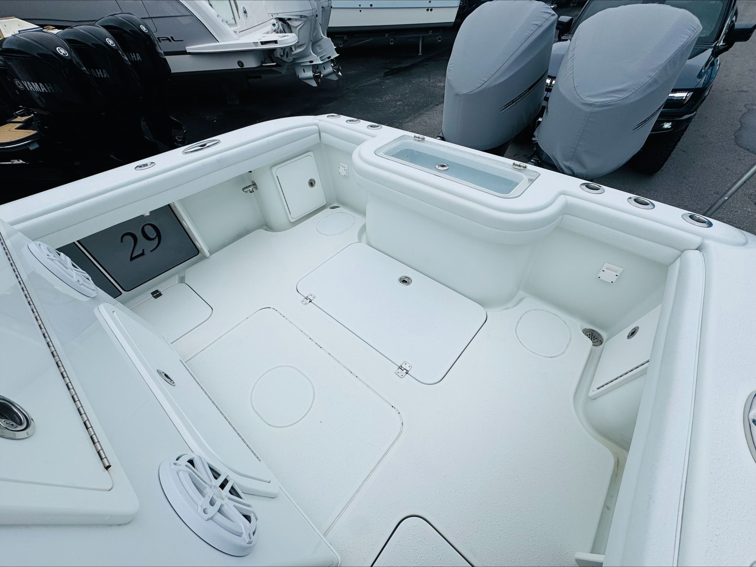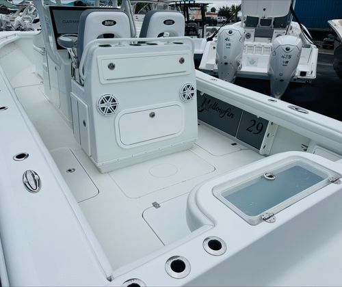The Yellowfin 29 CC is designed with practicality in mind, offering features that make ownership both enjoyable and convenient. The Center Console configuration provides excellent visibility for the captain, enhancing safety during navigation and docking. The boat’s manageable length makes it easy to handle in marinas and tight spaces, while the twin engines offer precise control for smooth docking and maneuvering.Storage is a key advantage of this model, with thoughtfully placed compartments that keep the deck clutter-free and organized. Whether you’re storing fishing gear, water sports equipment, or picnic supplies, the Yellowfin 29 CC ensures that everything has its place. The efficient design also contributes to fuel economy, allowing you to spend more time on the water and less time refueling. Maintenance is straightforward, thanks to the boat’s high-quality construction and accessible systems, making it a hassle-free choice for busy boaters.